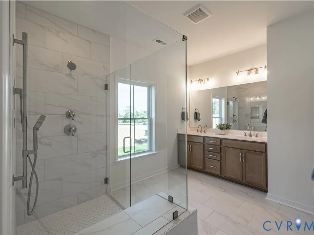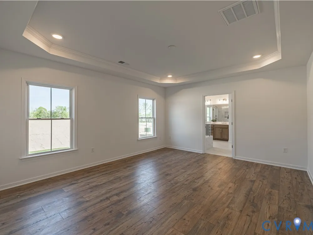 A new Savannah quick move-in is underway at The Villas at Swift Creek, Chesterfield’s 55+ townhome and quad community where low-maintenance living meets everyday convenience. This home, part of a quad-style building, is already under construction. Just off the entry, you’ll find a dedicated study with durable RevWood flooring—ideal for a home office or a quiet retreat. The kitchen, complete with a large island and GE appliances, connects seamlessly to the dining and family room, creating a bright and open main living area. The first-floor primary suite features dual vanities, a curbless shower, and a spacious walk-in closet. Two additional bedrooms and a full bath are also on the main level, offering flexibility for guests or hobbies. Upstairs, a finished bedroom and full bath provide even more space. Life at The Villas at Swift Creek goes beyond the home itself, with amenities designed for connection, recreation, and a welcoming sense of community.