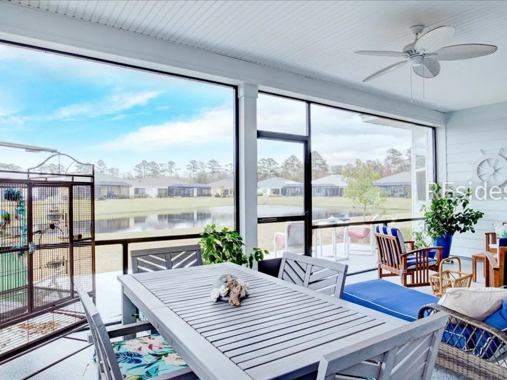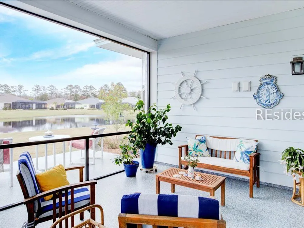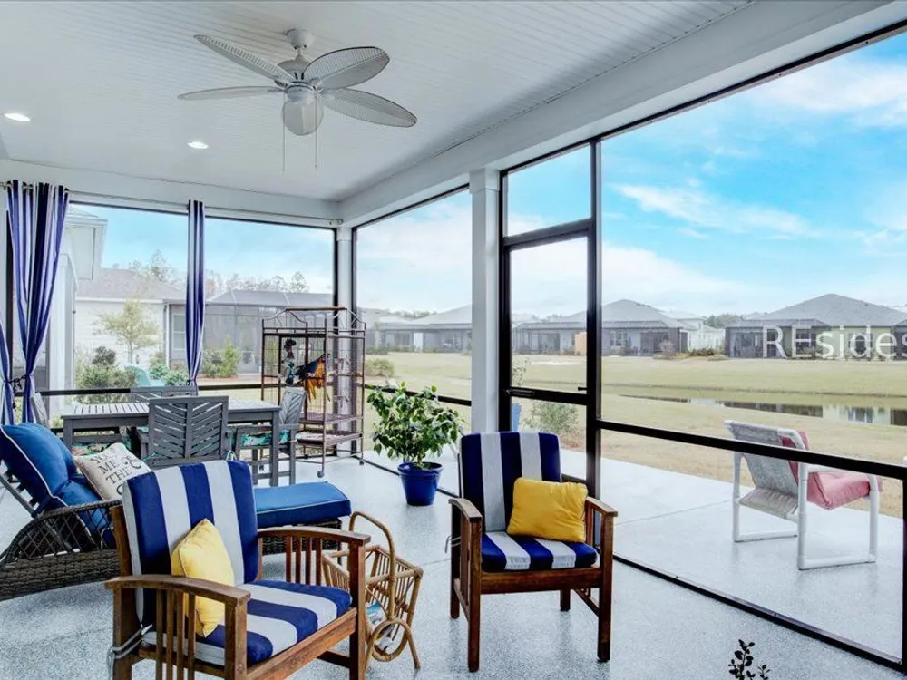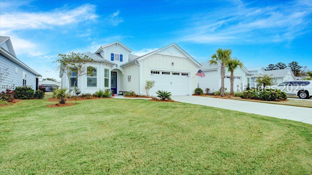 Step into your dream lifestyle in the highly sought-after Latitude Margaritaville community! This stunning Breeze Beach home welcomes you with light-filled interiors and serene lagoon views that can be enjoyed from the great room, dining area, and primary suite. Designed with comfort and style in mind, the home offers two en suite bedrooms plus a convenient half bath. The gourmet kitchen, featuring a gas range, is a chefs delight, while hardwood floors and open living spaces create an inviting flow throughout. The family room, enhanced by glass French doors and surround sound, is perfect for both relaxation and entertaining. Outdoor living shines with a screened-in lanai boasting epoxy flooring, ideal for soaking in the tranquil surroundings. Completing the home is a spacious two-car garage, adding both storage and convenience. Dont miss your opportunity to live in a home where every detail inspires relaxation, comfort, and enjoyment.
