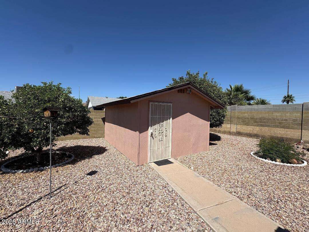 Welcome to the sought-after Dreamland Villa 55+ community, where residents enjoy their active and social lifestyles without a mandatory HOA. Safe, quiet streets and well-maintained houses encourage neighborhood involvement. Located in the heart of Mesa, you're close to shopping and local dining, with easy access to City of Mesa's Library and Red Mountain Multigenerational Center which provides a wide range of activities, including fitness programs, indoor walking track, and much more. Inside, the home shines with modern upgrades including tile and wood-look flooring, updated cabinetry, stainless steel appliances, and a new Heat Pump A/C to allow you to enjoy Arizona year-round. This home is in close proximity to Dreamland Villa's community pools / heated spa, fitness amenities and social activities available with an optional annual membership. The house is turnkey and move-in ready, with screened-in Arizona room providing additional indoor/outdoor living space. Enjoy fruit right from the three mature citrus trees in the large backyard. A separate workshop/storage shed adds flexibility for hobbies or projects.