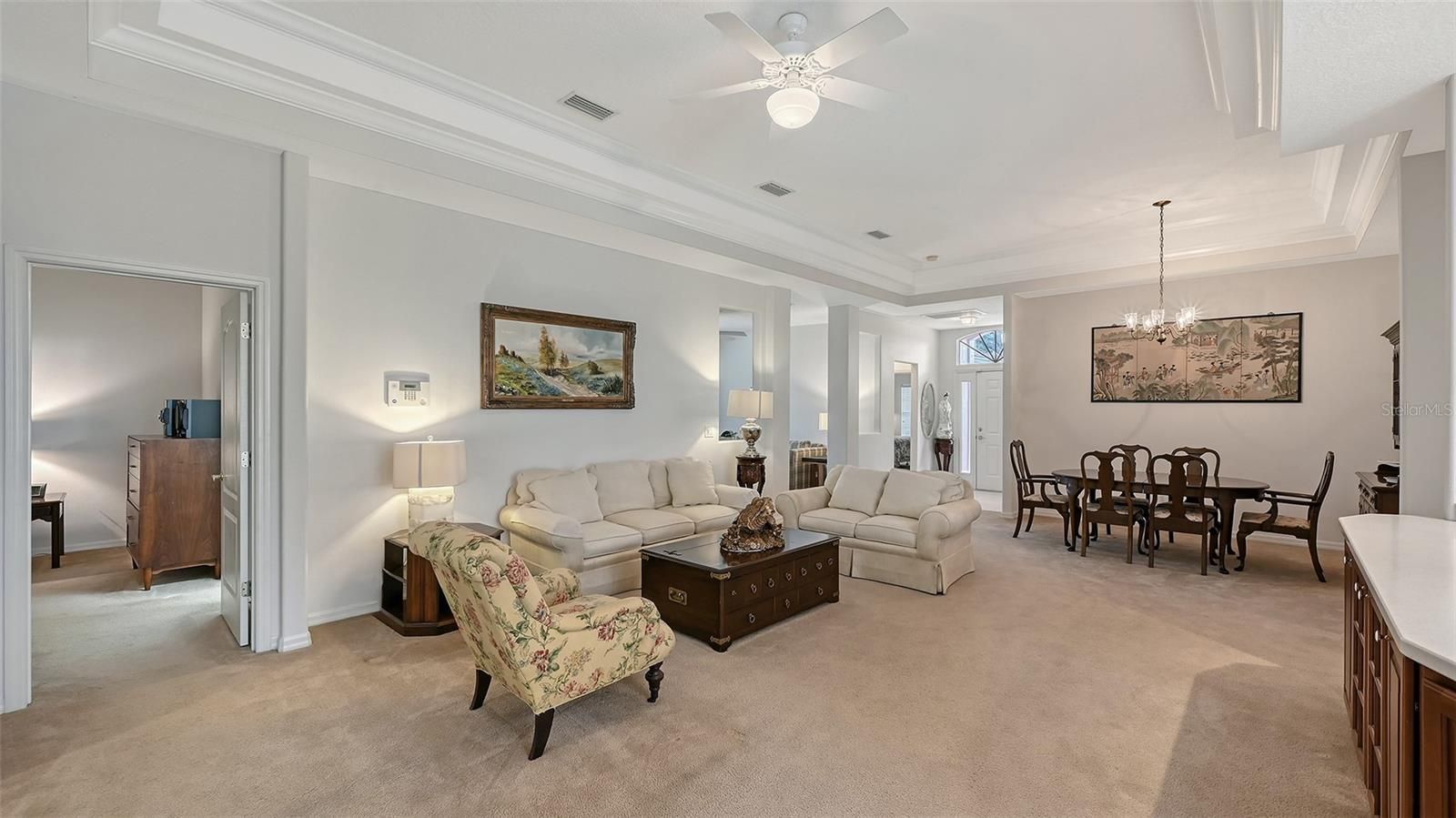 - Ceiling Fan(s), Crown Molding, Eat-in Kitchen, High Ceilings, Open Floorplan, Split Bedrooms, Tray Ceiling(s), Walk-In Closet(s)