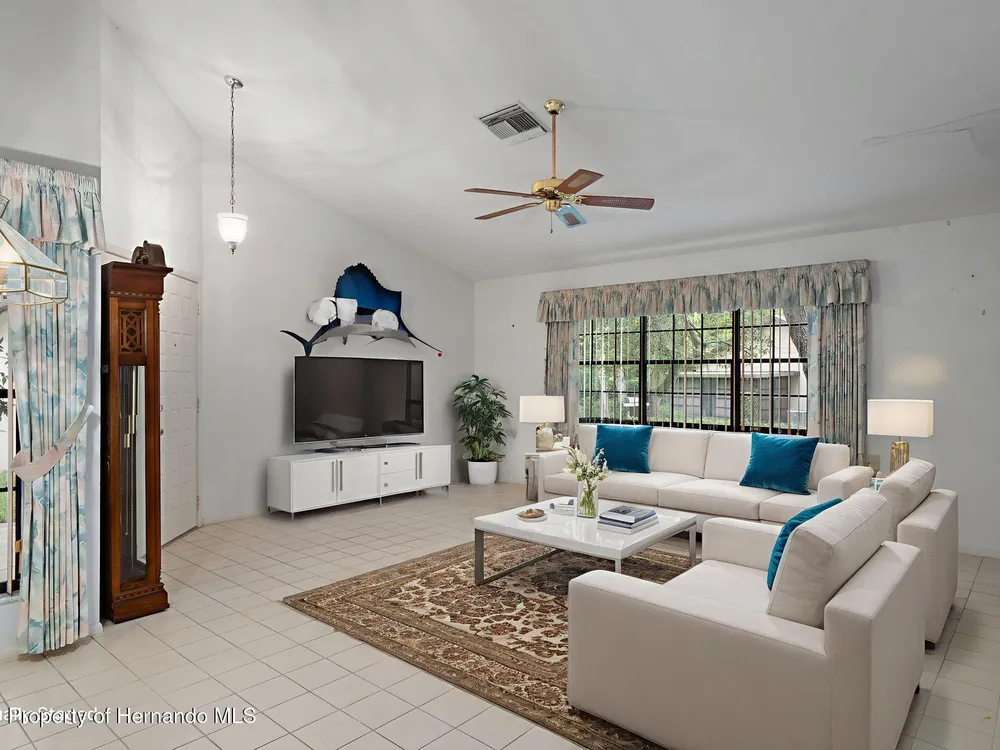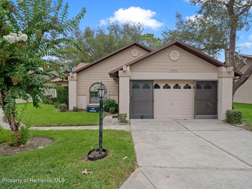 Welcome to 6736 Oak Cluster Cir, a detached villa in the pet-friendly Manor Pines Village at Timber Pines, Spring Hill, FL. This 1-owner home has 2 bedrooms and 2 bathrooms and offers 1,258 square feet of comfortable living space. The home features tile flooring throughout and an open living and dining area with vaulted ceilings. The living space extends into a lanai with vinyl windows and central air, creating a year-round room for relaxation or entertaining. The master bedroom has vaulted ceilings and includes two walk-in closets, and the private master bathroom features a jacuzzi tub and a vanity with dual sinks. A new water heater was installed in September 2025, the roof was replaced in 2022, and the air conditioner was replaced in 2014. The sale includes a home warranty valued at 550 for added peace of mind. The seller is offering a 5,000 credit at closing for appliance replacement, giving buyers the opportunity to personalize the kitchen to their taste. Manor Pines offers a dedicated pool for village residents. This home provides a great opportunity to personalize your space with a few updates. Priced competitively and located in a desirable area with convenient access to community features, shopping, and recreation, this property is well-suited for buyers seeking comfort and value. You won't be bored with over 100 clubs, a Country Club, a Performing Arts Center, a Wellness Center, golf, bocce, tennis, and pickleball. Schedule your showing today because this home won't last long on the market.