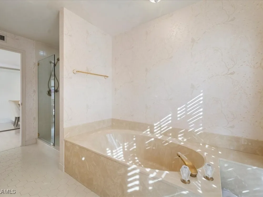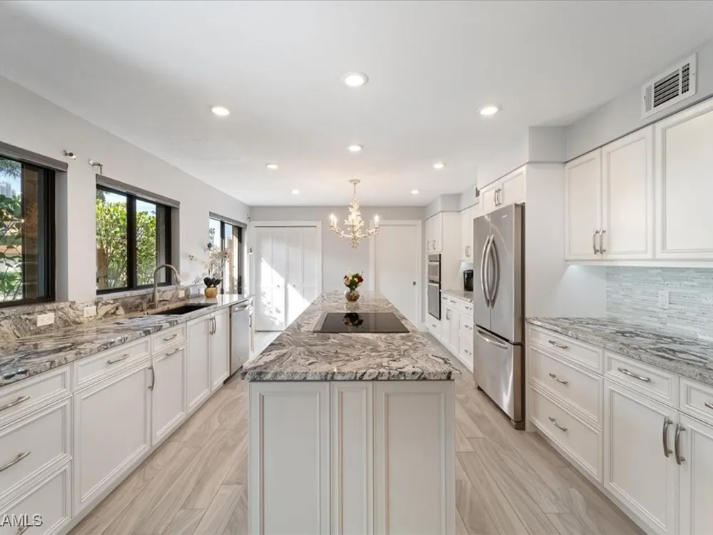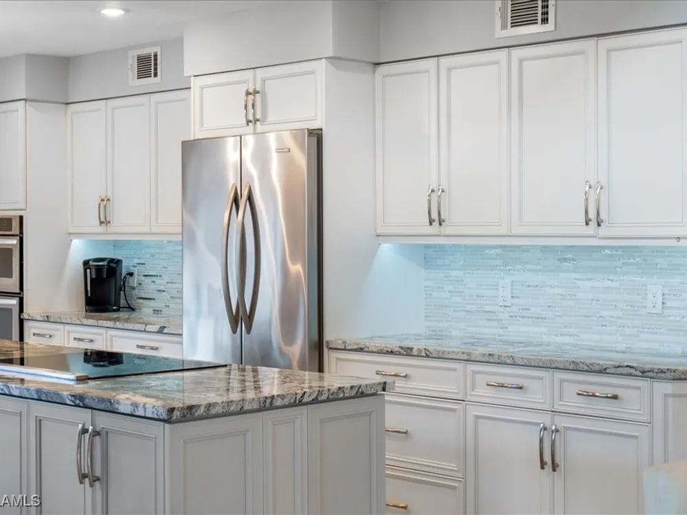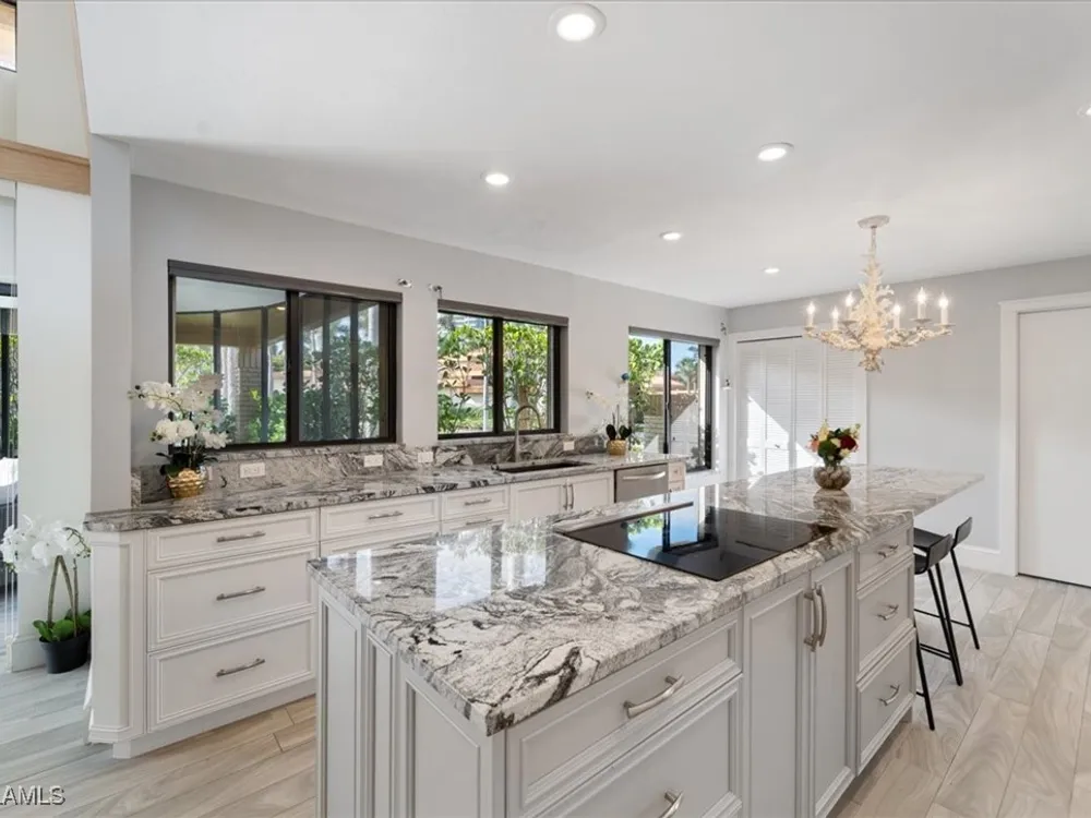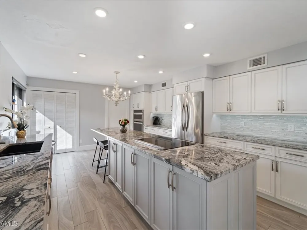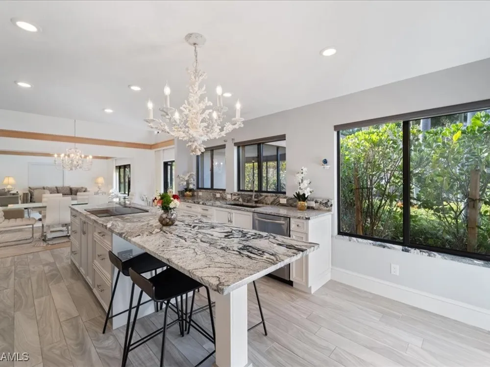 Seller says unit has never flooded! in X500 flood zone! Exceptional and rarely available Villa in Pelican Bay – A Serene Oasis with Modern Elegance. Step into this meticulously maintained 3-bedroom villa, where luxury meets tranquility. Recently updated and in pristine condition, this home boasts a newer gourmet kitchen featuring high-end granite countertops, a stunning glass tile backsplash, and all-new top-tier appliances. The porcelain tile flooring throughout adds a touch of sophistication, while a neutral palette of fresh paint creates a warm and inviting ambiance. Relax on the screened porch overlooking a serene pond and lighted fountain, or enjoy the privacy of the walled courtyards accessible from the master suite and third bedroom. The laundry room is thoughtfully upgraded with a granite sink and new under-counter washer and dryer. Even the garage shines with a freshly painted floor, showcasing the attention to detail in every corner of this home. Built for comfort and safety, the villa includes comprehensive hurricane protection with high-impact glass, electric shutters, and manual options. The exterior has also been freshly painted, complementing the well-maintained Interlachen community inspired by the timeless design of Frank Lloyd Wright. Interlachen offers lush landscaping, tranquil water features, a newly renovated swimming pool, decks, and a picturesque bridge. With a new irrigation system in courtyards and an enhanced entry fountain, the community is a reflection of Pelican Bay’s premier lifestyle. Located within walking distance to Pelican Bay’s renowned amenities, residents enjoy the convenience of the berm for walking or biking, tram access to two exclusive Beach Club restaurants, and proximity to two Tennis Centers and a full-service fitness facility. Discover the serene elegance of this villa and the unparalleled lifestyle of Pelican Bay. Schedule your private showing today!