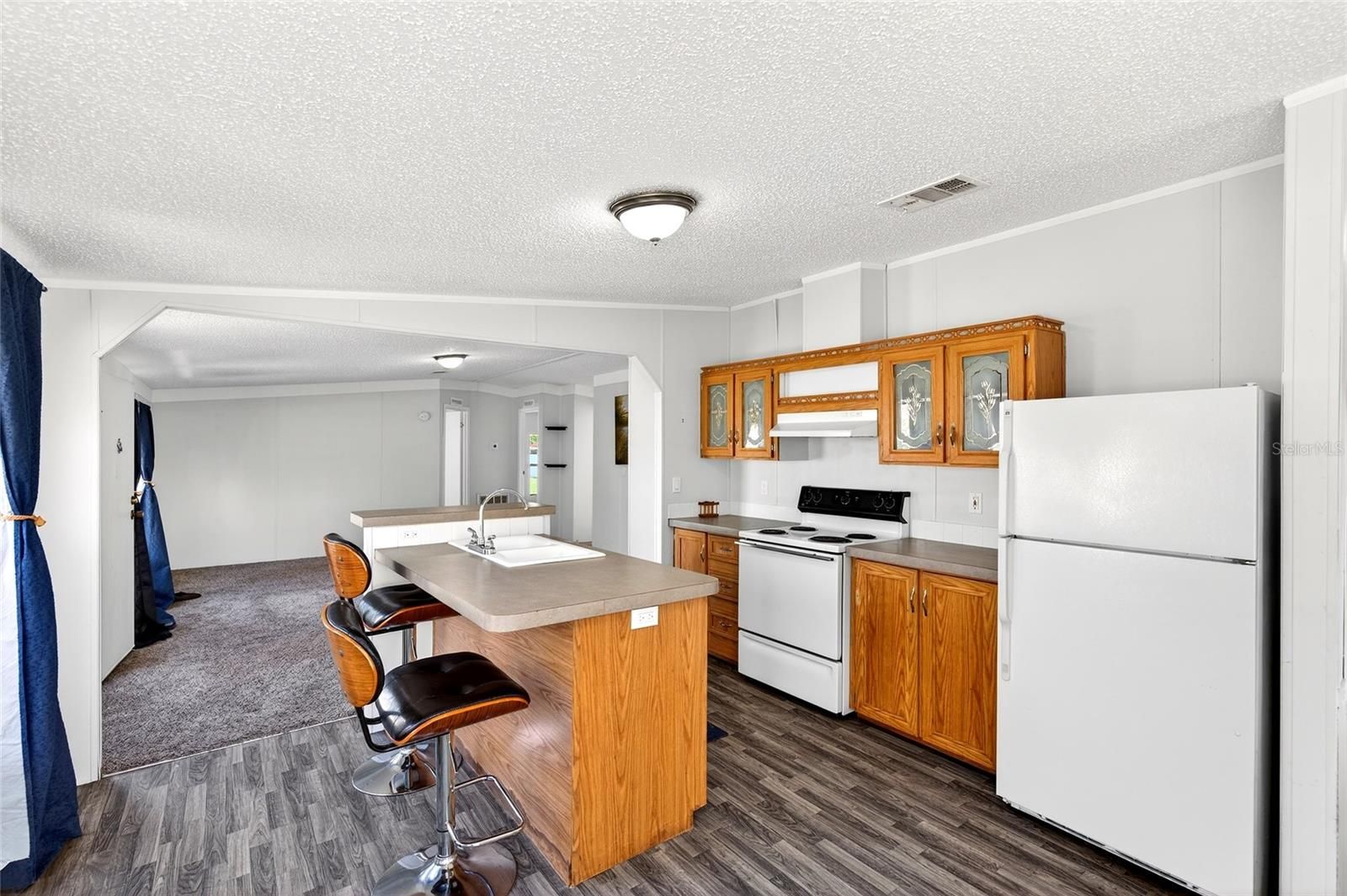 Welcome to 6740 SW 84th Street in Ocala, Florida—an excellent opportunity to own a spacious home with great potential and a functional layout in a convenient location. This 3-bedroom, 2-bath home offers a large open living area filled with natural light, creating a bright and inviting atmosphere from the moment you walk in. The expansive main living space provides plenty of room for entertaining, relaxing, or creating additional flex areas to suit your needs. The kitchen features ample cabinet storage, a central island with bar seating, and an adjoining dining area surrounded by windows—perfect for enjoying natural light throughout the day. The split-bedroom layout offers privacy, with a generously sized primary suite that includes a large bathroom complete with soaking tub and separate shower. Additional features include updated flooring in the kitchen and dining areas, spacious bedrooms, and a covered carport for convenient parking. The home sits on a well-sized lot with room to enjoy the outdoors, garden, or add future improvements. Whether you're a first-time homebuyer, investor, or looking for a property you can personalize over time, this home offers space, flexibility, and value in one package.