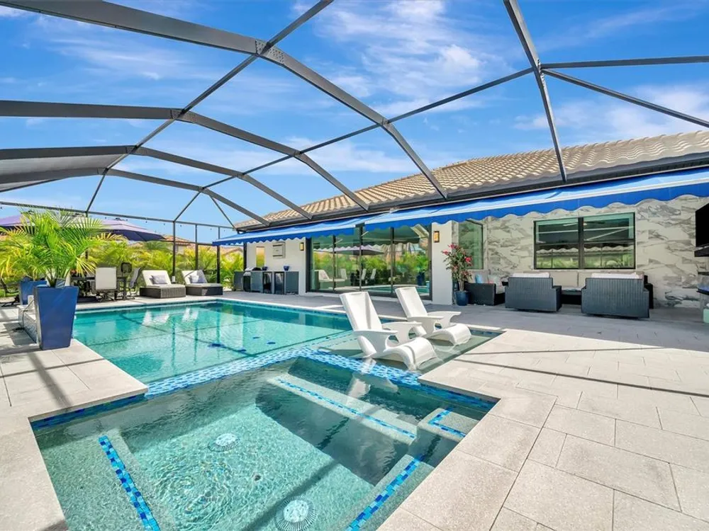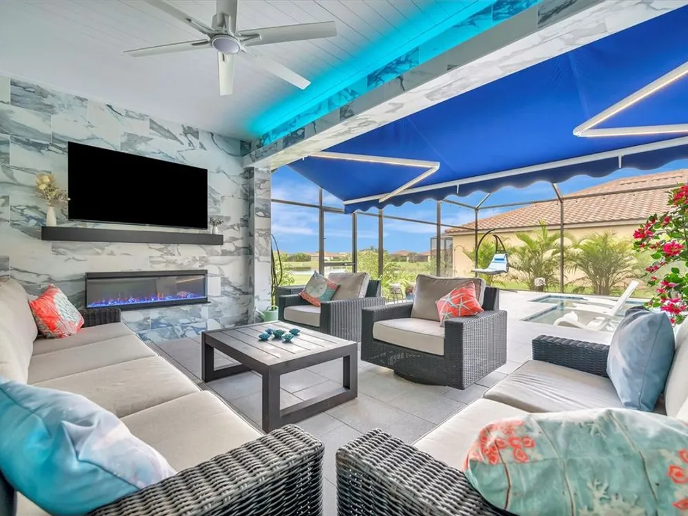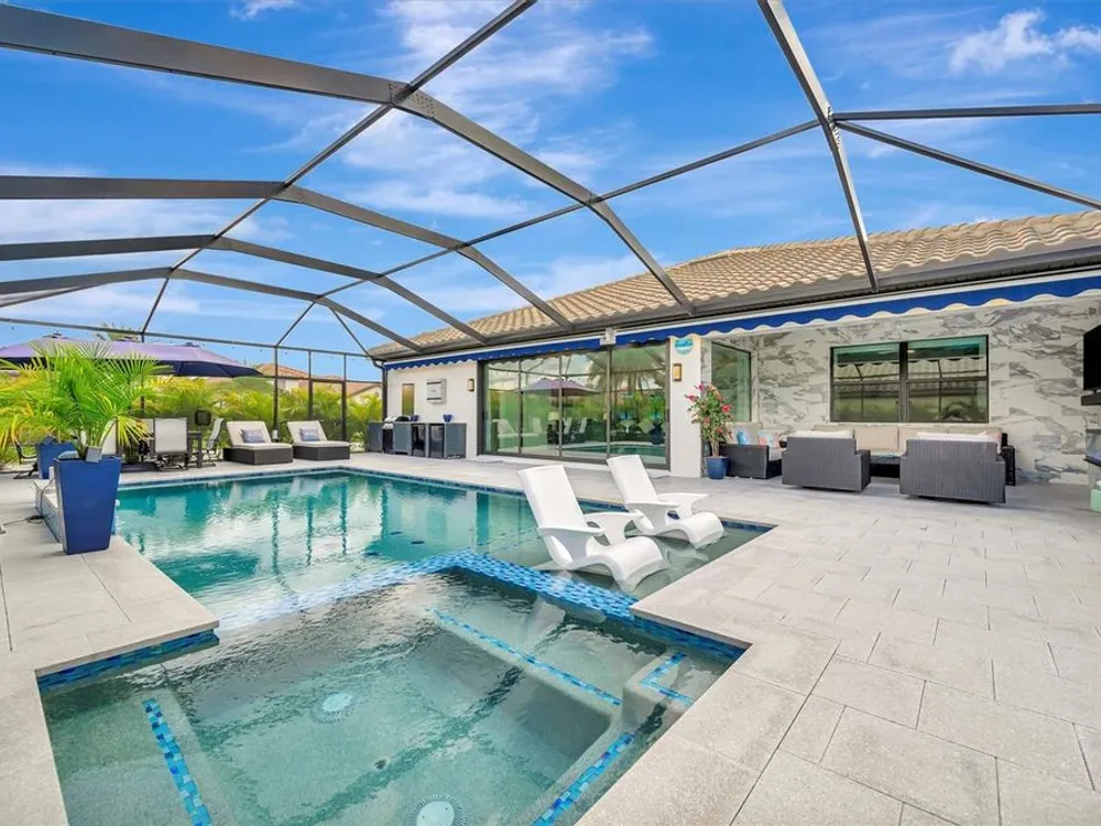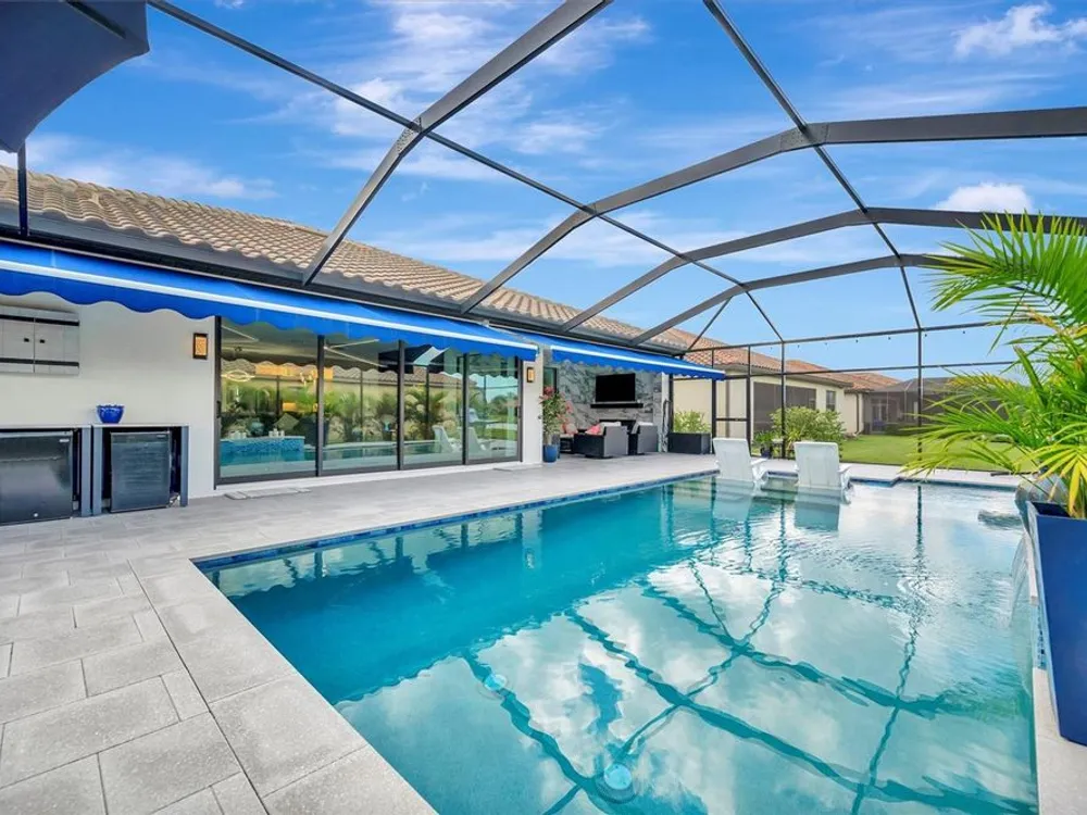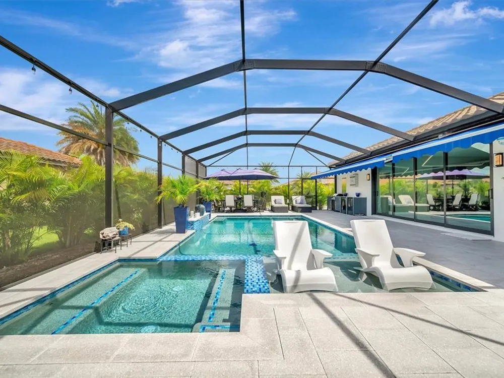 Situated in the picturesque River Strand Golf and Country Club, this exceptional home has been fully remodeled with top-tier upgrades. Upon entering, you are greeted by a bright, open floor plan that extends from the entryway to the stunning custom pool and spa, ensuring every detail meets your expectations. The new open kitchen features stone countertops, high-end appliances, a stove pot filler, and butler's pantry for additional storage—truly a dream kitchen. The office features a decorative wall and a hidden door leading to the second garage, showcasing the unique and remarkable design of this home. The owner's suite is bright and spacious, complete with a large walk-in. The en-suite bathroom offers pure luxury, featuring a soaking tub, rain-head showers with body jets, and elegant finishes. Each room is equipped with solid doors ensure privacy. The living area, framed by corner transom windows, offers views of a tropical paradise. Outdoor space boasts a custom pool, sunshade awnings a cozy seating with a fireplace, and everything needed to fully embrace Florida living this home includes numerous additional to explore. The community itself provides a wealth of amenities, including resort-style pools, fitness centers, tennis, pickleball and a new clubhouse set to open in 2026.