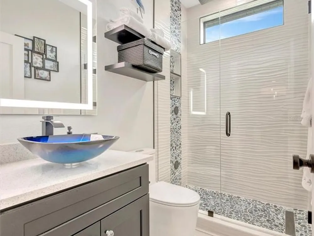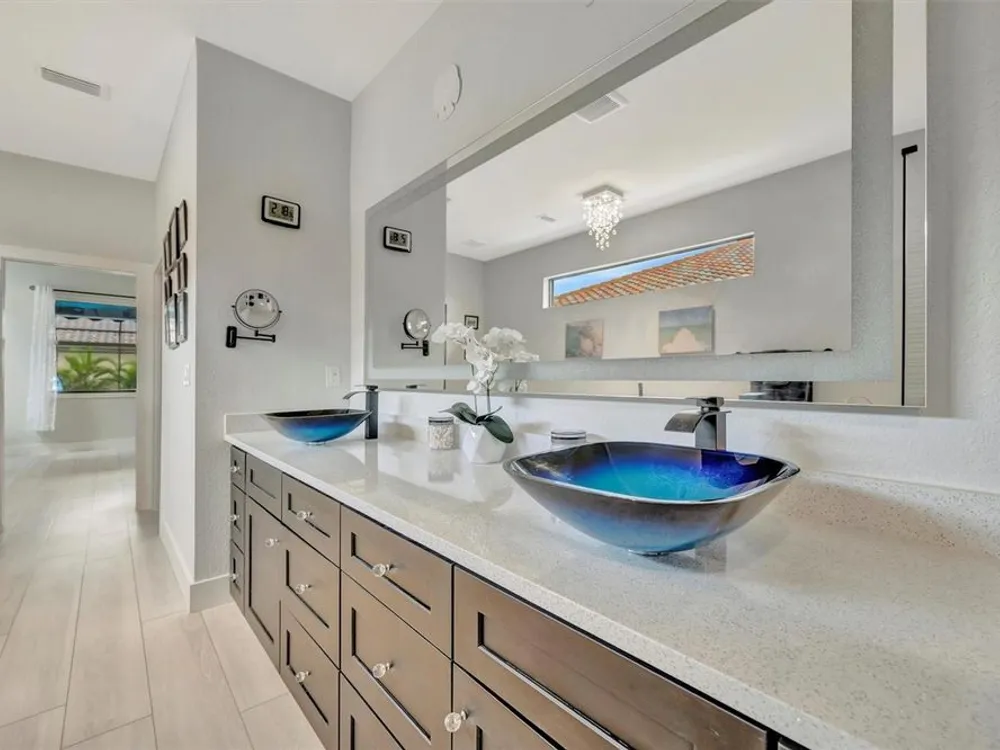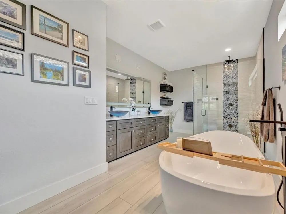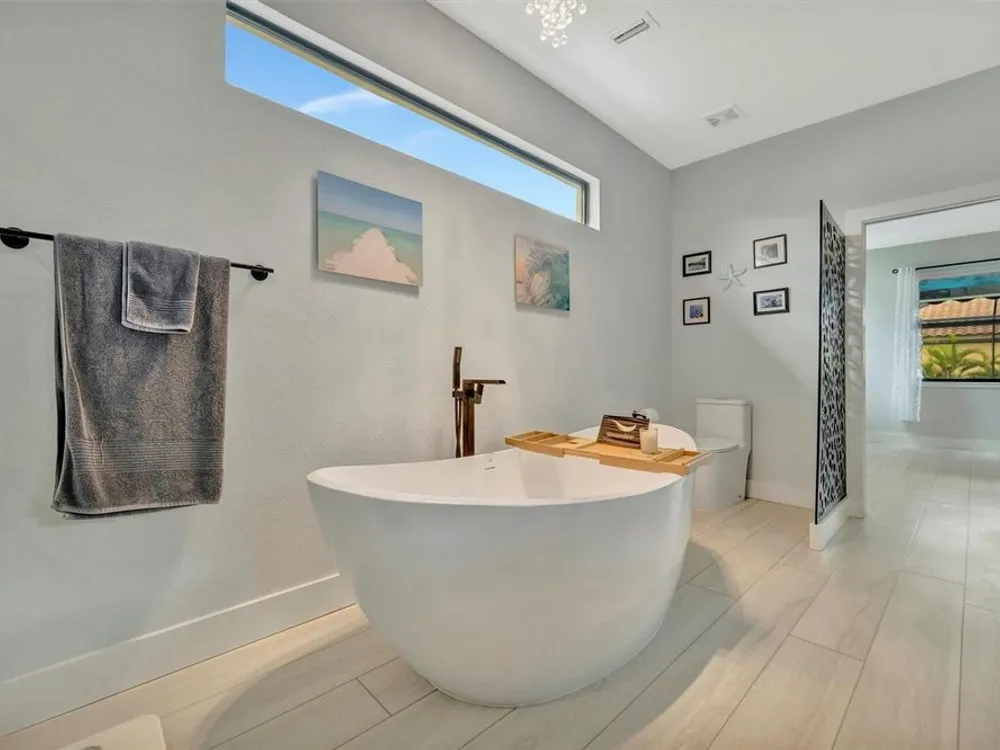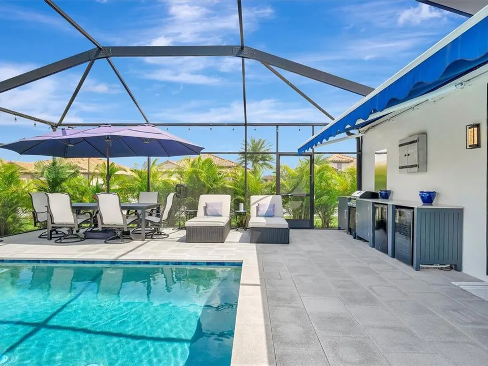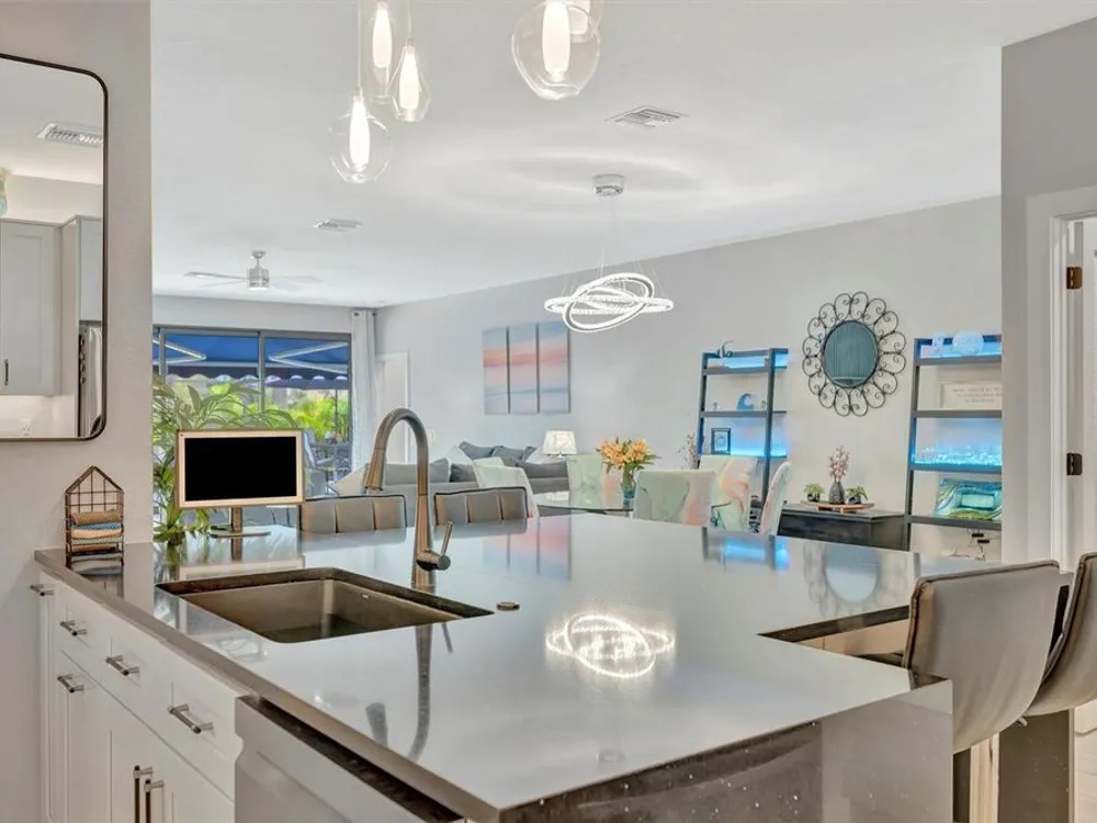 Situated in the picturesque River Strand Golf and Country Club, this exceptional home has been fully remodeled with top-tier upgrades. Upon entering, you are greeted by a bright, open floor plan that extends from the entryway to the stunning custom pool and spa, ensuring every detail meets your expectations. The new open kitchen features stone countertops, high-end appliances, a stove pot filler, and butler's pantry for additional storage—truly a dream kitchen. The office features a decorative wall and a hidden door leading to the second garage, showcasing the unique and remarkable design of this home. The owner's suite is bright and spacious, complete with a large walk-in. The en-suite bathroom offers pure luxury, featuring a soaking tub, rain-head showers with body jets, and elegant finishes. Each room is equipped with solid doors ensure privacy. The living area, framed by corner transom windows, offers views of a tropical paradise. Outdoor space boasts a custom pool, sunshade awnings a cozy seating with a fireplace, and everything needed to fully embrace Florida living this home includes numerous additional to explore. The community itself provides a wealth of amenities, including resort-style pools, fitness centers, tennis, pickleball and a new clubhouse set to open in 2026.