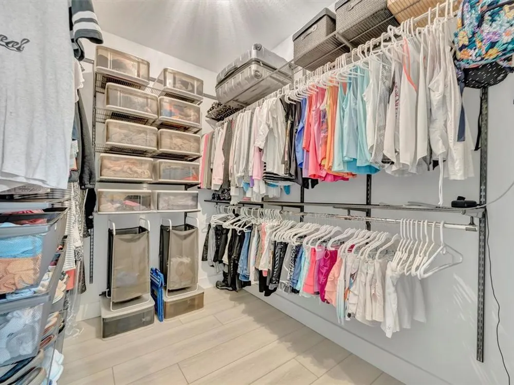 - Built-in Features, Ceiling Fan(s), Coffered Ceiling(s), Eat-in Kitchen, In-Wall Pest Control, Open Floorplan, Main Level Primary, Smart Home, Split Bedrooms, Thermostat, Tray Ceiling(s), Walk-In Closet(s), Window Treatments