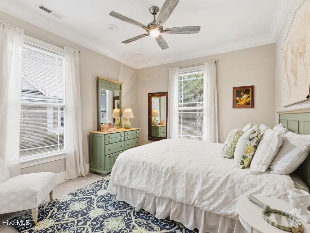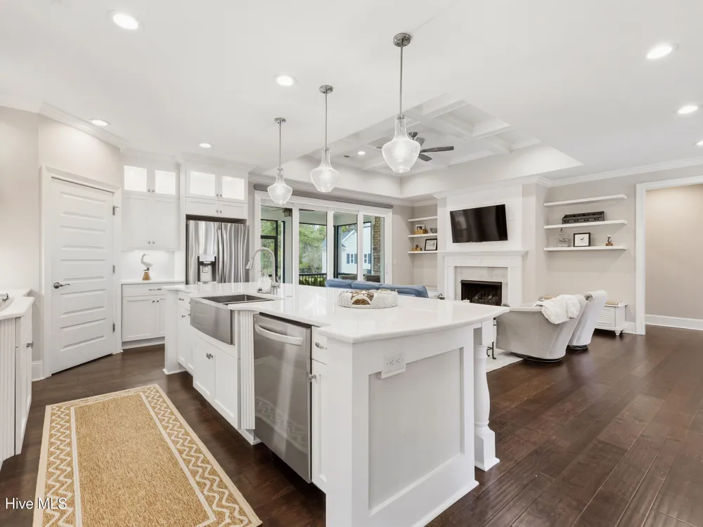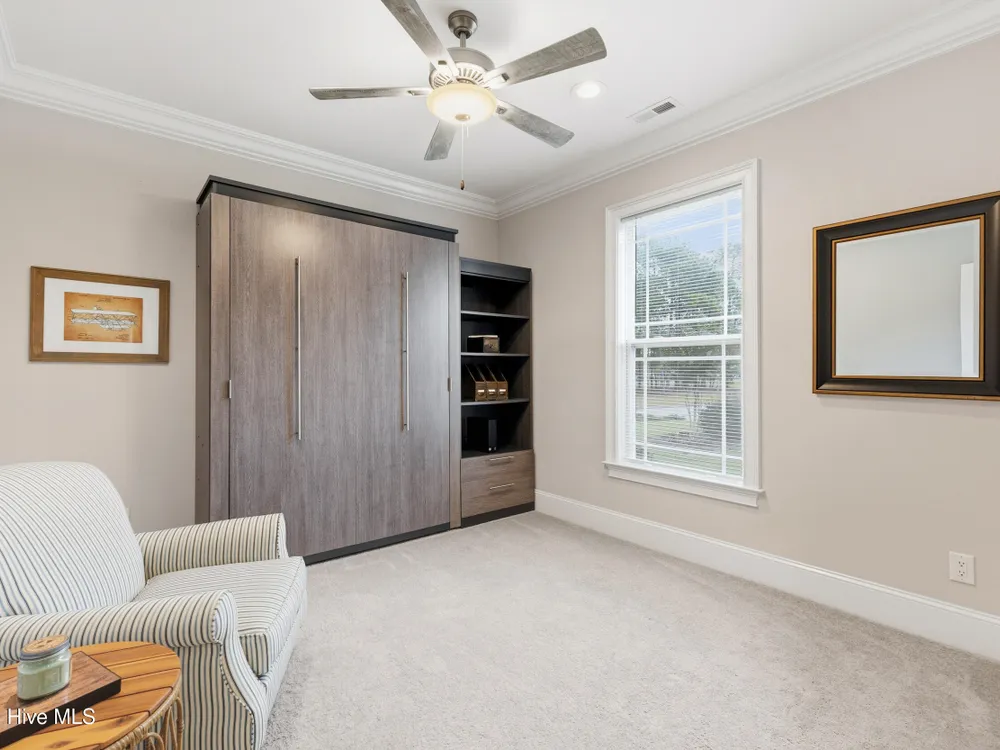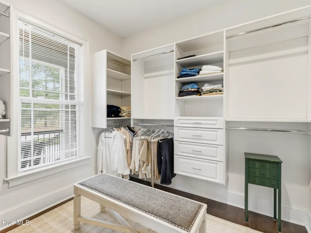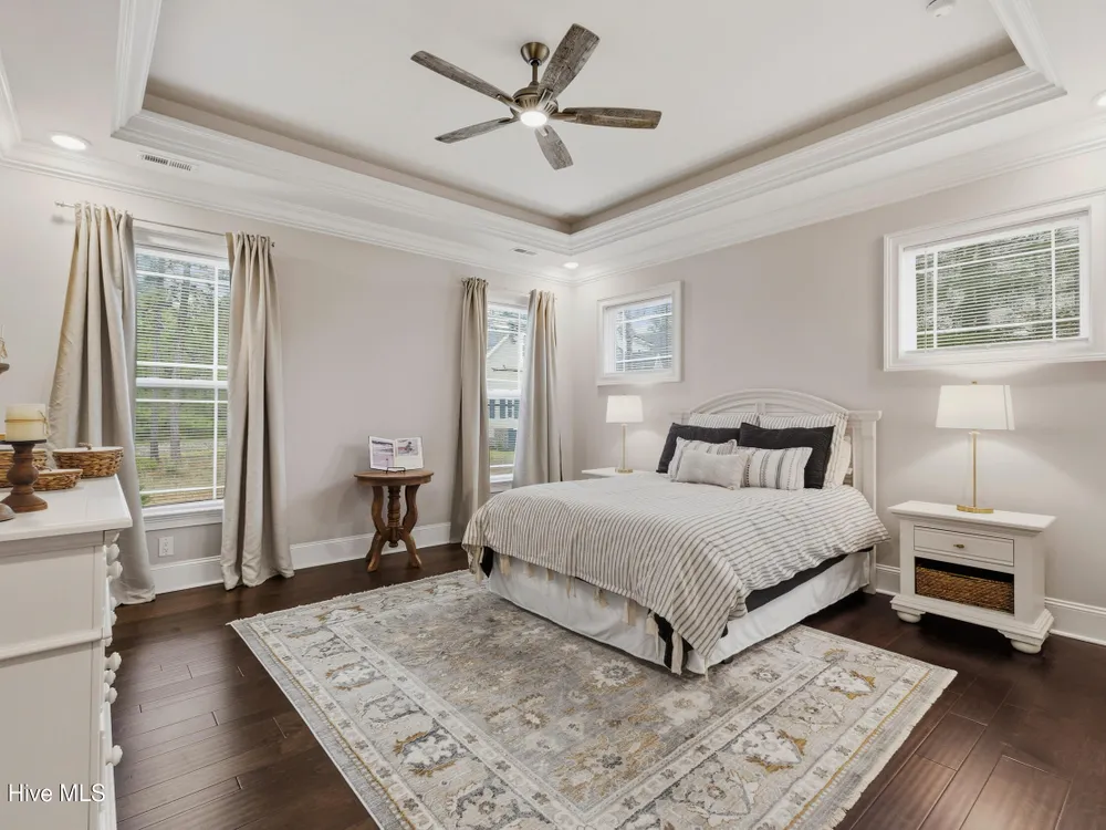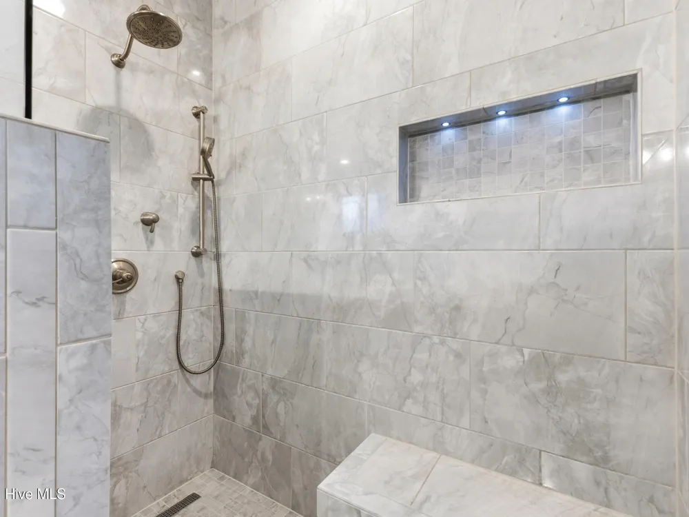 - Blinds/Shades, Tray Ceiling(s), Walk-In Closet(s), Walk-in Shower, Gas Log, Pantry, Mud Room, Master Downstairs, Kitchen Island, High Ceilings, Ceiling Fan(s)