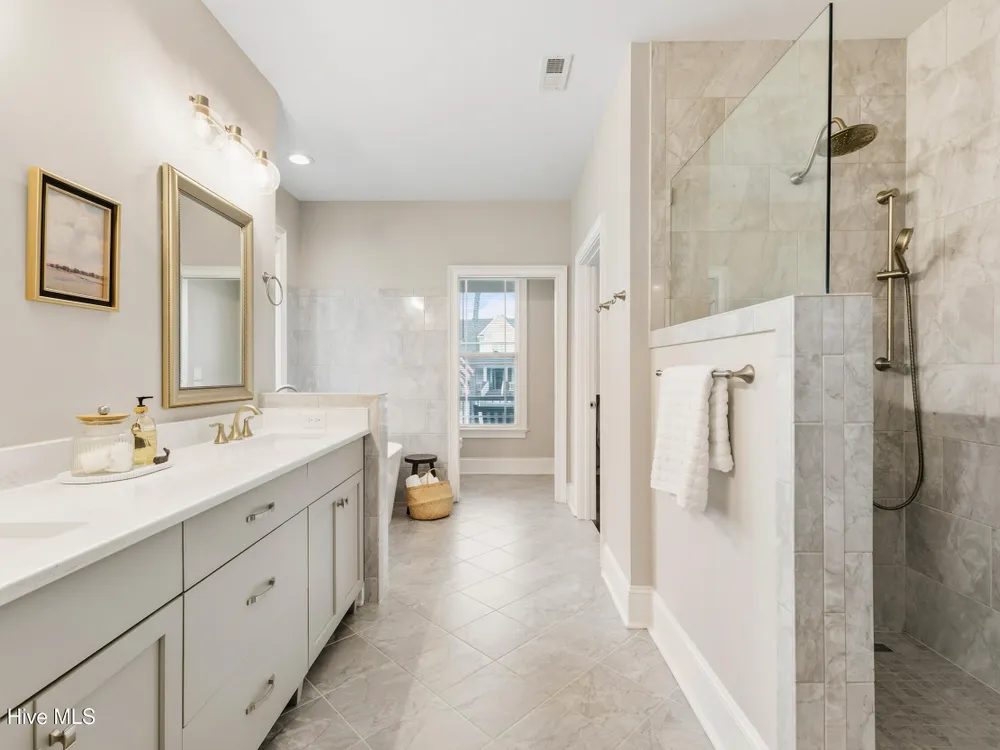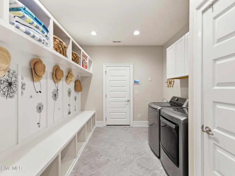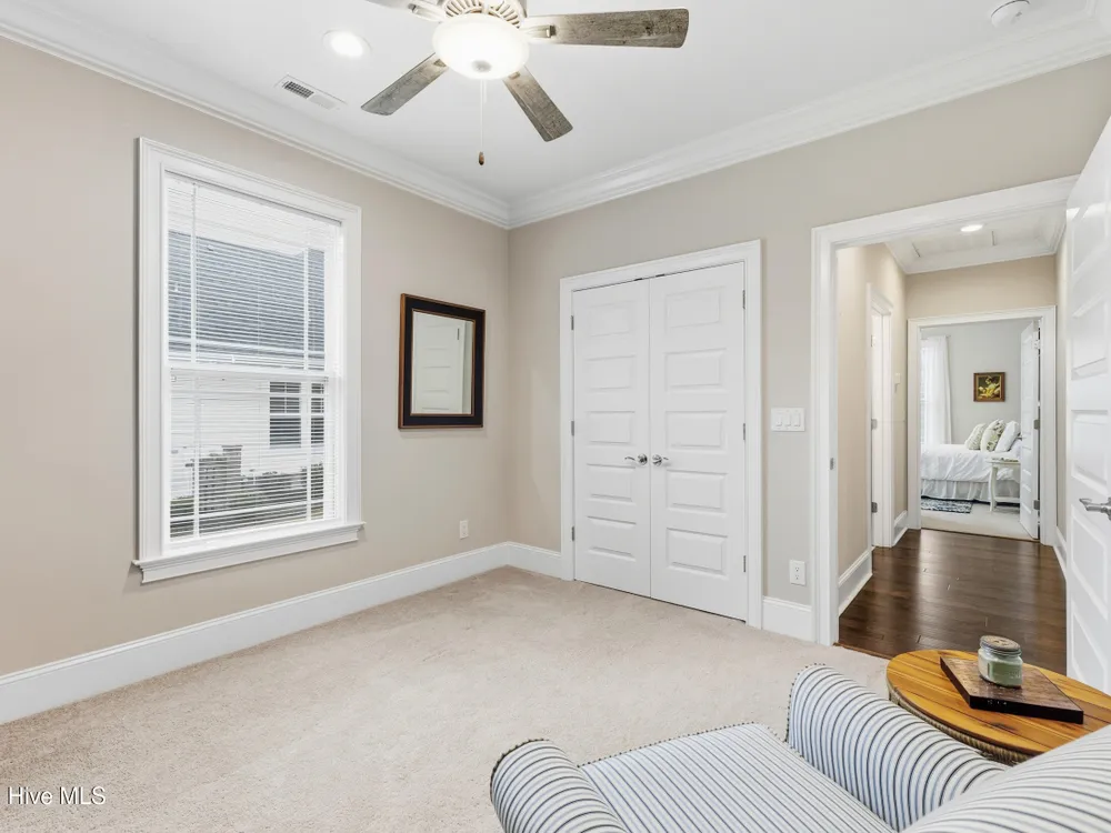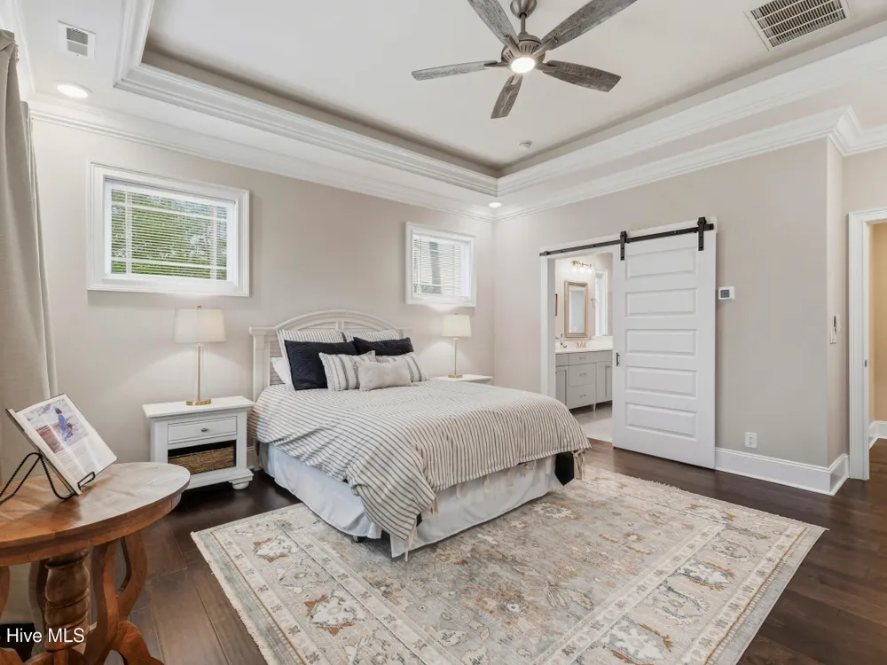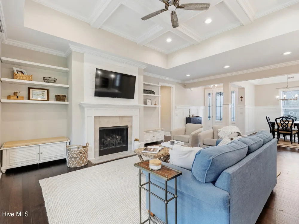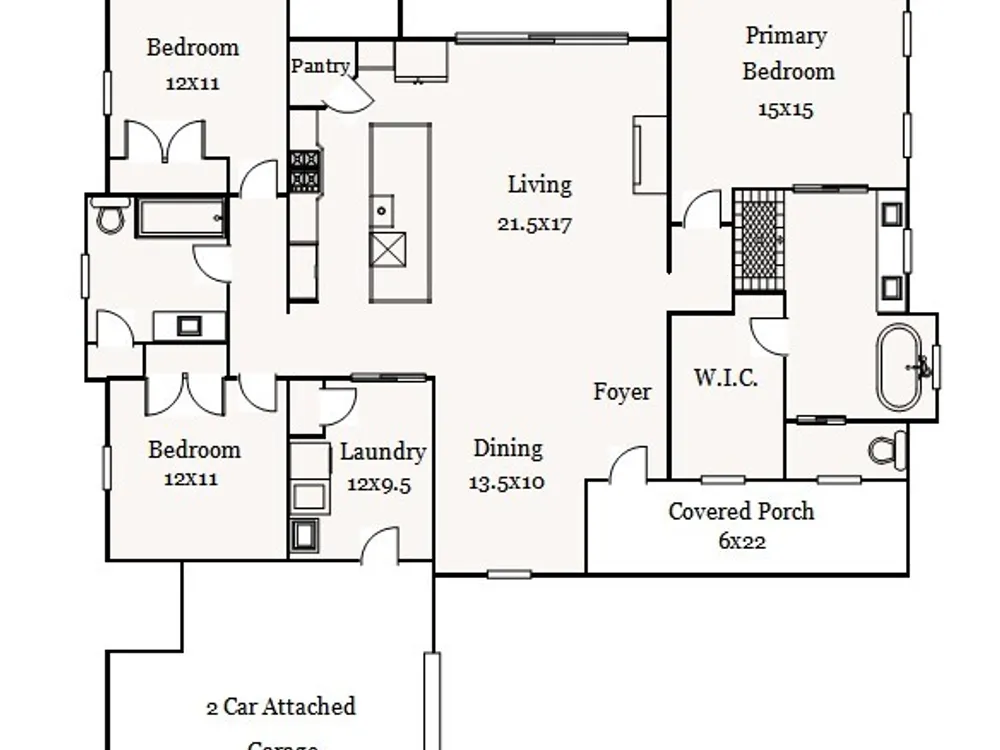 - Blinds/Shades, Tray Ceiling(s), Walk-In Closet(s), Walk-in Shower, Gas Log, Pantry, Mud Room, Master Downstairs, Kitchen Island, High Ceilings, Ceiling Fan(s)