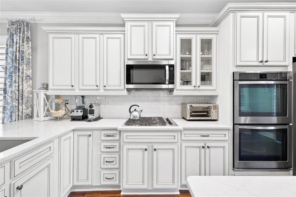 - Dishwasher, Disposal, Double Oven, Electric Oven, Gas Cooktop, Microwave, Self Cleaning Oven