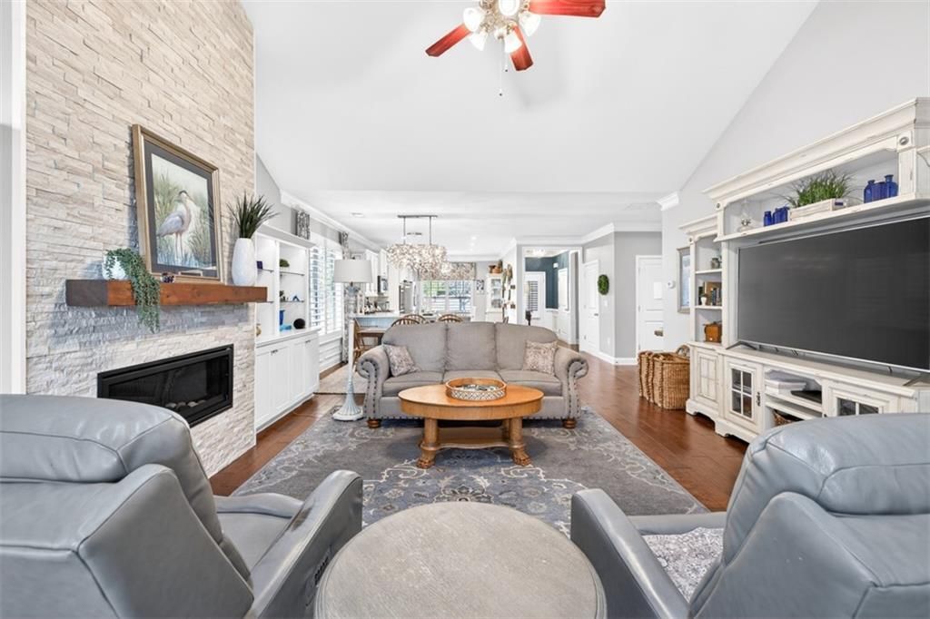 Welcome home to Sterling on the Lake, one of Flowery Branch’s most sought-after master-planned communities. This beautifully maintained 3-bedroom, 3 full bath home offers timeless appeal, abundant space, and a rare true 3-car garage with a full unfinished walk-out basement—perfect for today’s lifestyles and future possibilities. A large covered front porch welcomes you, offering the perfect spot to relax with a morning coffee or unwind with a good book. Inside, the open, light-filled main level is centered around a gorgeous fireplace, creating a warm and inviting space ideal for everyday living and entertaining. The well-appointed kitchen features double ovens, a gas cooktop, center island, and pantry, flowing seamlessly into the living and dining areas. Just off the living space, the sunroom and deck overlook the backyard, providing a wonderful indoor-outdoor connection. The owner’s suite on the main level offers abundant natural light, custom his-and-hers closets, and a spa-like bath with a corner soaking tub, double shower, and separate vanities. An additional bedroom and full bath on the main level make an ideal guest suite. You’ll also appreciate the exceptional storage, including double closets near the laundry room, which features a sink, vanity, and overhead cabinetry. Upstairs, you’ll find an additional bedroom and full bath with closet space and a walk-in attic, perfect for seasonal storage. Downstairs, the full unfinished walk-out basement offers endless possibilities—future living space, home gym, media room, in-law or teen suite, or ample storage—ready to be customized to fit your needs. The true 3-car garage provides generous room for vehicles, hobbies, and storage. Outside, the beautifully maintained lot features emerald Zoysia grass with irrigation in the front and sides, adding to the home’s exceptional curb appeal. Sterling on the Lake residents enjoy resort-style amenities, including lakes, walking trails, clubhouses, pools, tennis and pickleball courts, and a vibrant community atmosphere. Convenient to shopping, dining, schools, and Lake Lanier, this home perfectly combines location, livability, and long-term value. This is one you’ll fall in love with—come see it for yourself.