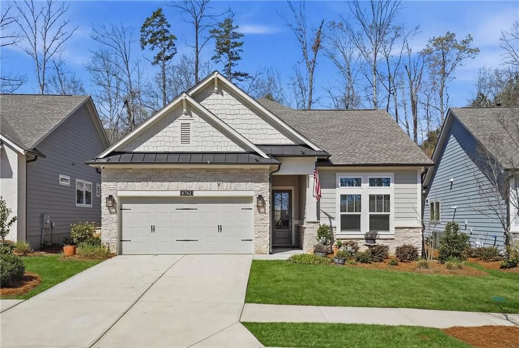 Some homes are built well. Others are positioned well. This one is both. Located inside the gated Retreat at Sterling on the Lake, this home sits directly across from the community’s private amenities, with no homes in front or behind - a rare combination of convenience and privacy in a 55+ setting. Inside, the home feels easy and elevated. High ceilings, hardwood floors throughout, and an open, light-filled layout create a space that’s both refined and comfortable. The main living area flows naturally, centered around a kitchen and gathering space designed for everyday living - not just entertaining. A whole-home wired sound system adds another layer of convenience, while the layout offers flexibility for guests, a home office, or whatever comes next. Out back, a fully screened porch, extended Trex deck, and iron-fenced yard create a seamless indoor-outdoor living experience. Fresh landscaping, new sod, and landscape lighting complete the space with a clean, low-maintenance feel. Even the garage has been elevated - upgraded for car enthusiasts or anyone who appreciates a well-finished space. Life at The Retreat includes a private clubhouse, fitness center, pickleball and bocce courts. Beyond the gates, enjoy full access to Sterling on the Lake’s award-winning amenities - four additional pools, a lakeside pavilion, fishing, kayaking, tennis courts, miles of trails, and a dedicated social calendar. With lawn and landscaping maintenance handled by the HOA, your time is your own again. Simple, well-designed, and exactly where you want to be.