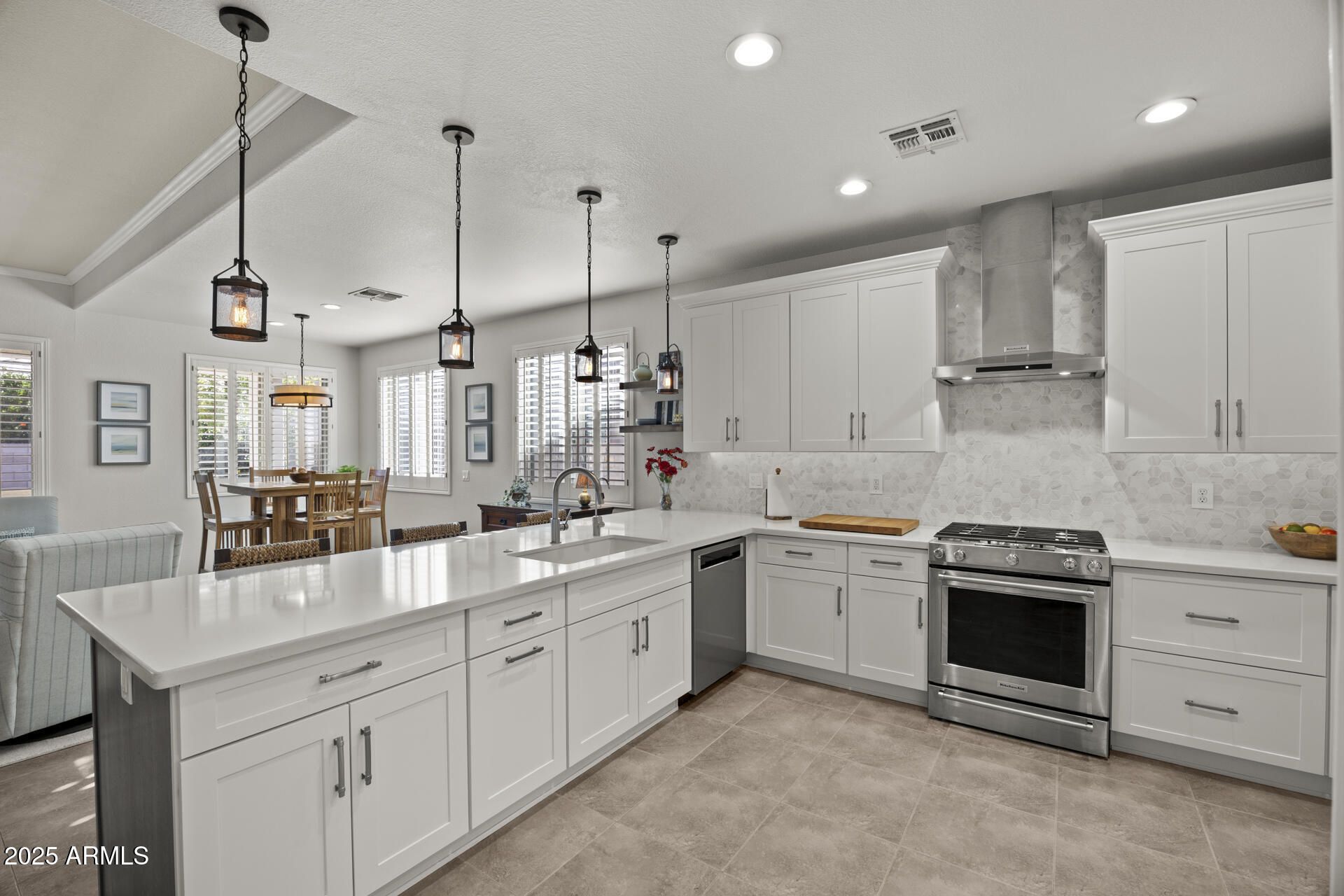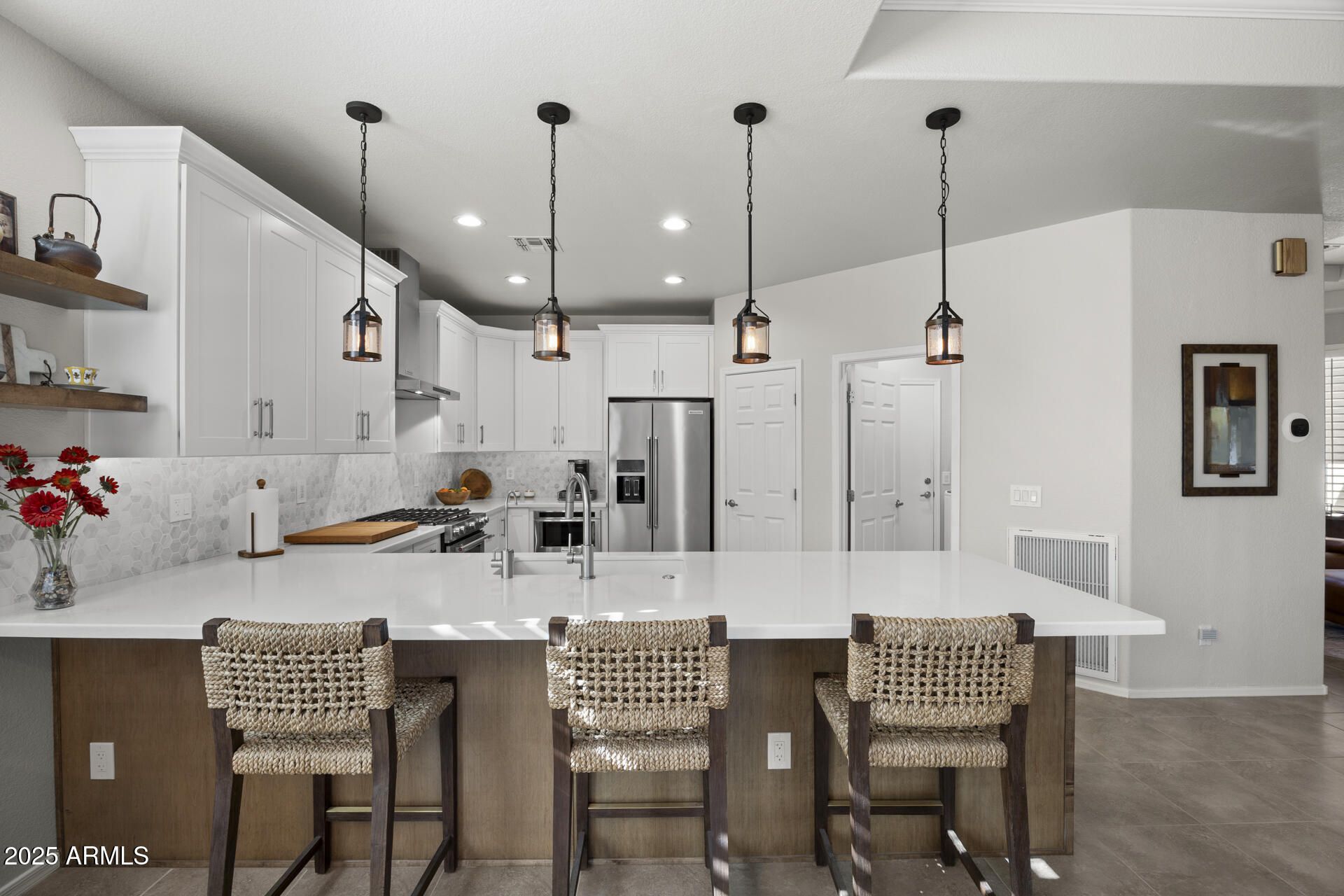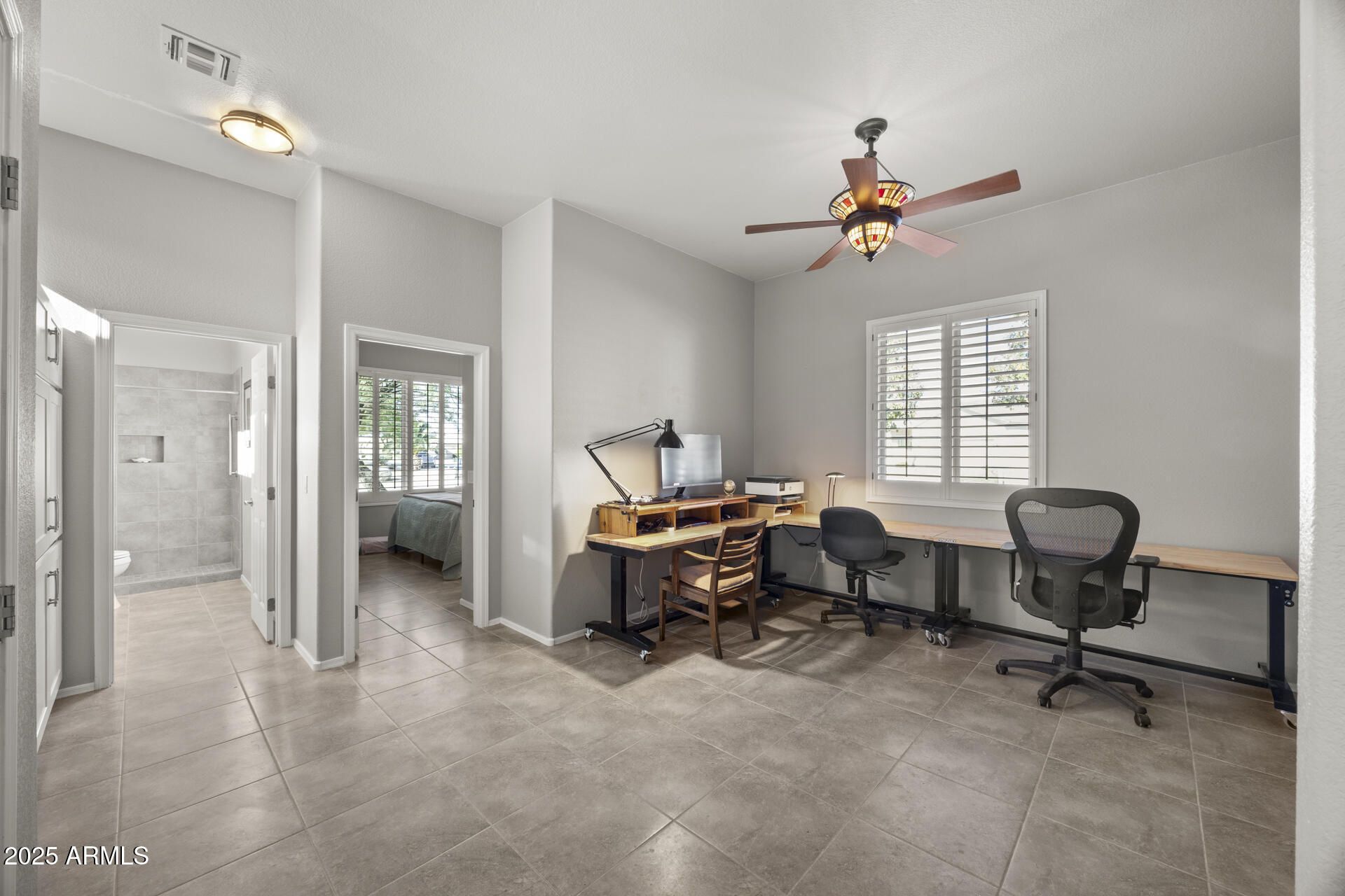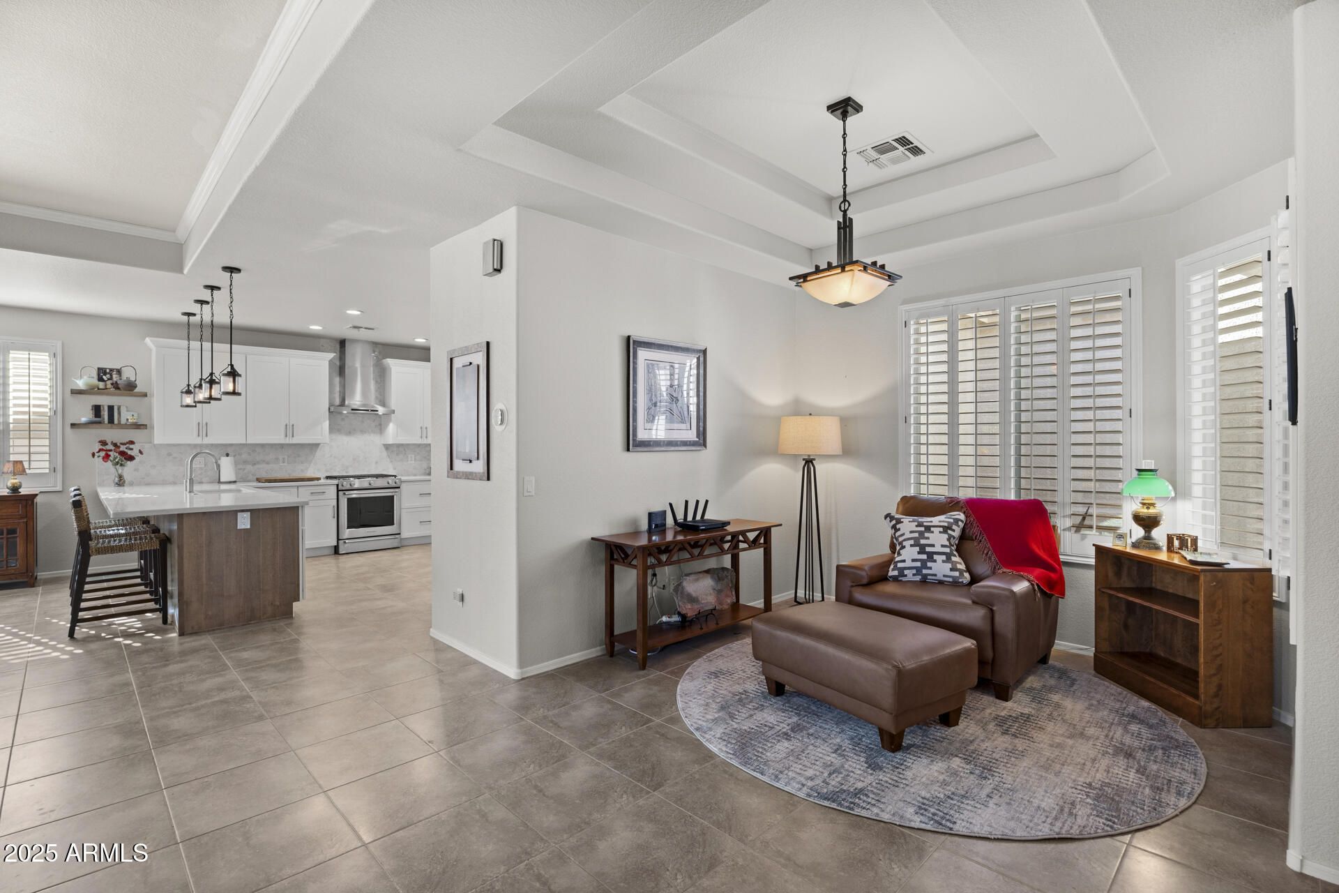 Settle into the lifestyle you've been waiting for in this beautifully updated 2-bedroom (plus a flex room), 2-bath home located in a desirable 55+ community in Chandler, Arizona—perfect for those seeking comfort, convenience, and low-maintenance living. Designed with a lock-and-leave lifestyle in mind, this home offers extensive updates that eliminate the need for future projects. Fresh exterior paint (2022) and interior paint (2023) create a clean, welcoming feel, while thoughtful improvements throughout provide peace of mind whether you're home year-round or just for the season. The fully remodeled kitchen (2023) is both stylish and practical, featuring quartz countertops, a tile backsplash, custom cabinetry with specialized drawers for pots, pans, and lids, and KitchenAid appliances, including a gas stove with vent hoodideal for easy entertaining or quiet evenings at home. Both bathrooms were remodeled in 2023 with new cabinets, quartz countertops, and modern fixtures, creating comfortable, spa-like spaces for everyday living and visiting guests. The primary suite offers a relaxing retreat, while the second bedroom and bath are perfect for family or friends. Soft-close drawers and cabinets are throughout the home. This home has no interior steps and has 18-inch tile throughout the house. Absolutely stunning! Major system upgradesincluding two-new HVAC units installed in December 2024 and all-new windows added in April 2025ensure energy efficiency, comfort, and reliability. Low-maintenance outdoor spaces include new irrigation and rock landscaping in the front yard (May 2025) and new backyard irrigation (May 2025), so you can enjoy Arizona living without constant upkeep. This move-in-ready home offers the freedom to relax and enjoy life in the Valley of the Sun.