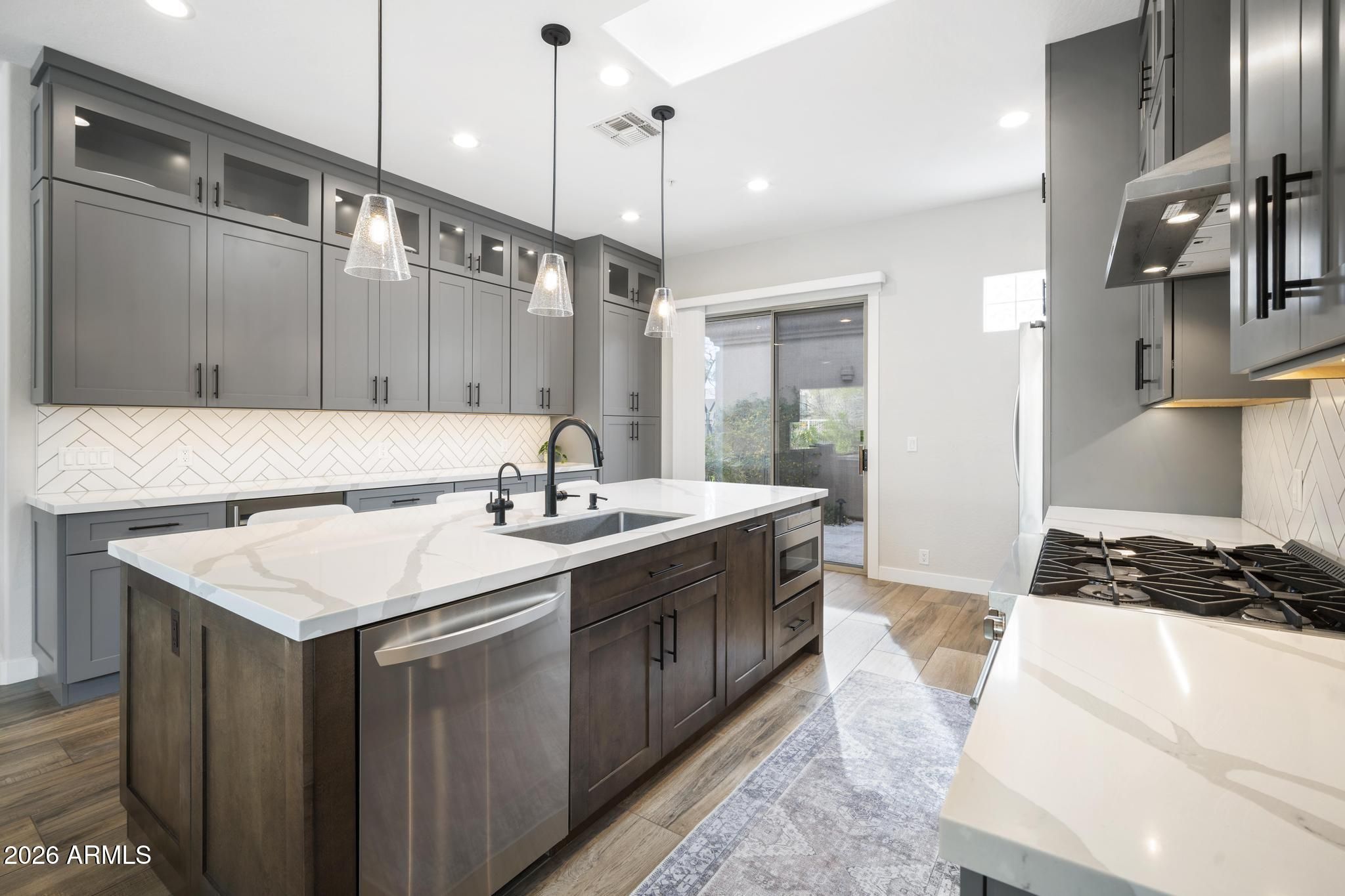 - Reverse Osmosis, Refrigerator, Built-in Microwave, Dishwasher, Disposal, Gas Range, Gas Oven, Gas Cooktop