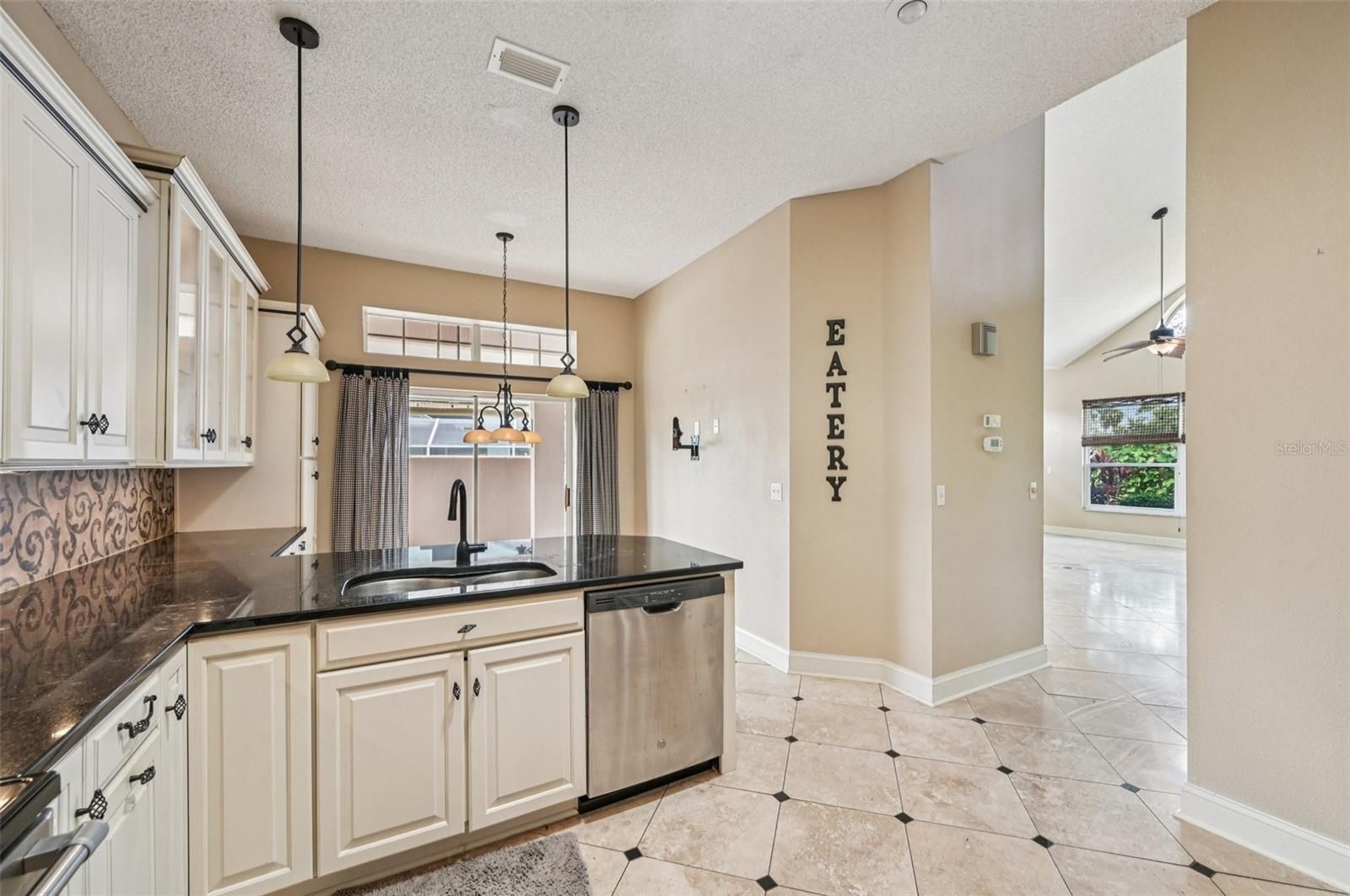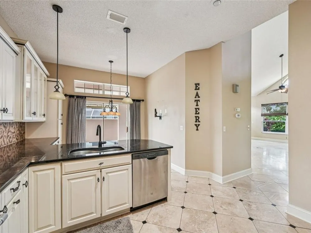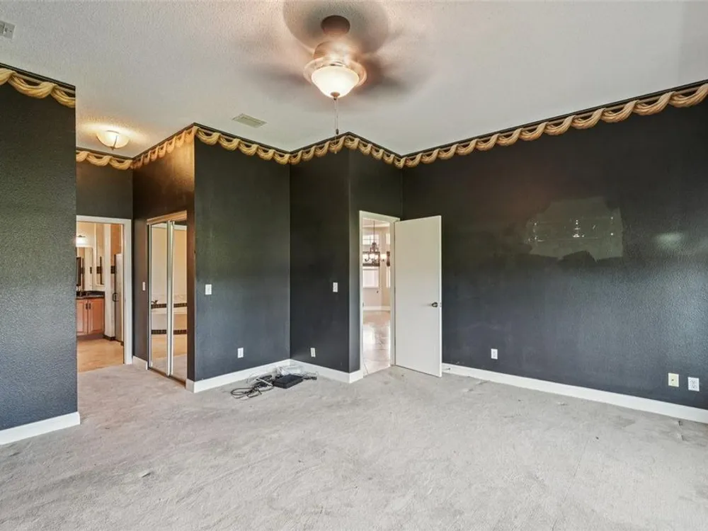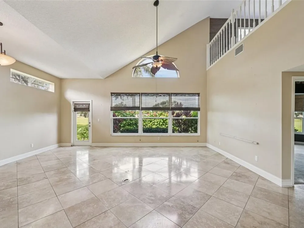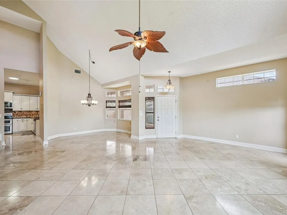- Ceiling Fan(s), Eat-in Kitchen, High Ceilings, Kitchen/Family Room Combo, Open Floorplan, Main Level Primary, Solid Surface Counters, Solid-Wood Cabinets, Vaulted Ceiling(s), Walk-In Closet(s)