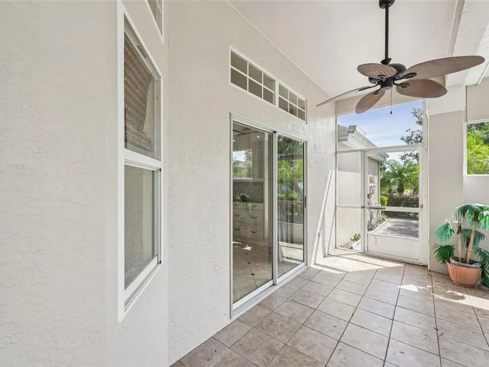 Enjoy refined living in this elegant 3-bedroom, 2.5-bath home with a 2-car garage, located in the prestigious Kings Point 55+ community of Sun City Center. This spacious residence offers a side-entry screened porch, perfect for enjoying Florida's beautiful weather year-round. Inside, you'll find ceramic tile throughout the main living areas, decorative ceiling fans, and an abundance of windows that flood the space with natural light and offer striking views of the lush landscaping . The kitchen is a showstopper—equipped with stainless steel appliances, stone countertops, a breakfast bar, an abundance of rich wood cabinetry, glass cabinet shelving, decorative drawer pulls, and stylish lighting that elevates the space. The adjacent dining area opens directly to the screened porch through sliding glass doors, creating a seamless indoor-outdoor living experience. The first-floor primary suite offers a peaceful retreat with dual vanities, a soaking tub, a separate walk-in shower, and a private water closet. A spacious second bedroom and full guest bathroom are also located on the main level, providing comfort and convenience for visitors. Upstairs, a large flex/loft space overlooks the main living area and can be used as a third bedroom, creative studio, home office, or hobby room. It also features built-in cabinetry, a closet, decorative ceiling fan, 1/2 bath and a private balcony with serene golf course views. You’ll love the gated community of Kings Point, which has amazing facilities, pools, clubs and events just waiting for you to enjoy. Located between Sarasota and Tampa, this home is perfectly positioned for a convenient ride to airports, great shopping, dining, and professional entertainment. With easy access to award-winning, sandy beaches, you’ll experience the best of all worlds—without the stress of big city life. Leave the hustle behind and embrace a new chapter in Sun City Center, Florida, the state's top-ranked and most affordable 55+ retirement community. Don’t miss this opportunity to own a beautifully appointed home in a resort-style community with world-class amenities!