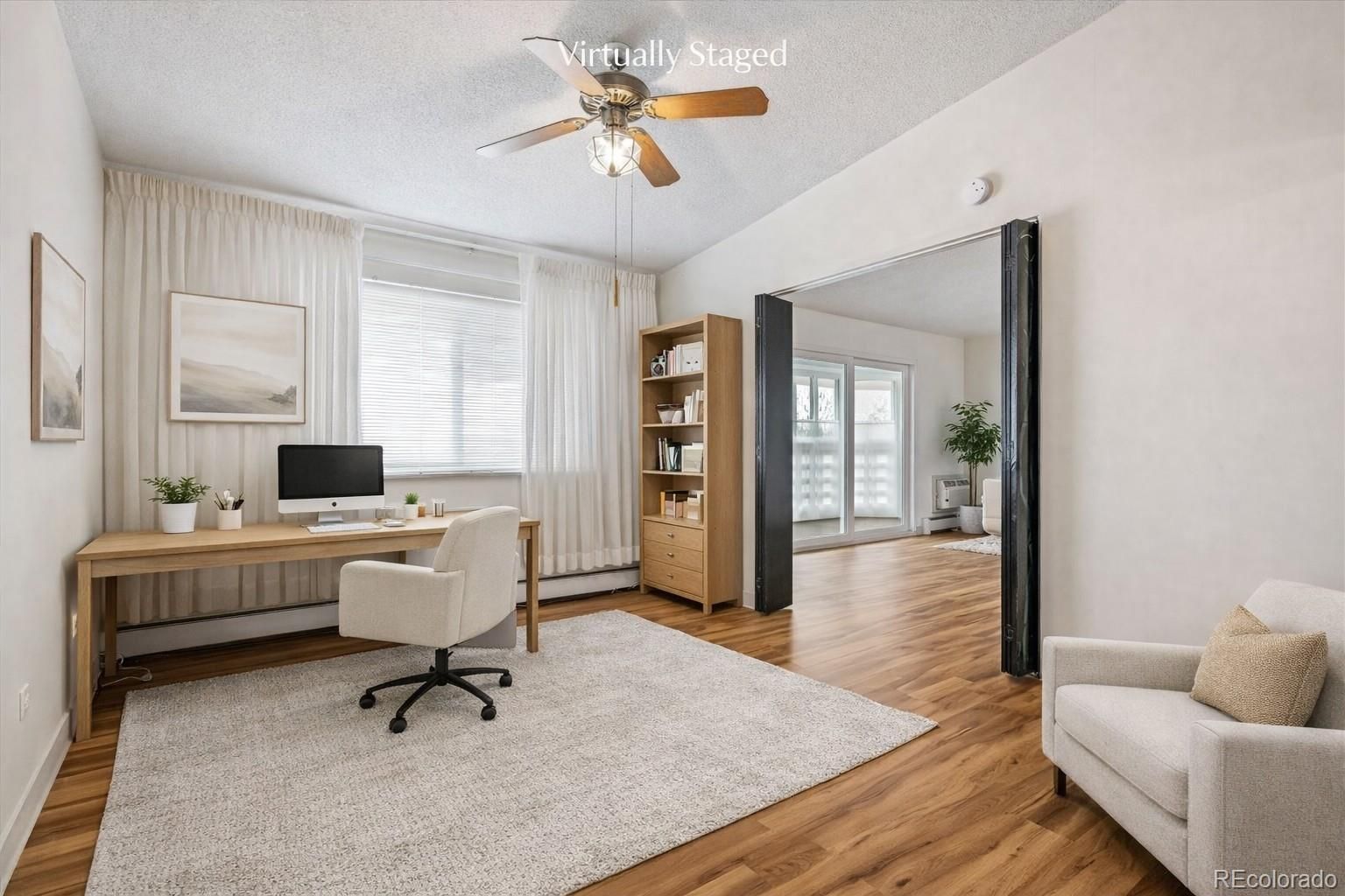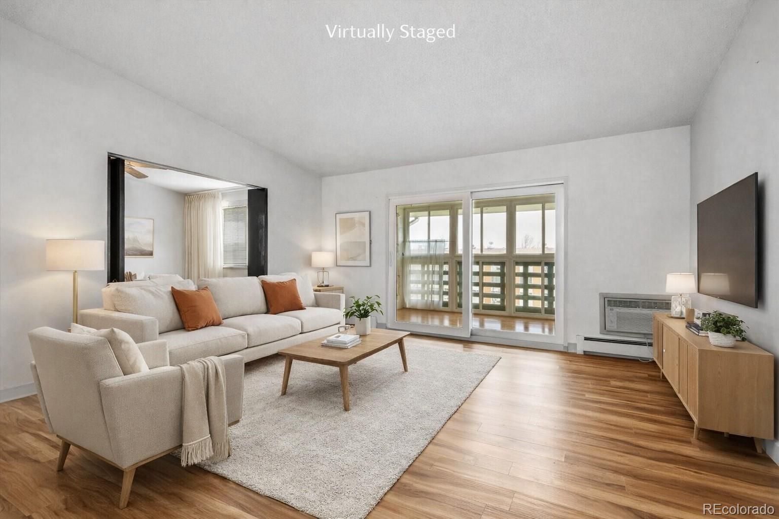 Welcome to an exceptional opportunity in Windsor Gardens—Denver’s premier 55+ active adult community—where comfort, style, and thoughtful updates come together in this beautifully maintained 2-bedroom, 2-bath residence.This spacious 1,200 sq ft home features a rare and highly sought-after dining room floor plan, perfect for entertaining or enjoying everyday meals in a dedicated, light-filled space. The inviting interior is enhanced by luxury vinyl plank flooring throughout, offering both durability and modern appeal.The kitchen is warm and welcoming with honey oak shaker-style cabinetry, complemented by a full suite of white appliances including range, oven, hood, dishwasher, and refrigerator—creating a clean, cohesive look with ample functionality.The versatile second bedroom easily adapts to your lifestyle—ideal as a guest room, home office, or cozy den. Both bathrooms have been tastefully updated with new tiled surrounds, modern vanities, updated hardware, and stylish lighting, delivering a fresh, move-in-ready feel.Enjoy year-round relaxation in the enclosed lanai, featuring brand new double-pane vinyl windows and a Low-E sliding glass door (HOA compliant)—perfect for morning coffee, reading, or additional living space in any season.Additional highlights include three newer A/C units to keep you comfortable throughout the year. Located in the heart of Windsor Gardens, residents enjoy resort-style amenities including golf, clubhouse, fitness center, pool, walking trails, and a vibrant social calendar—all just minutes from Lowry, Cherry Creek, and downtown Denver. This is low-maintenance living at its finest—don’t miss your chance to own one of the community’s most desirable floor plans.