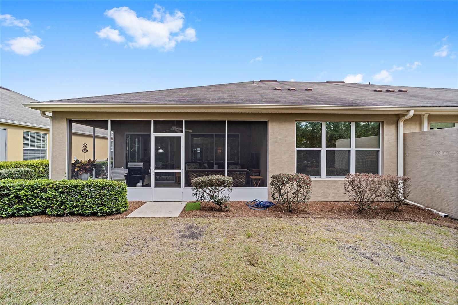 GOLF CART INCLUDED! Discover the perfect blend of comfort, convenience, and thoughtful upgrades in this beautifully maintained 2-bedroom, 2-bath villa with a versatile flex room. Designed for easy living and effortless entertaining, the bright open-concept layout offers a seamless flow between the living, dining, and kitchen areas, creating a warm and welcoming atmosphere filled with natural light. The kitchen features elegant Corian countertops, brand-new stainless steel appliances that add a sleek, modern touch, ample cabinetry, and generous workspace—perfect for preparing meals or gathering with family and friends. Just off the main living area, the flex room is enhanced with French doors, providing both privacy and style—ideal for a home office, reading room, or additional guest space. Step outside to your private screened lanai, where you can enjoy peaceful mornings with coffee or relaxing evenings in the fresh air—your own tranquil outdoor retreat. The spacious laundry room adds everyday convenience with built-in cabinets and a utility sink, offering extra storage and functionality. Enjoy true maintenance-free living with lawn care, landscaping, and exterior maintenance all included—giving you more time to enjoy the things you love. Take advantage of exceptional community amenities such as resort-style pools, fitness centers, walking trails, and vibrant social clubs designed to keep you active and connected. And with the golf cart included, getting around the community is both easy and fun! This villa is move-in ready and perfectly suited for the carefree lifestyle you deserve. Schedule your private showing today!