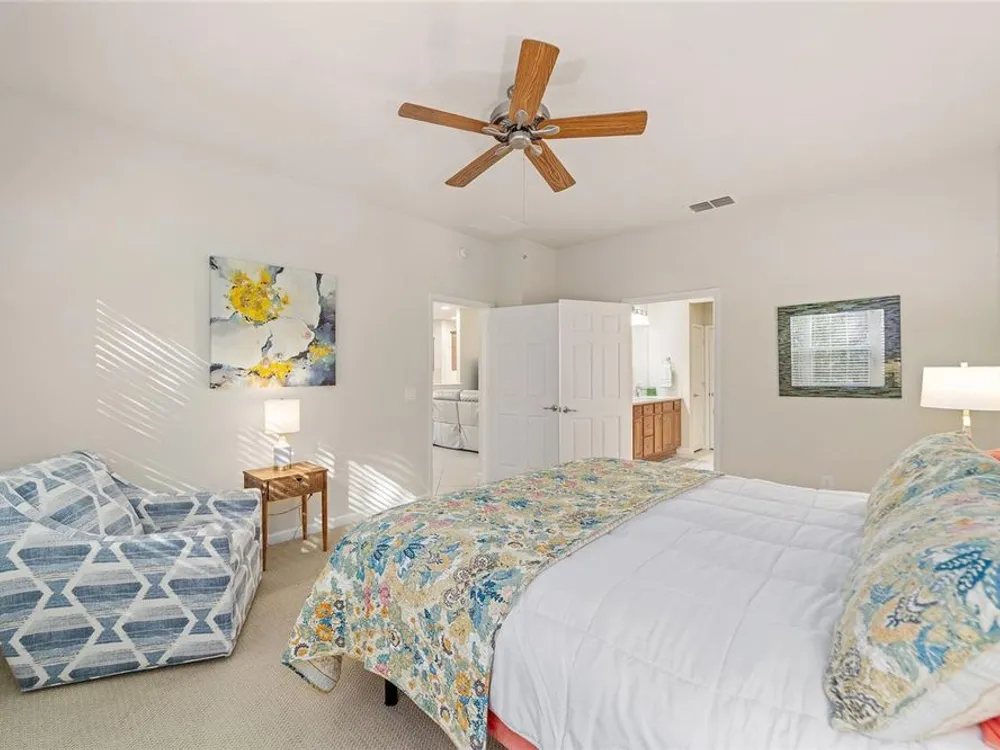 - Ceiling Fan(s), Eat-in Kitchen, High Ceilings, Kitchen/Family Room Combo, Living/Dining Room, Open Floorplan, Main Level Primary, Thermostat