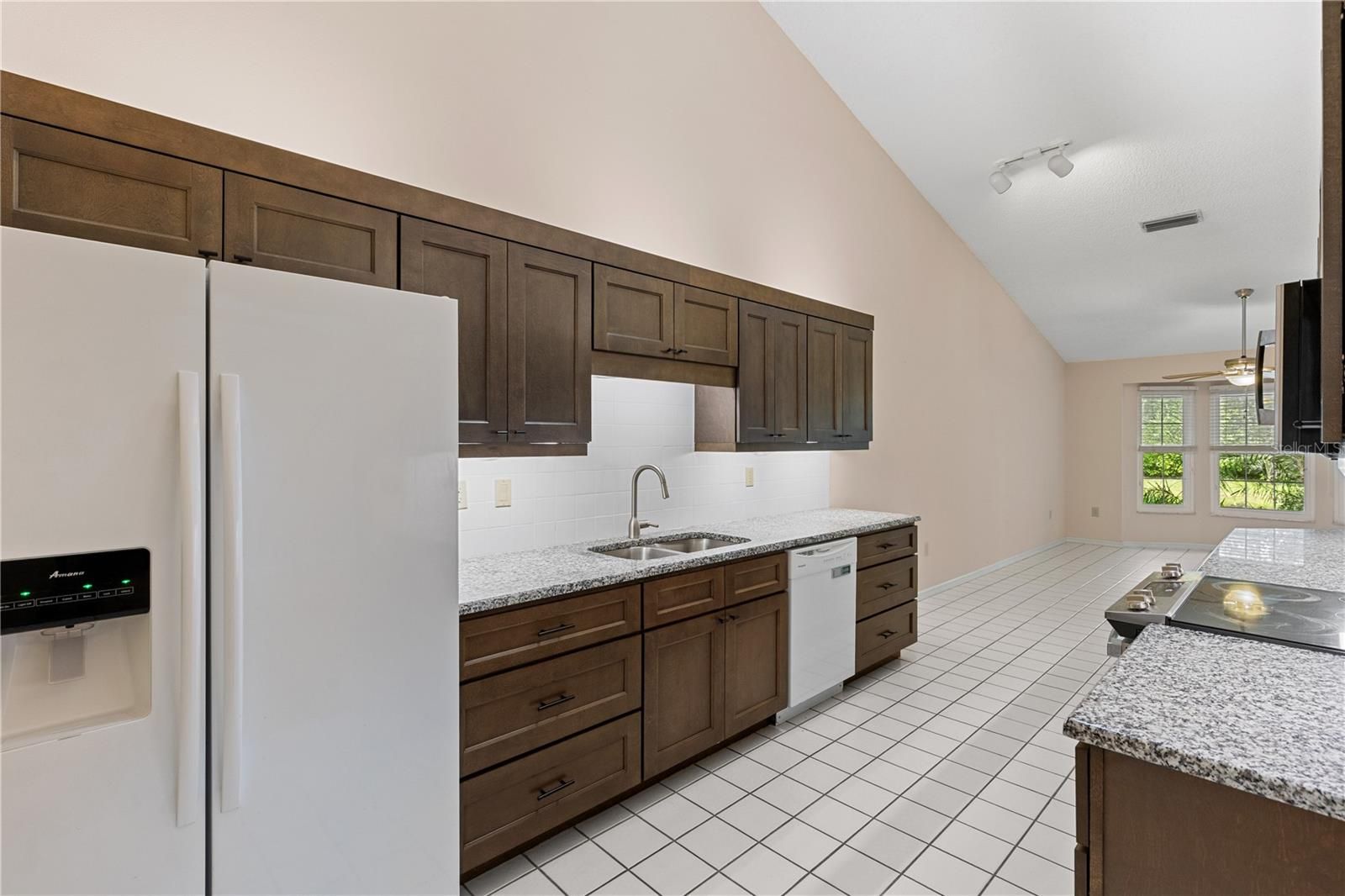 - Cathedral Ceiling(s), Ceiling Fan(s), Eat-in Kitchen, High Ceilings, Stone Counters, Thermostat, Vaulted Ceiling(s), Walk-In Closet(s), Window Treatments