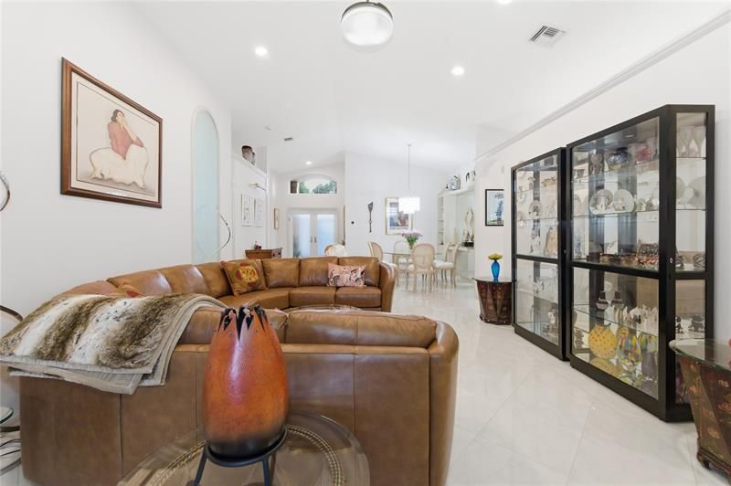 Welcome to this beautifully maintained 3-bedroom, 2-bath home located in the prestigious 55+ community of Villa Borghese. Boasting spectacular curb appeal, this residence features a new roof, new matching driveway pavers, and a hurricane-impact glass front door. Lush tropical landscaping enhances the cozy atmosphere from the moment you arriive. Inside, vaulted ceilings add height and architectural interest, creating a bright and airy living space. The impact-glass bonus room offers additional square footage and flexibility—perfect as an indoor sitting area or relaxed outdoor lounge space. With 1,952 square feet of living space, this home is move-in ready and waiting for its next resident. Enjoy the friendly, active lifestyle for which Villa Borghese is known.