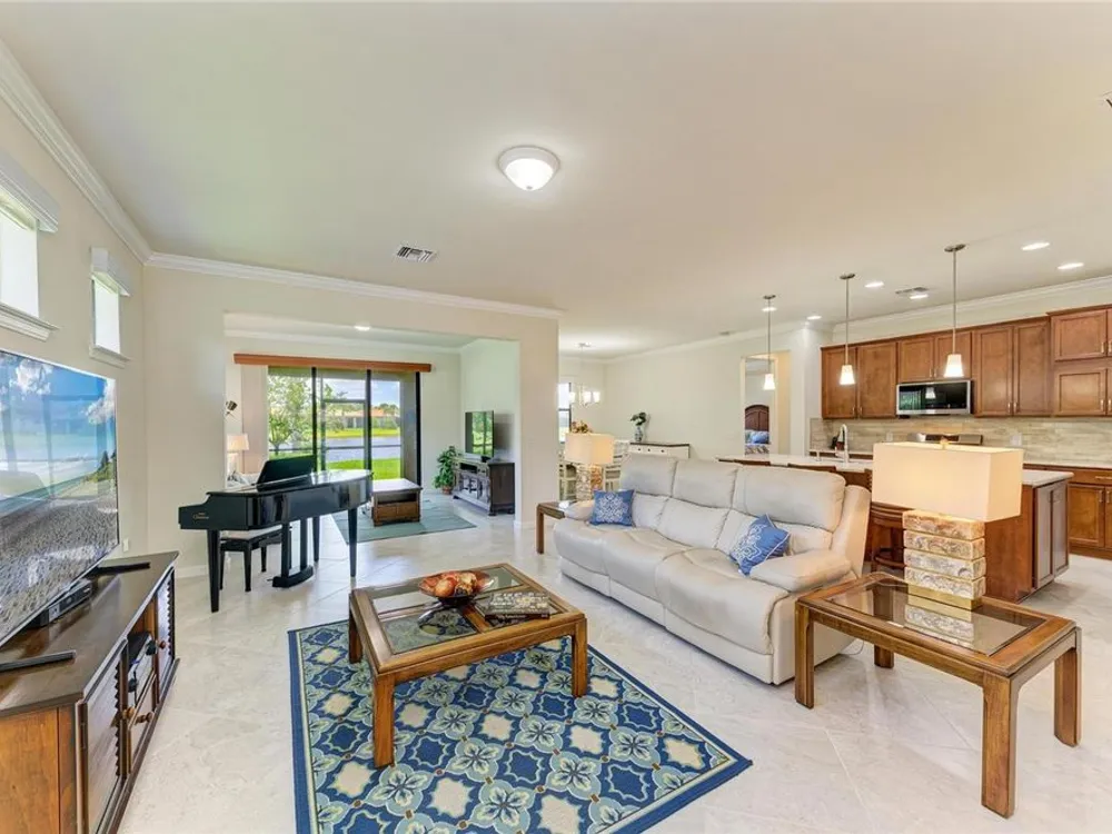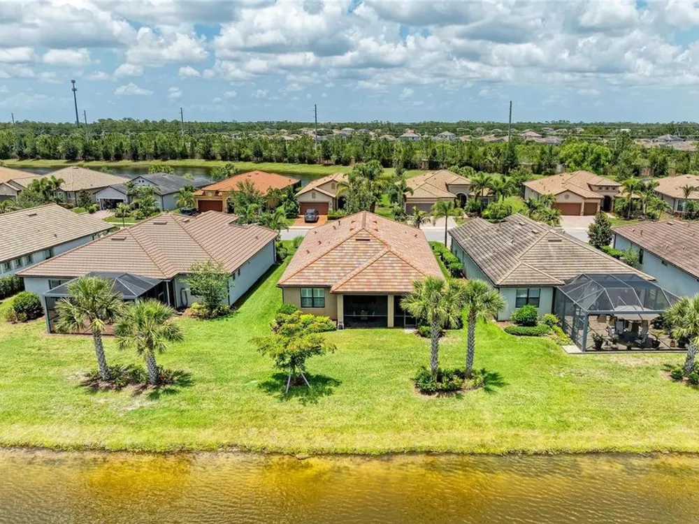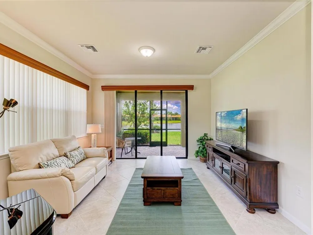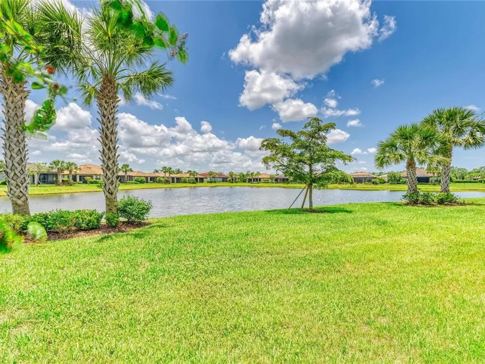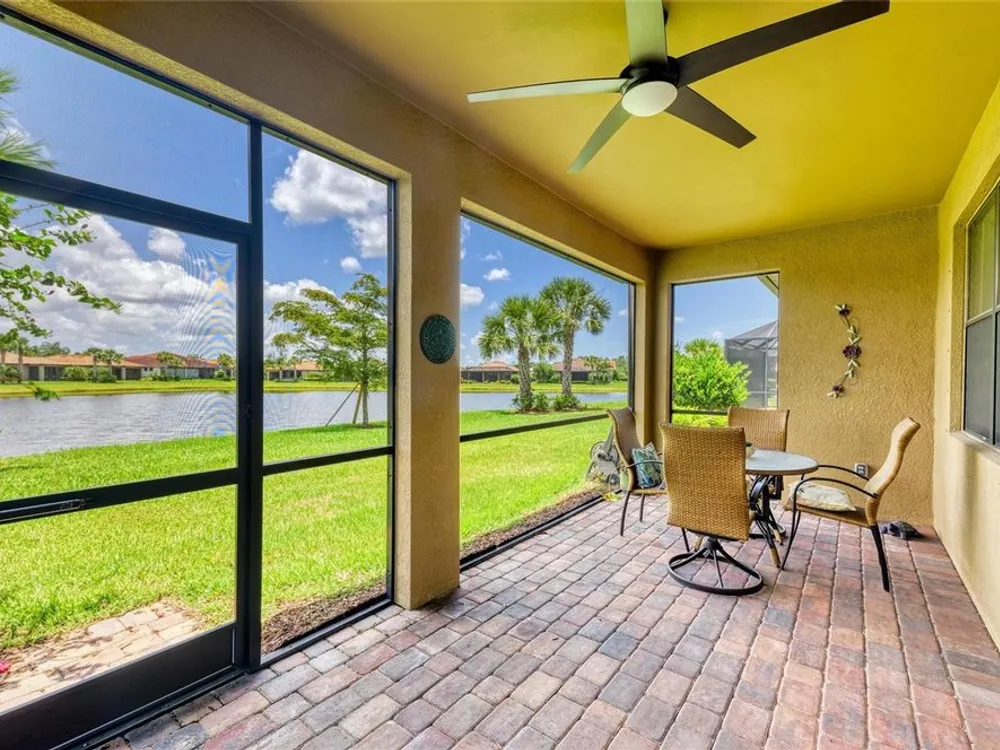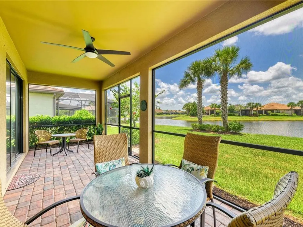 Welcome to this beautifully appointed home located in the sought-after 55+ gated community of Del Webb Lakewood Ranch. Situated on a premium waterfront lot, this 2-bedroom, 2-bath home with a flexible office/den offers the perfect blend of comfort, style, and tranquility. Step inside to find an open-concept layout with tile flooring, high ceilings, and abundant natural light. The gourmet kitchen features quartz countertops, stainless steel appliances, modern cabinetry, and a spacious island that flows seamlessly into the living and dining areas—ideal for both everyday living and entertaining. The owner’s suite boasts serene water views, a large walk-in closet, and an en-suite bath with dual sinks and a walk-in shower. A private guest bedroom and full bath provide comfort for family or visitors. The versatile den/office offers the flexibility to work from home or host overnight guests. Step outside to your screened lanai overlooking the lake, where you can enjoy morning coffee or evening sunsets in peaceful privacy. Enjoy world-class amenities including a resort-style pool, fitness center, tennis and pickleball courts, clubhouse, and planned social activities—all just a short golf cart ride away. Don't miss this opportunity to live in one of Lakewood Ranch's premier active adult communities. Schedule your private showing today!