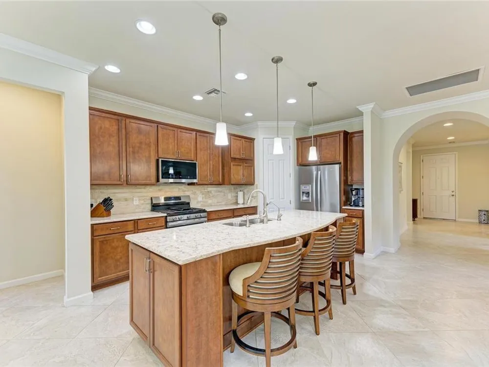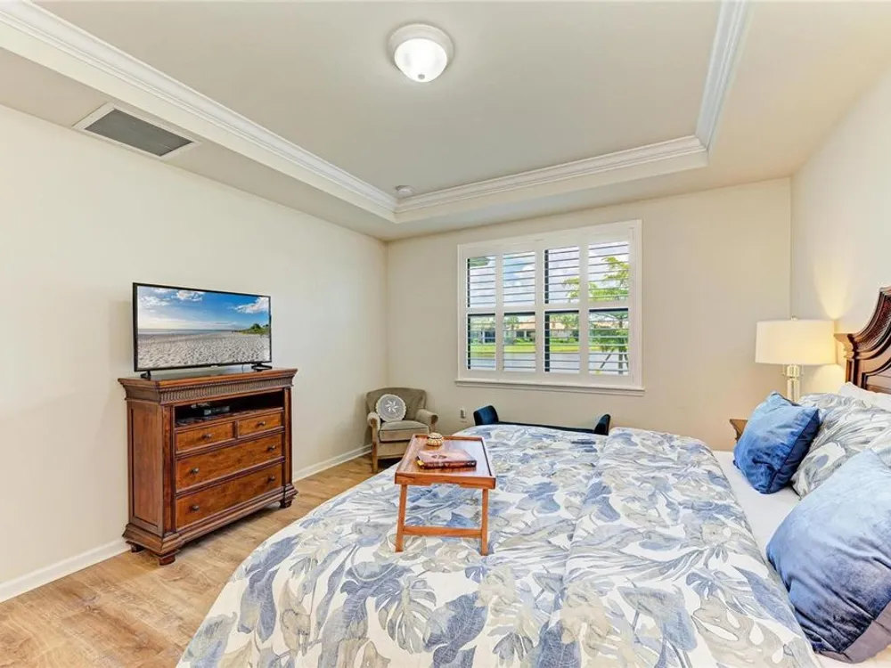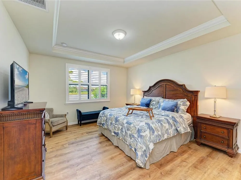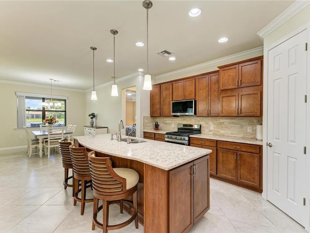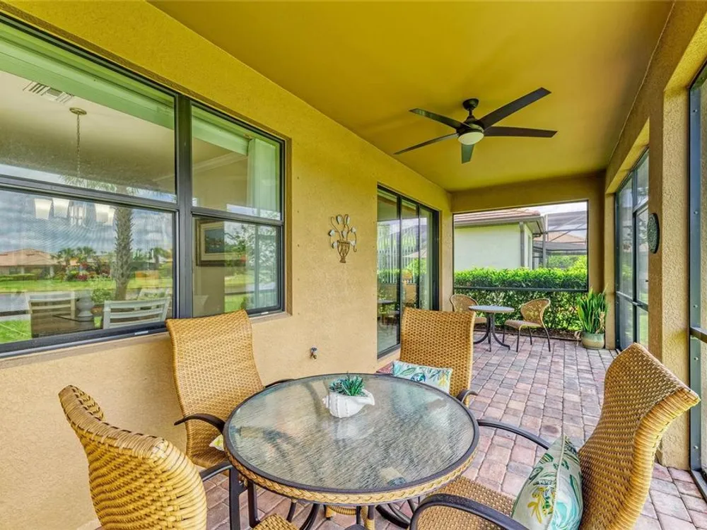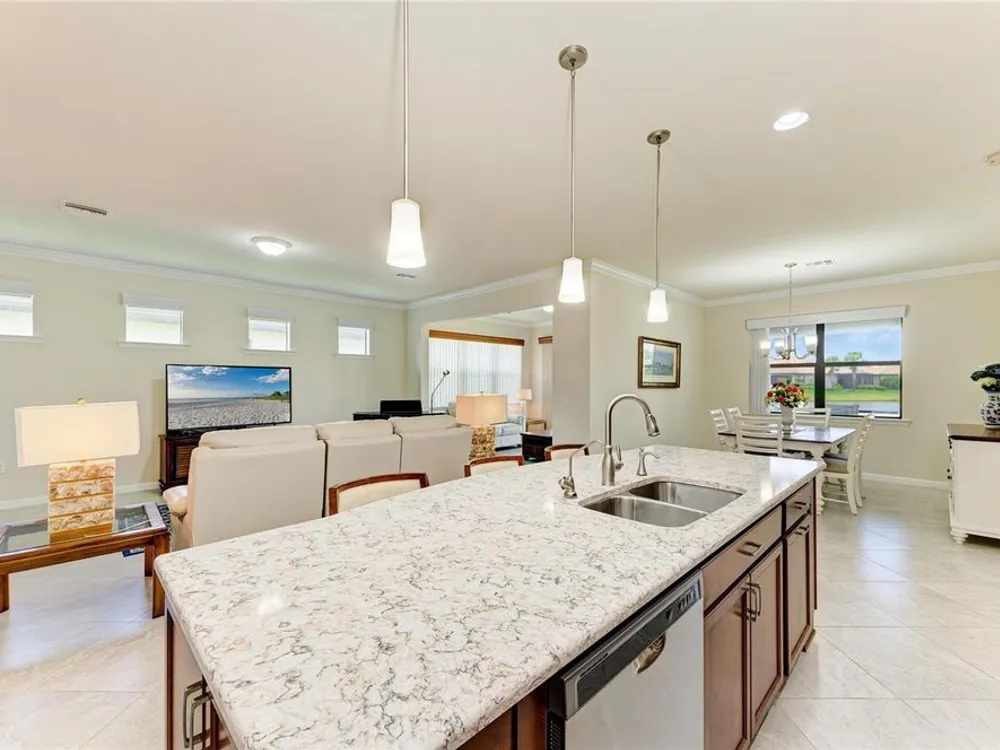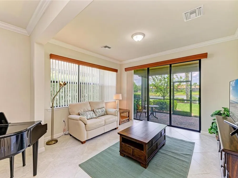 Welcome to this beautifully appointed home located in the sought-after 55+ gated community of Del Webb Lakewood Ranch. Situated on a premium waterfront lot, this 2-bedroom, 2-bath home with a flexible office/den offers the perfect blend of comfort, style, and tranquility. Step inside to find an open-concept layout with tile flooring, high ceilings, and abundant natural light. The gourmet kitchen features quartz countertops, stainless steel appliances, modern cabinetry, and a spacious island that flows seamlessly into the living and dining areas—ideal for both everyday living and entertaining. The owner’s suite boasts serene water views, a large walk-in closet, and an en-suite bath with dual sinks and a walk-in shower. A private guest bedroom and full bath provide comfort for family or visitors. The versatile den/office offers the flexibility to work from home or host overnight guests. Step outside to your screened lanai overlooking the lake, where you can enjoy morning coffee or evening sunsets in peaceful privacy. Enjoy world-class amenities including a resort-style pool, fitness center, tennis and pickleball courts, clubhouse, and planned social activities—all just a short golf cart ride away. Don't miss this opportunity to live in one of Lakewood Ranch's premier active adult communities. Schedule your private showing today!