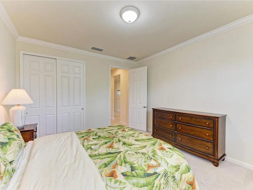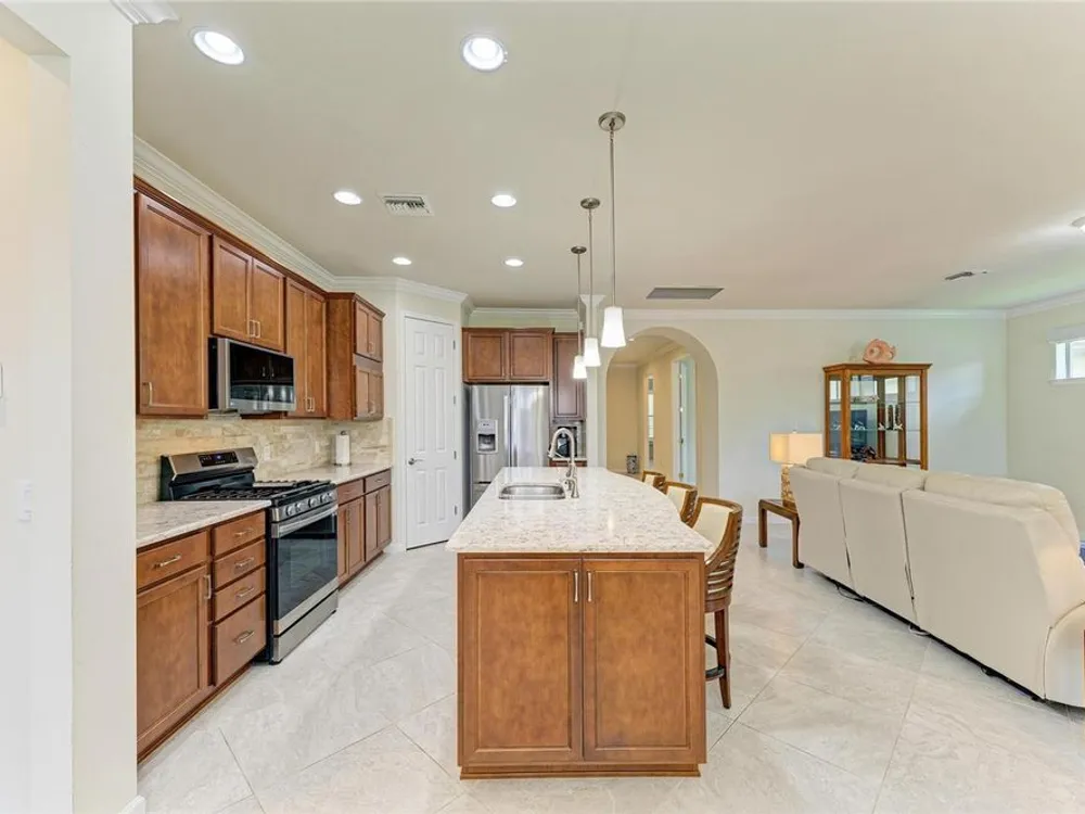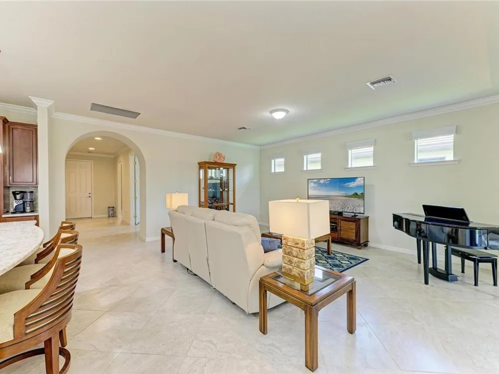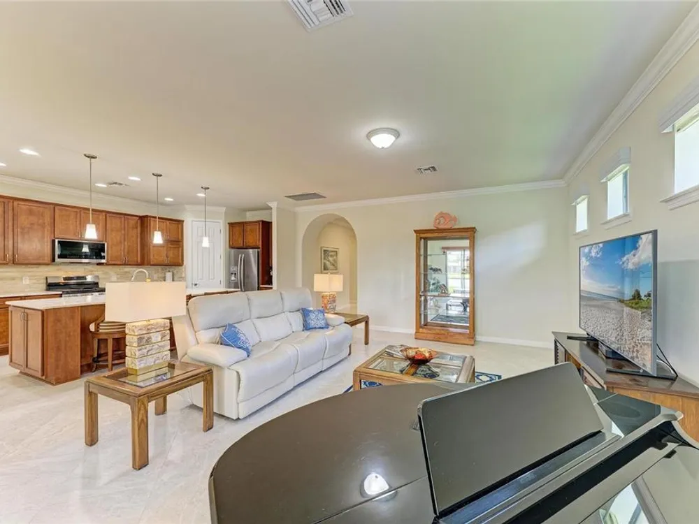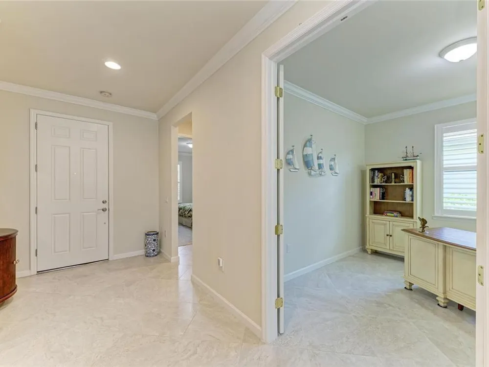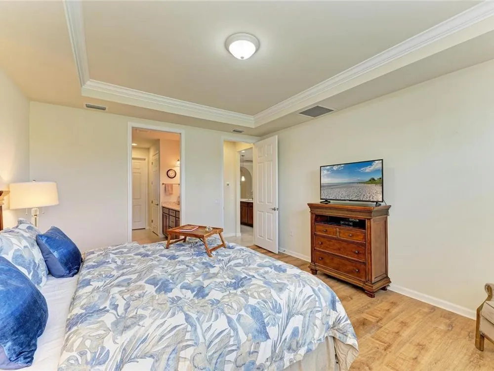 Welcome to this beautifully appointed home located in the sought-after 55+ gated community of Del Webb Lakewood Ranch. Situated on a premium waterfront lot, this 2-bedroom, 2-bath home with a flexible office/den offers the perfect blend of comfort, style, and tranquility. Step inside to find an open-concept layout with tile flooring, high ceilings, and abundant natural light. The gourmet kitchen features quartz countertops, stainless steel appliances, modern cabinetry, and a spacious island that flows seamlessly into the living and dining areas—ideal for both everyday living and entertaining. The owner’s suite boasts serene water views, a large walk-in closet, and an en-suite bath with dual sinks and a walk-in shower. A private guest bedroom and full bath provide comfort for family or visitors. The versatile den/office offers the flexibility to work from home or host overnight guests. Step outside to your screened lanai overlooking the lake, where you can enjoy morning coffee or evening sunsets in peaceful privacy. Enjoy world-class amenities including a resort-style pool, fitness center, tennis and pickleball courts, clubhouse, and planned social activities—all just a short golf cart ride away. Don't miss this opportunity to live in one of Lakewood Ranch's premier active adult communities. Schedule your private showing today!
