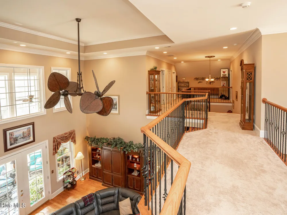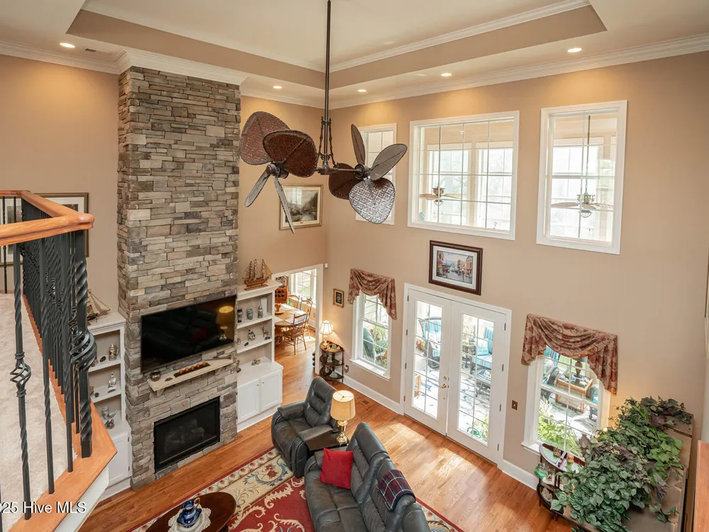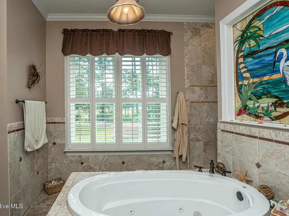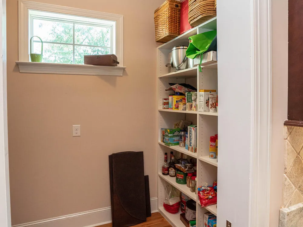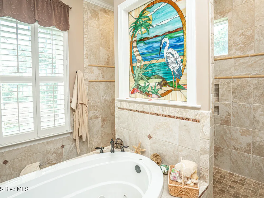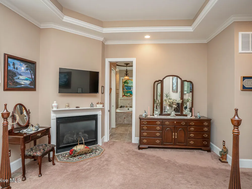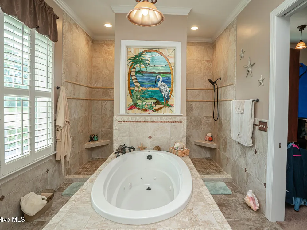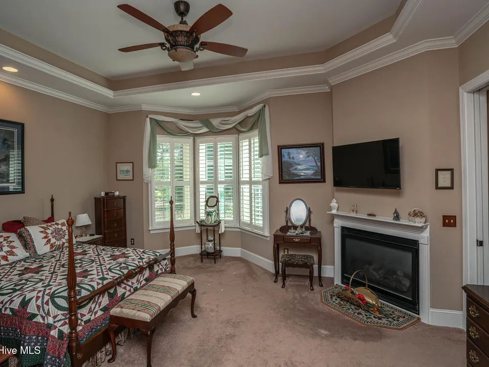 - Blinds/Shades, Tray Ceiling(s), Whirlpool, Walk-In Closet(s), Walk-in Shower, Vaulted Ceiling(s), Pantry, Entrance Foyer, Master Downstairs, Kitchen Island, High Ceilings, Gas Log, Ceiling Fan(s), Bookcases