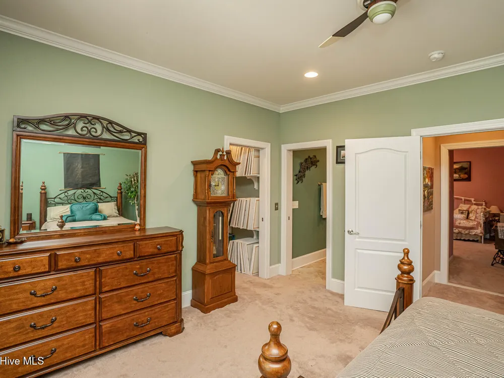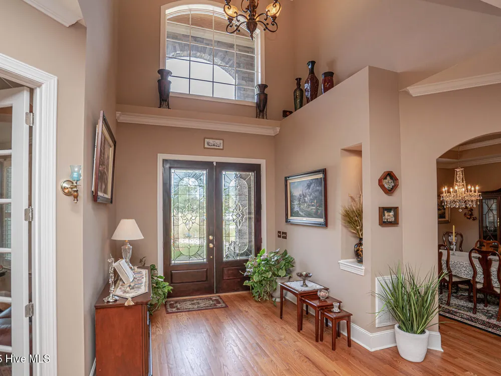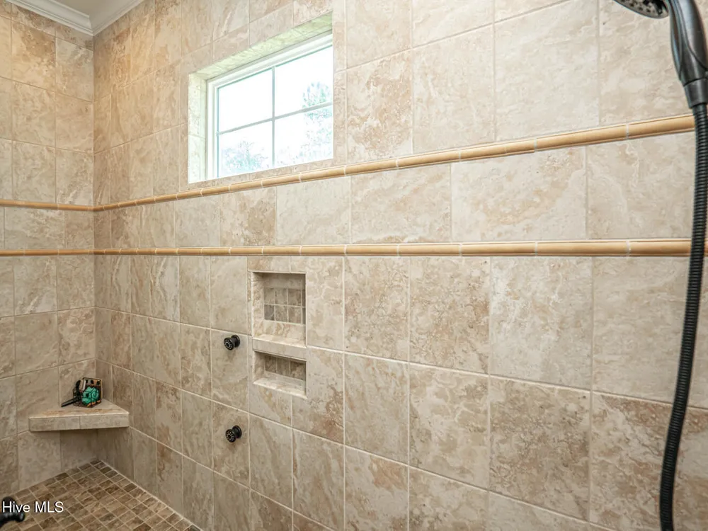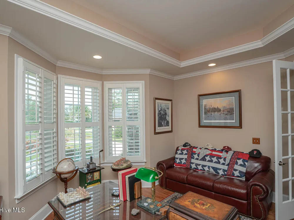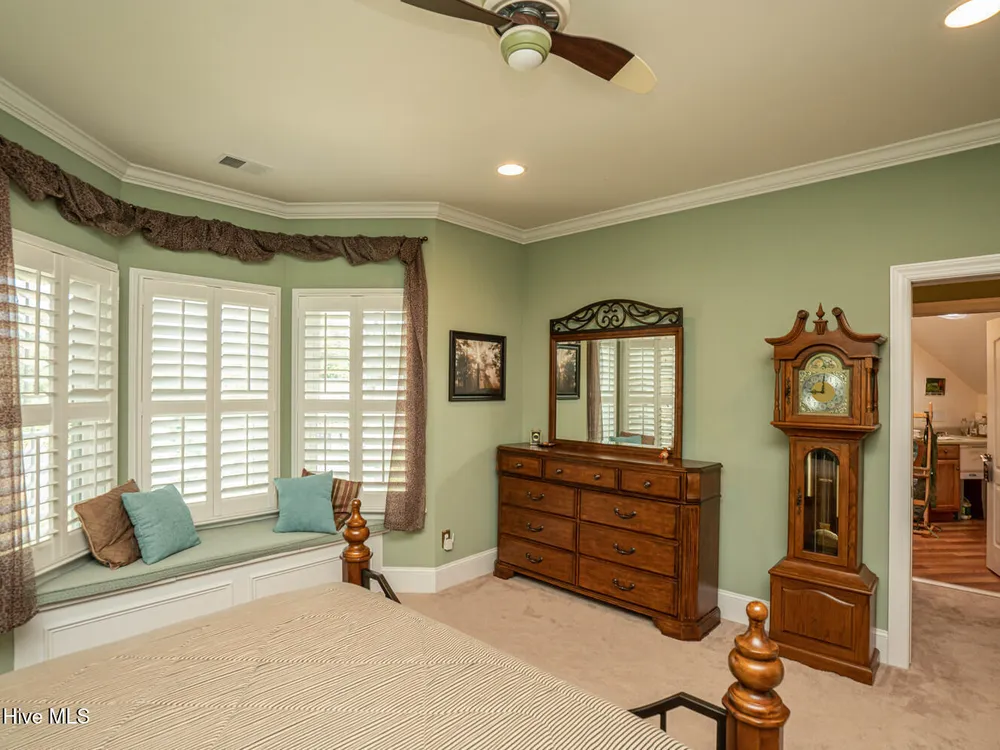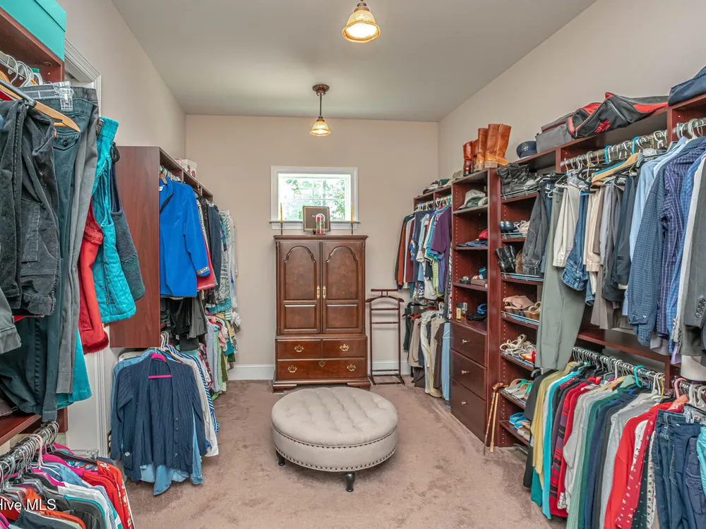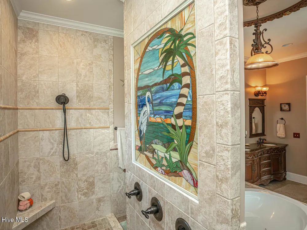 - Blinds/Shades, Tray Ceiling(s), Whirlpool, Walk-In Closet(s), Walk-in Shower, Vaulted Ceiling(s), Pantry, Entrance Foyer, Master Downstairs, Kitchen Island, High Ceilings, Gas Log, Ceiling Fan(s), Bookcases