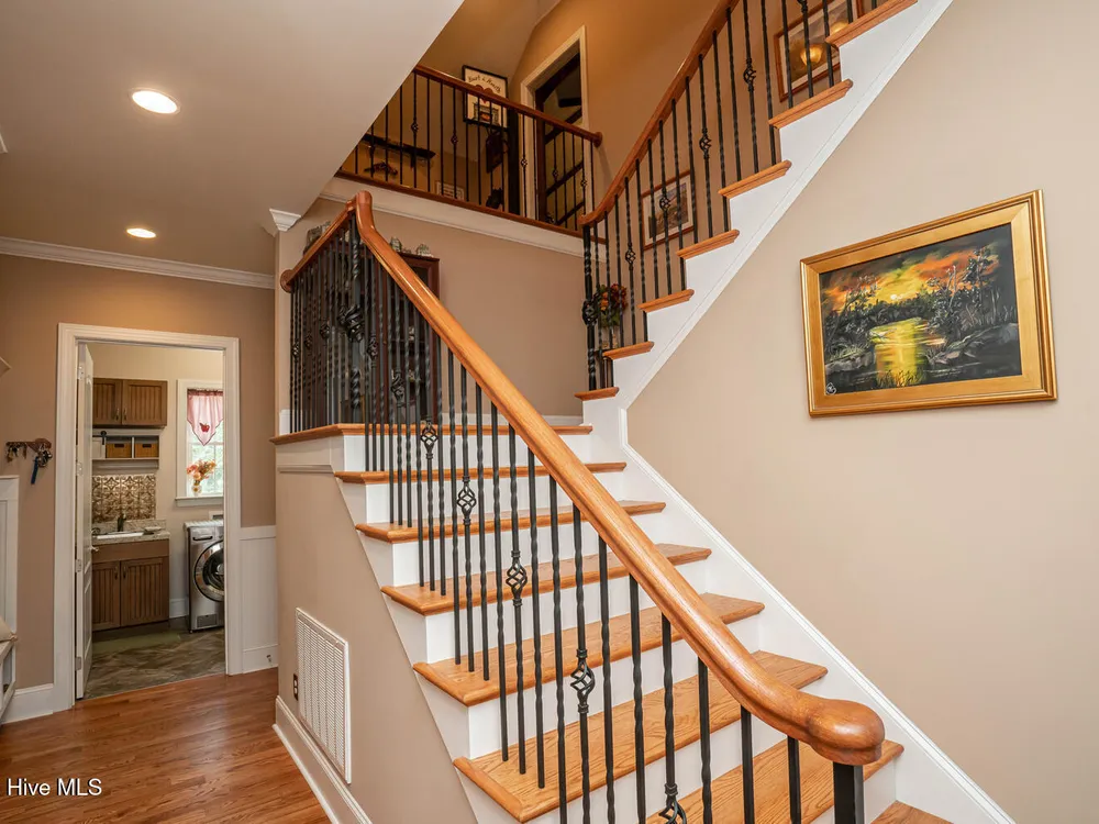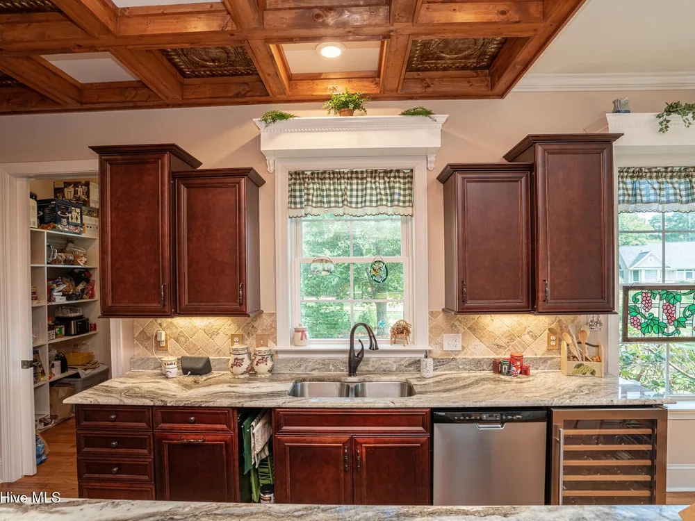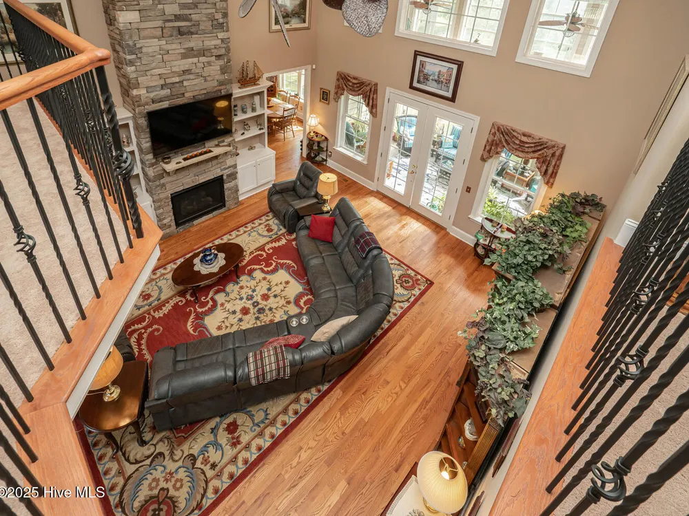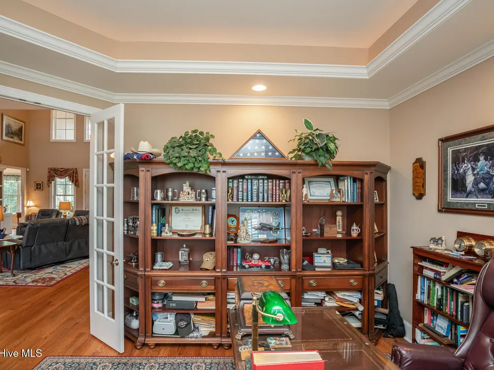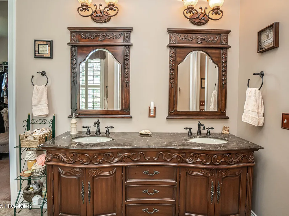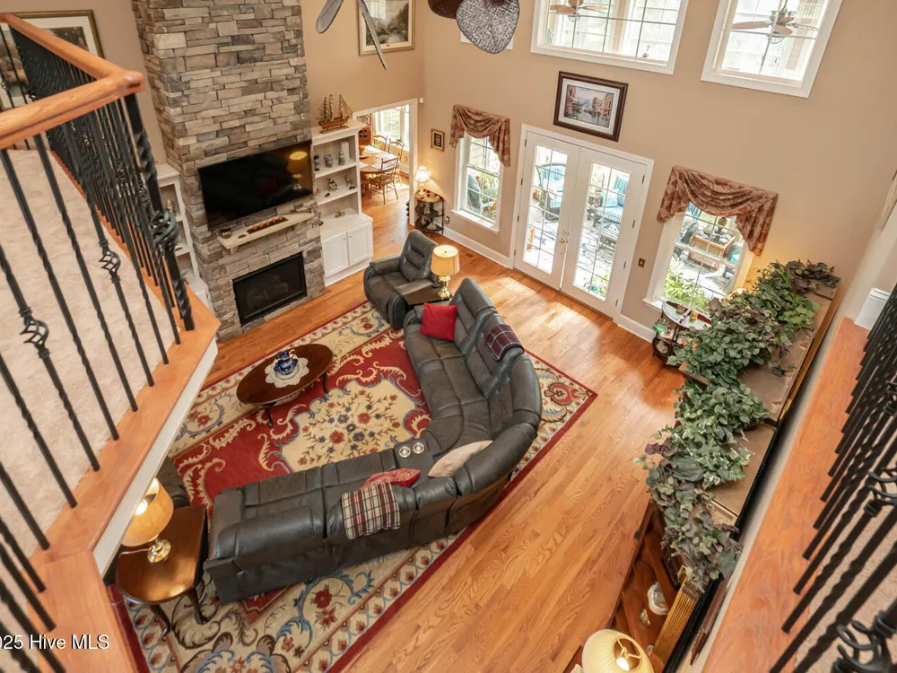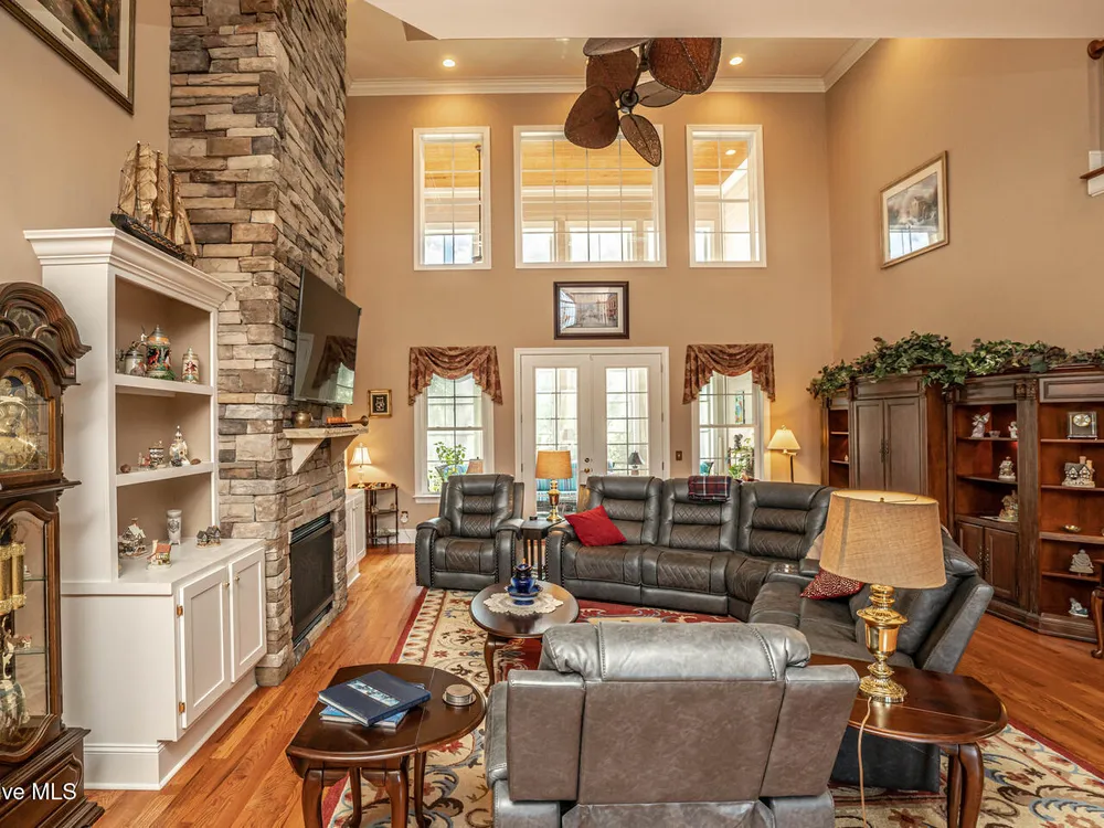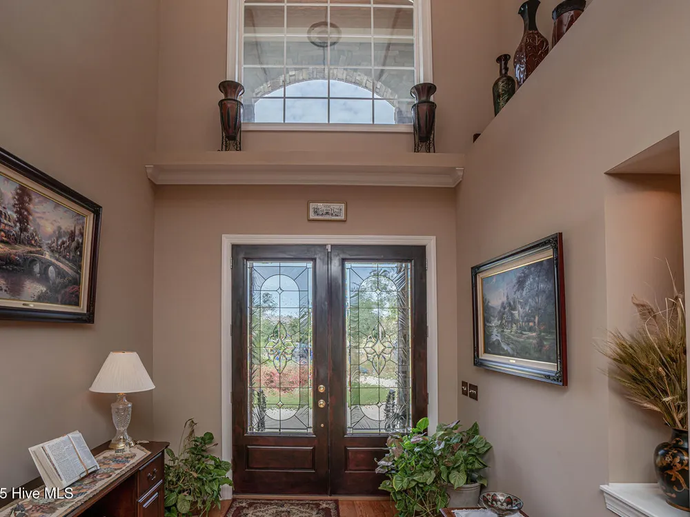 - Blinds/Shades, Tray Ceiling(s), Whirlpool, Walk-In Closet(s), Walk-in Shower, Vaulted Ceiling(s), Pantry, Entrance Foyer, Master Downstairs, Kitchen Island, High Ceilings, Gas Log, Ceiling Fan(s), Bookcases
