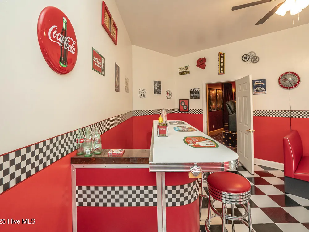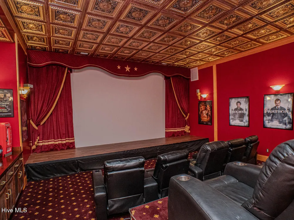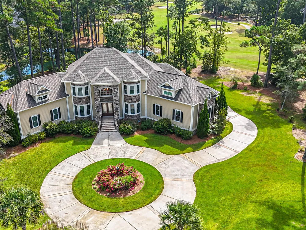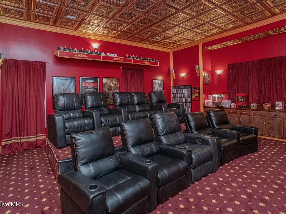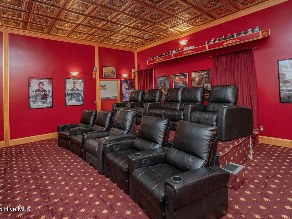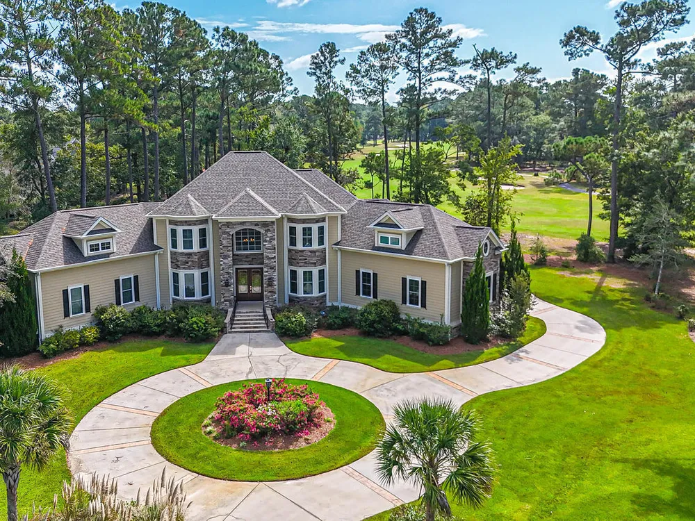 Welcome to 6576 Limerick Pl, located in Prestigious Ocean Ridge Plantation. This amazing property consists of 2 oversized lots totaling 1.18 ac with panoramic golf & water views from every window. You'll enter through double beveled glass doors and the high-ceilinged foyer to a sweeping 2 story great room, with stone fireplace and a recessed ceiling. Pass through the spacious great room through French doors to the Carolina room outfitted with 2 large ceiling fans & Eze breeze windows. The custom kitchen shows off a gorgeous, coffered ceiling, walk in pantry & custom cabinetry with elegant cornices. The front rooms include a formal dining room & office with custom built ins & bay windows in both. The spacious Primary bedroom has a bay window, ceiling fan & fireplace. The adjoining bath has custom vanities, jetted tub, and a large, low step, double entry tiled shower with side water jets, a rain head, and detachable shower sprayer. The closet is massive and contains custom built ins, its own linens closet and flows conveniently into a fully equipped laundry room. The second floor contains 3 bedrooms, generous closets, 2 bathrooms and 3 walk in attic storage areas. You must see the charming bar room Built to resemble a British Pub, it has timbered beams and flooring, and a built-in serving bar. Cheers! A hidden gem, just off of the kitchen, is Entertaiment central. Here you will find a 50's style Diner, complete with working Jukebox, 2 authentic booths and a soda fountain counter. All furniture and items, for this room, convey, unless otherwise specified. As you walk through the Diner, prepare to be impressed with the remarkable 10 seat theater room. The draperies, big screen, opulent ceiling, and concession area will bring back memories of the fun times at the Saturday matinee. Check out the 'gallery' of famous figures enjoying the Movie from up high! Your family & you will be delighted to own this prize. Schedule your viewing appointment today to see for yourself!