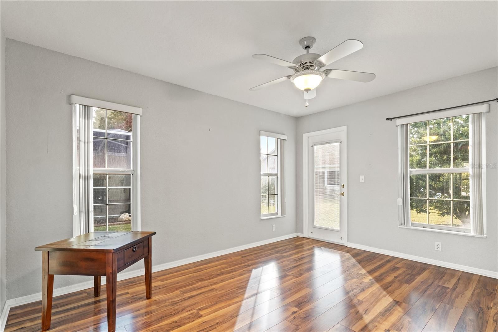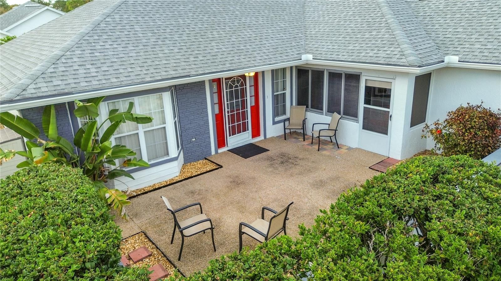 One or more photo(s) has been virtually staged. Welcome to Bay Tree Greens- neighborhood 21 boasting maintained lots- in the well-established and gated 55+ community of Oak Run. Enjoy your 1,550 square foot, concrete block/ stucco, move-in ready gem, spending your days enjoying amenities galore here! Well-maintained and lovely, this 2 bedroom/ 2 full bath home offers an oversized dining area for entertaining, a living room featuring bay windows and excellent natural light, a BONUS office/ craft room, and an updated eat-in kitchen. The charming white vinyl gate provides access to the 25x19 courtyard, the perfect space to entertain, meet your guests, and enjoy a cool beverage. Step inside this Florida home on to ceramic tile, an entryway equipped for a large dining table and your special furniture pieces. To the immediate left is a large, open living space- the perfect spot to mount your television and enjoy a comfortable couch. Just off of the living room is an office/ craft room with pocket doors for privacy and backyard access to the mature fruit trees. On the other side of your home is a lovely updated kitchen featuring white cabinetry, neutral granite counter tops, an oversized pantry for storage, and matching desk. The kitchen, also sitting on tile, offers stainless steel appliances, has plenty of room for a breakfast table, and sliding glass doors leading to a side covered porch on concrete that overlooks the courtyard. Open up the sliders, the garage door to feature the new garage screen, and windows for perfect air flow. Down the hall, the first of two bathrooms, a 12x5 space with tub/ shower combo and tons of counter space for your guests, sits. Next door, lovely natural light spills into the guest bedroom, sitting on laminate with its nice-sized closet and ceiling fan light. The primary bedroom suite sits on the left side of the hall- a 15x14 space that can easily fit a King-sized bed, offering a spectacular walk-in closet, and an en-suite bathroom featuring dual sinks, linen closet, and a fully remodeled easy entry tile shower with custom glass door. Indoor laundry and the 21x16 garage make for easy living. Roof (2019); Electric Water Heater (2023); HVAC (2014); Interior & Exterior Paint (2022). Oak Run is a 55+ community located just off of W. Hwy 200, outside city limits near a natural wildlife preserve. The monthly amenities fee covers yard maintenance and yard waste pick-up, weekly trash, 24-hour security, basic cable TV, community Channel-12 TV, use of all facilities, and the maintenance of all recreational and common areas including the dog park. Amenities include access to 6 pools, 5 hot tubs, golf course, restaurant, two fitness centers, library, billiards, card and craft room, tennis and pickleball, horseshoes, volleyball, and more. This is the Florida lifestyle that you've been dreaming about- there is a club for any interest that you may have- gardening, motorcycle, cards, social clubs, dances, and more! So close to hospitals, great dining, activities, and business opportunities. Start the new year in your absolutely beautiful new home!