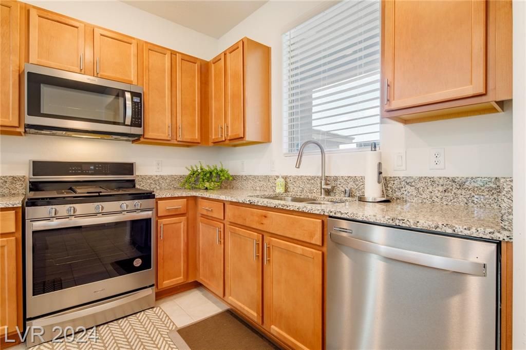 NORTH RANCH 55+ DEL WEBB COMMUNITY -- Resort style amenities. Absolutely gorgeous clubhouse which houses a state of the art gym, dance/yoga room, two outdoor pools with gathering areas, beautiful meeting/event room, billiards, pickleball/tennis courts, two separate pet parks for large/small dogs! Conveniently located to shopping, restaurants, the Veterans Hospital Spacious 2 bedrooms, 2 bathrooms single story. Kitchen features granite counter tops and island, stainless steel appliances and built in microwave. Over sized lot fully landscaped and ready to enjoy.
