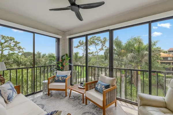 Gorgeous, updated, turnkey furnished, move-in ready condo with tropical views of wooded golf course, lake, fountains and sunsets. Sunny, bright, south facing 'penthouse' level at Interlachen Building 3. New finishes include luxury vinyl wide plank flooring throughout living areas and bedrooms, new stainless appliances, new baseboards, crown molding, window shades and fresh paint in neutral colors, a reconfigured office 'niche', plus a new tankless hot water heater. This top floor condo has 9 ft ceilings, and the screened lanai with glass sliders offers flexible indoor/outdoor living. You will love spending time here enjoying the sparkling lake views, watching the wildlife and the sunsets. Interlachen is a low density neighborhood nestled close to the Club Pelican Bay golf course, and offers spacious community landscaped areas, lakes and water features, plus a sparkling circular communal pool surrounded by a moat. Perfectly located just across the Boulevard from the tram/path to Pelican Bay's two private beach clubs with beachfront bars and dining, 3-miles of white sandy beaches, beach services, sailing, kayaking, 18 har-tru tennis courts, a full-service gym, a Community Center with activities to appeal to all tastes, and Pickle-ball coming soon!