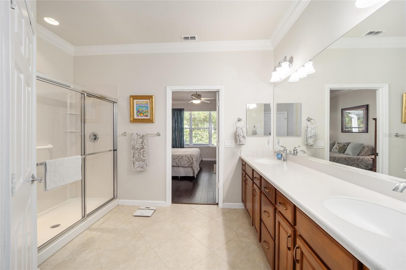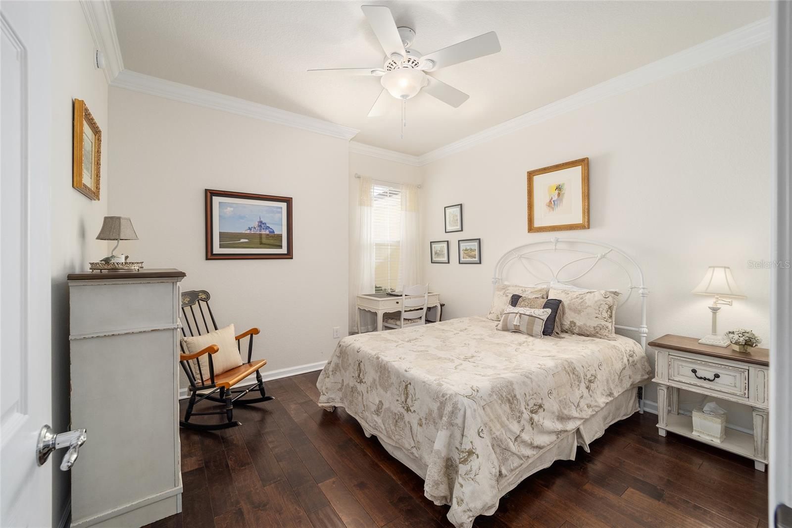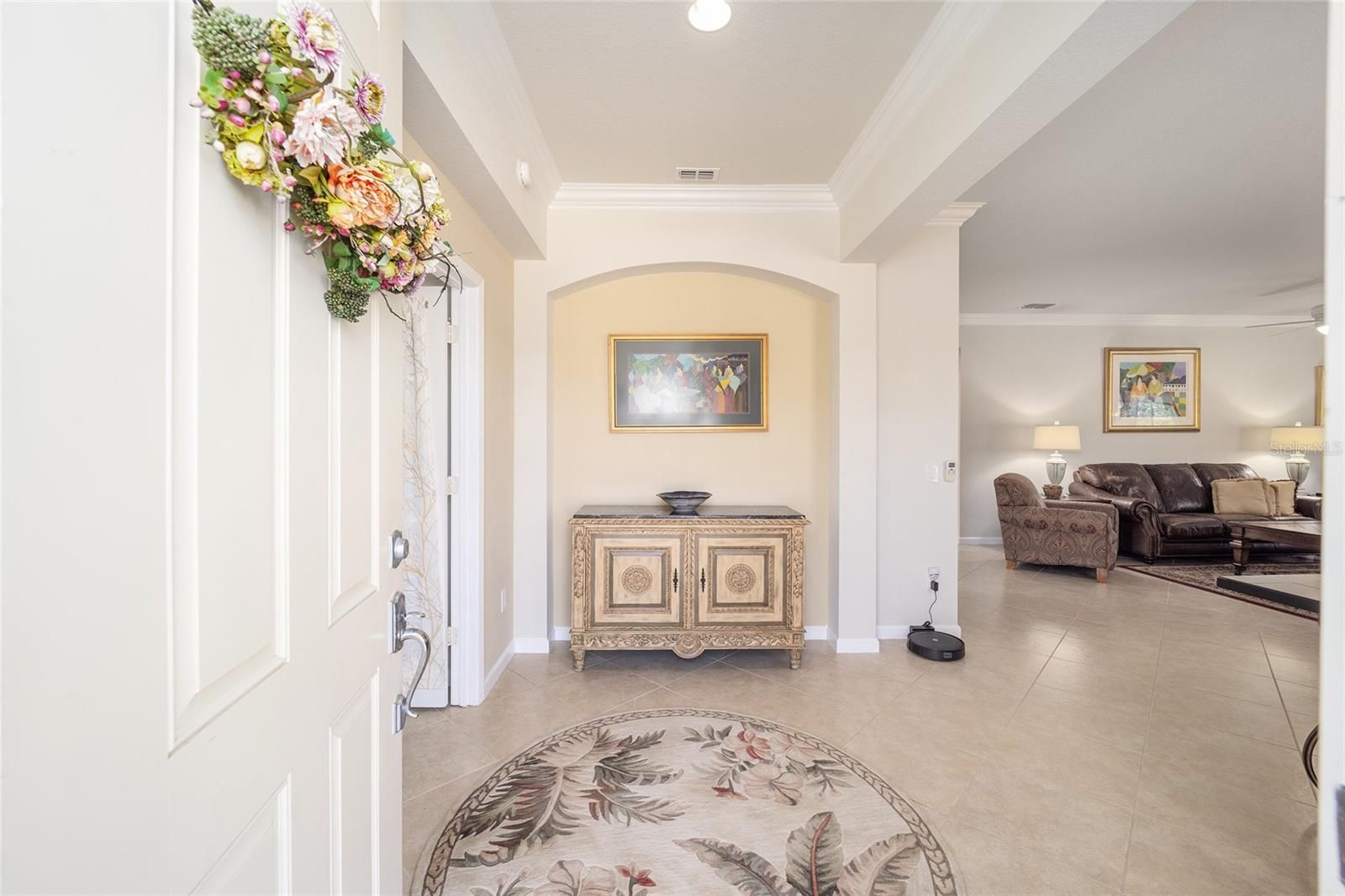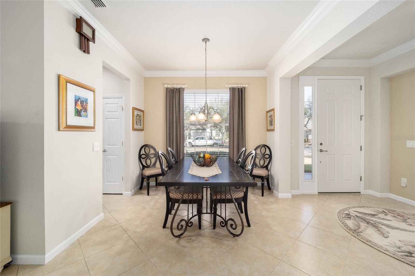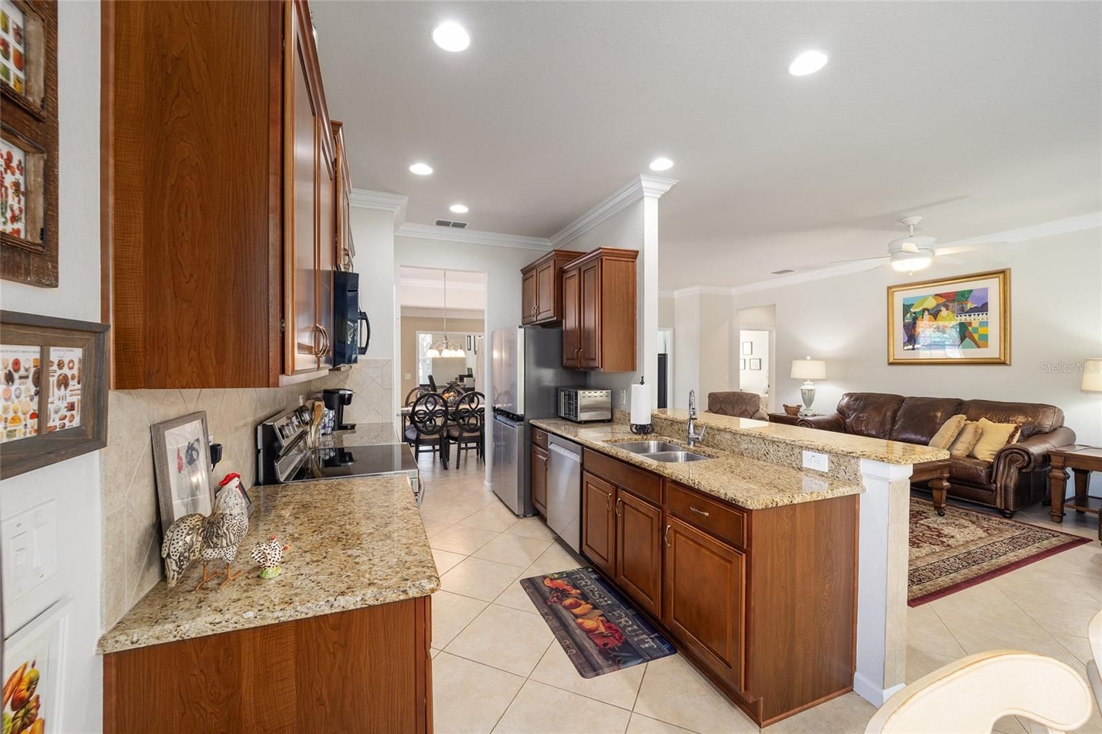 Welcome to your dream retirement oasis nestled in the tranquil and sought-after community of Stone Creek by Del Webb. Designed for comfort and convenience, this Alexander villa offers an array of features that make it exceptionally cozy and stress-free. It all starts with its impeccable corner lot location, adorned with maintenance-free mature landscaping, ensuring effortless beauty all year round. Step inside to discover a living space where elegance meets practicality. Immaculately maintained, the home boasts tile floors laid diagonally, exuding sophistication, while crown moldings and custom paint infuse warmth and character throughout. A key highlight is the thoughtfully designed four-season sunroom, a haven for relaxation featuring dual panel windows with custom shades, tiled floors, and exquisite moldings that flood the room with natural light, perfect for enjoying serene mornings or afternoon reads. The heart of this home, the kitchen, is a culinary delight. Outfitted with raised panel maple cabinets, granite countertops, and a stylish tiled backsplash, it promises both functionality and style. The kitchen is equipped stainless steel appliances, ensuring meal preparation is both efficient and enjoyable. Transitioning to the bedrooms, each space offers laminate flooring, completely carpet-free for ease of maintenance and a modern touch. You will appreciate the outdoor retreat this property offers. The rear yard beckons with a beautifully paver patio under a charming pergola, surrounded by privacy landscaping for those cherished outdoor gatherings. Enjoy the Florida weather, whether sipping your morning coffee or hosting evening barbecues, with seamless indoor-outdoor living that prioritizes your peace and relaxation. This property isn’t just a house; it’s an inviting home designed to enrich your retirement lifestyle. Experience true Florida living and create lasting memories in this great community. Schedule a viewing today and immerse yourself in the comfort and convenience that this exceptional property offers. Reach out to your real estate agent to take the first step towards making this property your new home sweet home.