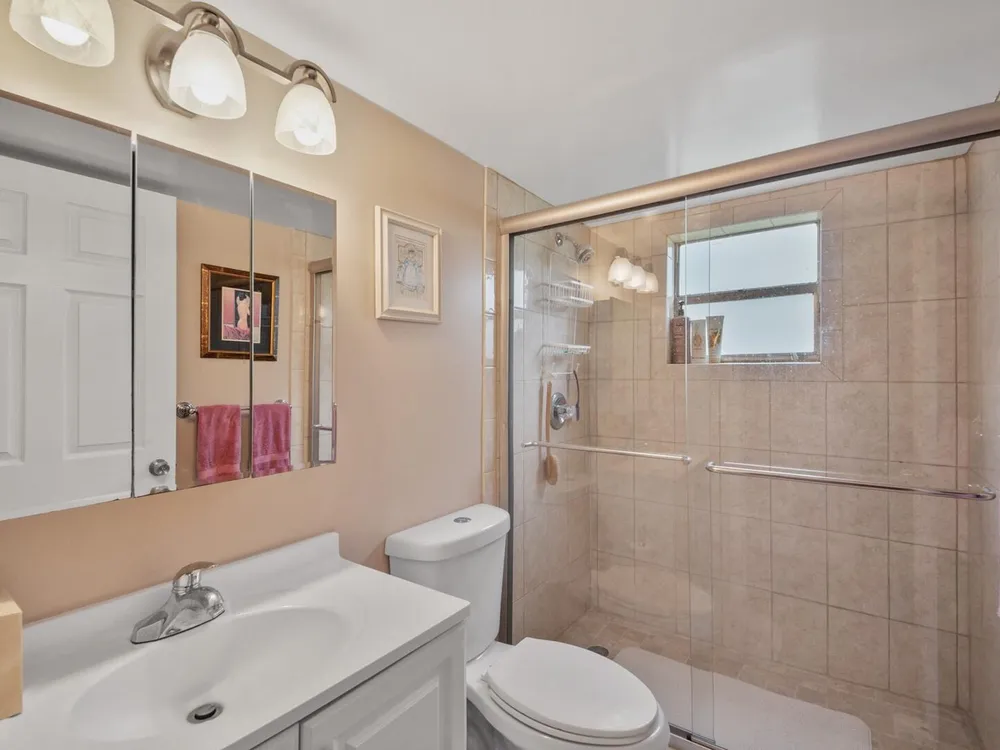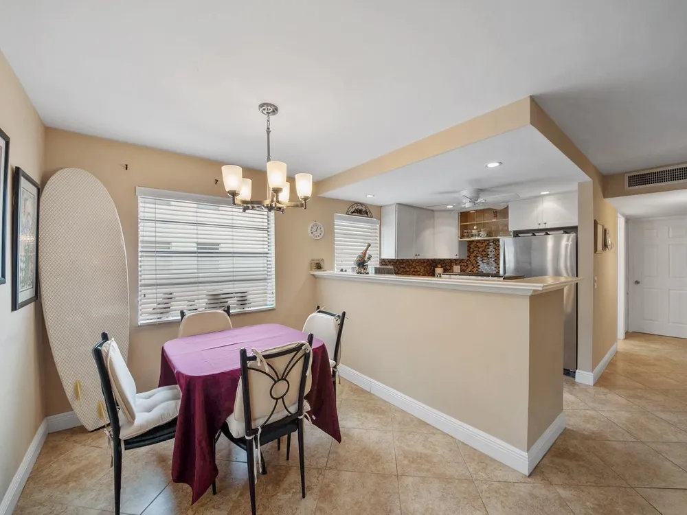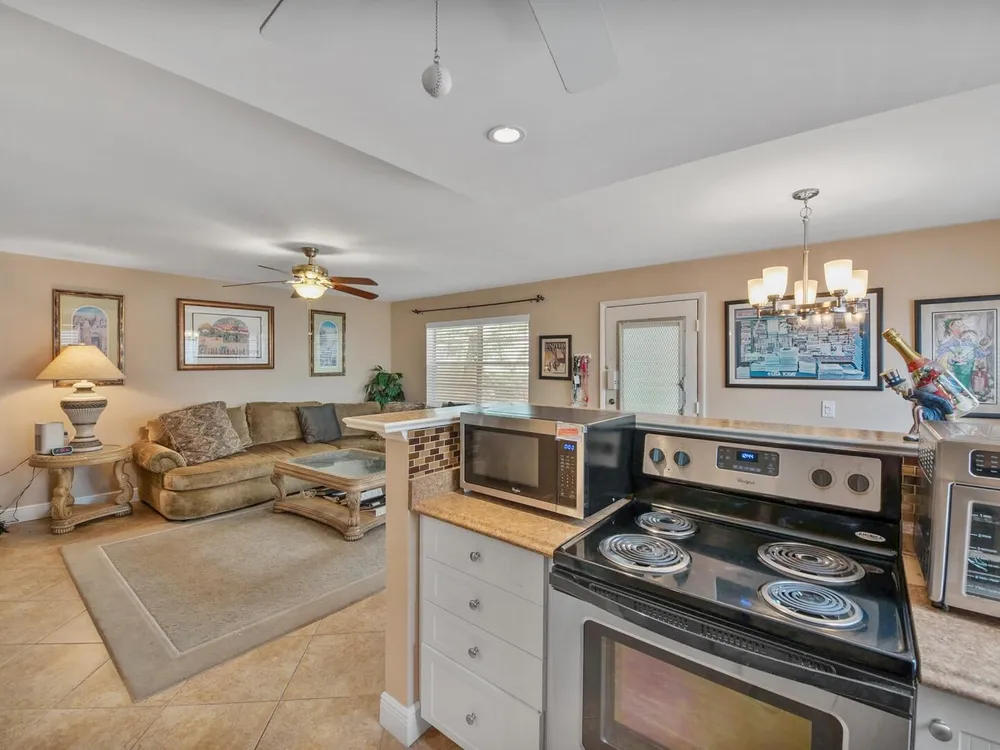 Welcome to this light-filled, move-in-ready 2-bedroom, 2-bath condo located on the desirable first floor in the vibrant Kings Point community. This home features an open floor plan with neutral flooring throughout, no carpeting, creating a modern, cohesive look that's both stylish and low maintenance. The updated kitchen is a standout, showcasing classic white cabinetry, a chic tiled backsplash, sleek stainless-steel appliances, and ample counter space, perfect for entertaining or everyday living. The spacious primary suite offers a private retreat with a walk-in closet, ensuite bath with a walk-in shower, and French doors that open directly onto the enclosed, air-conditioned patio. The second bedroom also has access to the patio, making it ideal for guests or a home office.