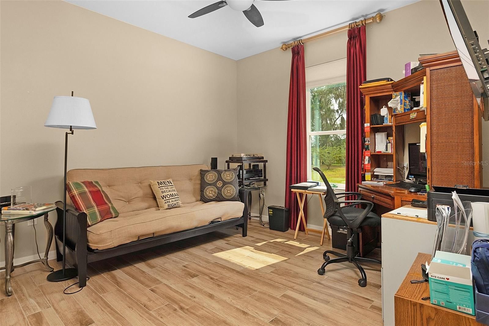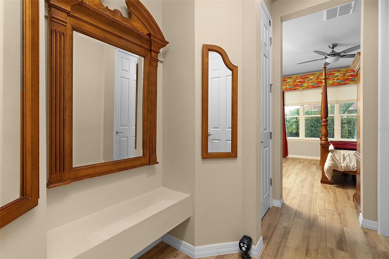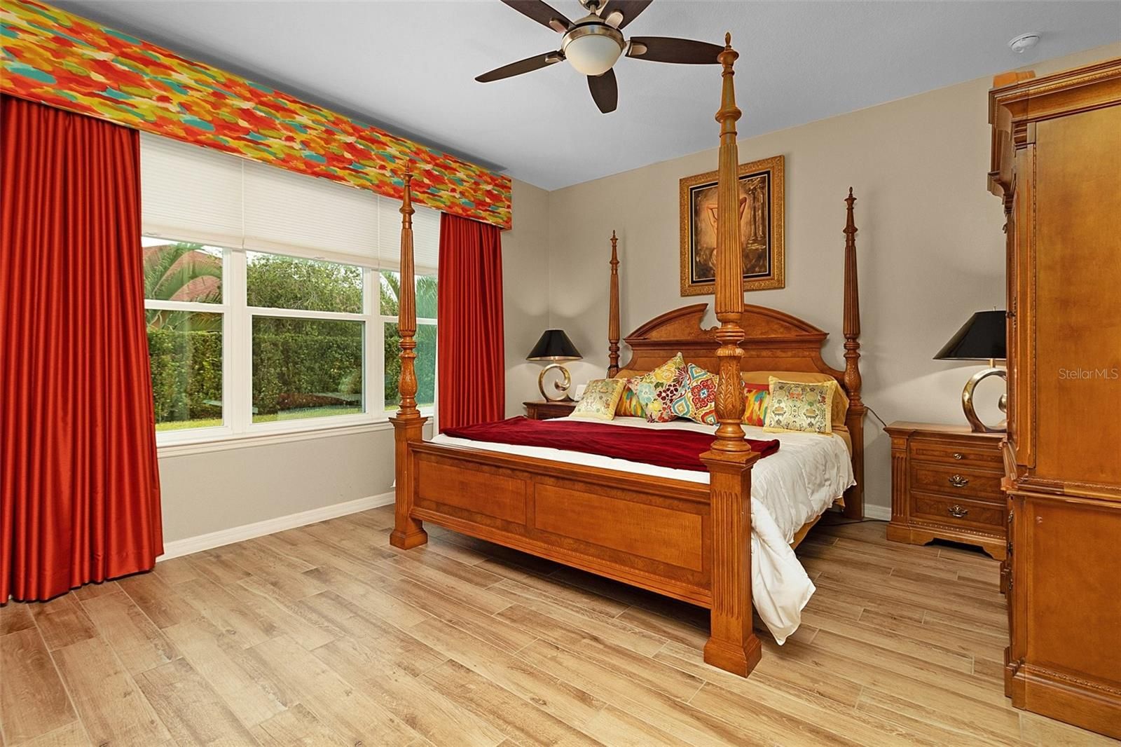 - Ceiling Fan(s), Main Level Primary, Solid-Wood Cabinets, Split Bedrooms, Stone Counters, Thermostat, Window Treatments