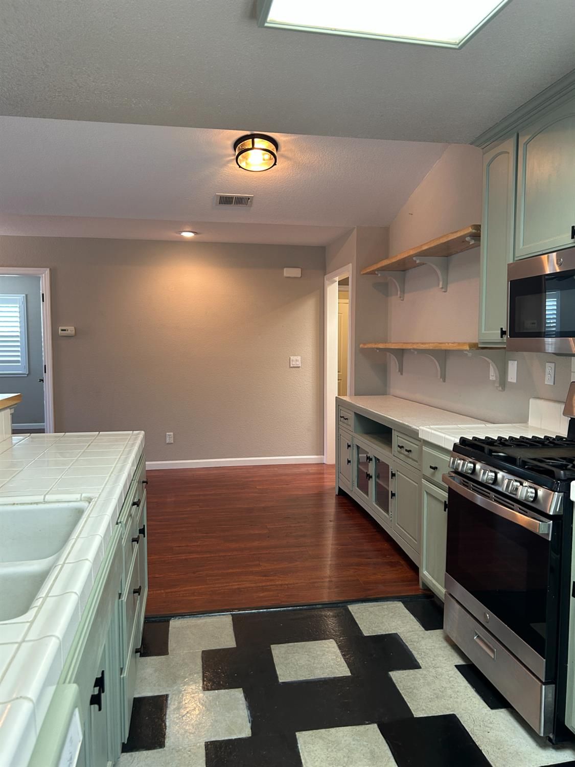 - Free-Standing Gas Range, Dishwasher, Disposal, Microwave, Plumbed For Ice Maker