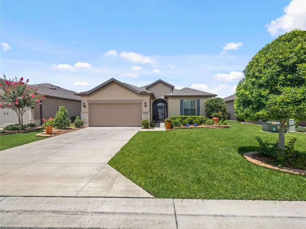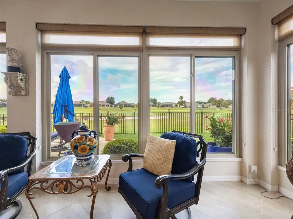 Welcome to your dream home on the green! Nestled alongside a beautifully manicured golf course, this stunning extended Summerwood model with 2-bedrooms, 2-bathrooms and a versatile flex room offers a perfect blend of luxury, comfort, and lifestyle. Step inside to discover an open-concept floor plan with plantation shutters, elegant quartz countertops, and a gourmet kitchen that’s a chef’s delight—complete with high-end appliances, ample cabinetry, and a spacious island ideal for entertaining. The bright and airy enclosed sunroom provides a serene space to enjoy your morning coffee or unwind with a book, all while taking in panoramic views of the fairway. Outside, a paver back patio invites alfresco dining or evening cocktails against a backdrop of lush greenery and golf course vistas. The flex room offers endless possibilities—home office, hobby space, or guest suite—you decide! Both bedrooms are generously sized, and the bathrooms feature stylish finishes with thoughtful design. Don’t miss this rare opportunity to live in one of the community’s most coveted golf course homes. Schedule your private tour today!