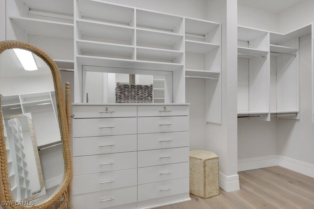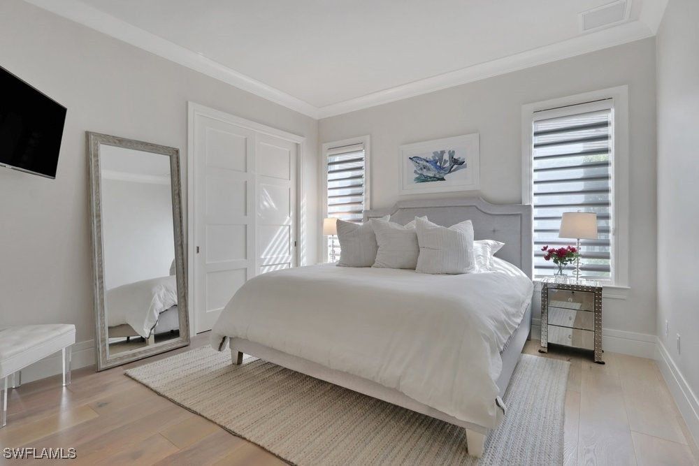 Experience elevated coastal living in this stunning Pelican Bay estate situated on a quiet cul-de-sac lot, featuring a three - car garage, where timeless elegance meets modern sophistication. This impeccably designed home showcases a culinary masterpiece kitchen with dual oversized quartzite islands that define the heart of the home, a built-in drawer microwave, butler’s pantry, and top-of-the-line Wolf / Sub Zero appliances, stove complemented by a pop-up downdraft ventilation system. The gourmet space also features double convection and steam ovens, wine bottle refrigerator, and two sinks with one that has a premium water filtration system—crafted for both the passionate chef and the gracious entertainer. Warmth and ambiance abound with two gas fireplaces located in the elegant living room and cozy den, each creating the perfect setting for intimate gatherings or relaxed evenings. Beautiful Shoreline Oak wood throughout the whole house, A Generac whole-house propane generator, discreetly installed underground, ensures peace of mind and uninterrupted comfort. The residence underwent a complete interior remodel in 2019, including a new roof, while maintaining its original windows, pool, jacuzzi, and lanai, preserving a touch of classic Naples charm. Every detail of this home exudes sophistication—from the seamless integration of modern appliances to the thoughtful custom cabinetry. This is luxury living reimagined, nestled in the prestigious Pelican Bay community—where world-class amenities, pristine beaches, and refined Naples lifestyle converge. Residents of Pelican Bay enjoy an unmatched resort lifestyle with access to two private beachfront clubs offering oceanfront dining, beach service, and sunset lounges. The Pelican Bay Clubhouse features state-of-the-art fitness and wellness centers, world-class tennis facilities, a 27- hole championship golf course ( membership optional) and social events designed for an active, sophisticated lifestyle. Miles of scenic walking and biking trails, along with kayaking through the mangroves, and is ideally located near Waterside Shops & Mercato, Artis-Naples, complete this exclusive coastal experience — all within one of Naples’ most prestigious communities. Master bedroom is virtually staged.