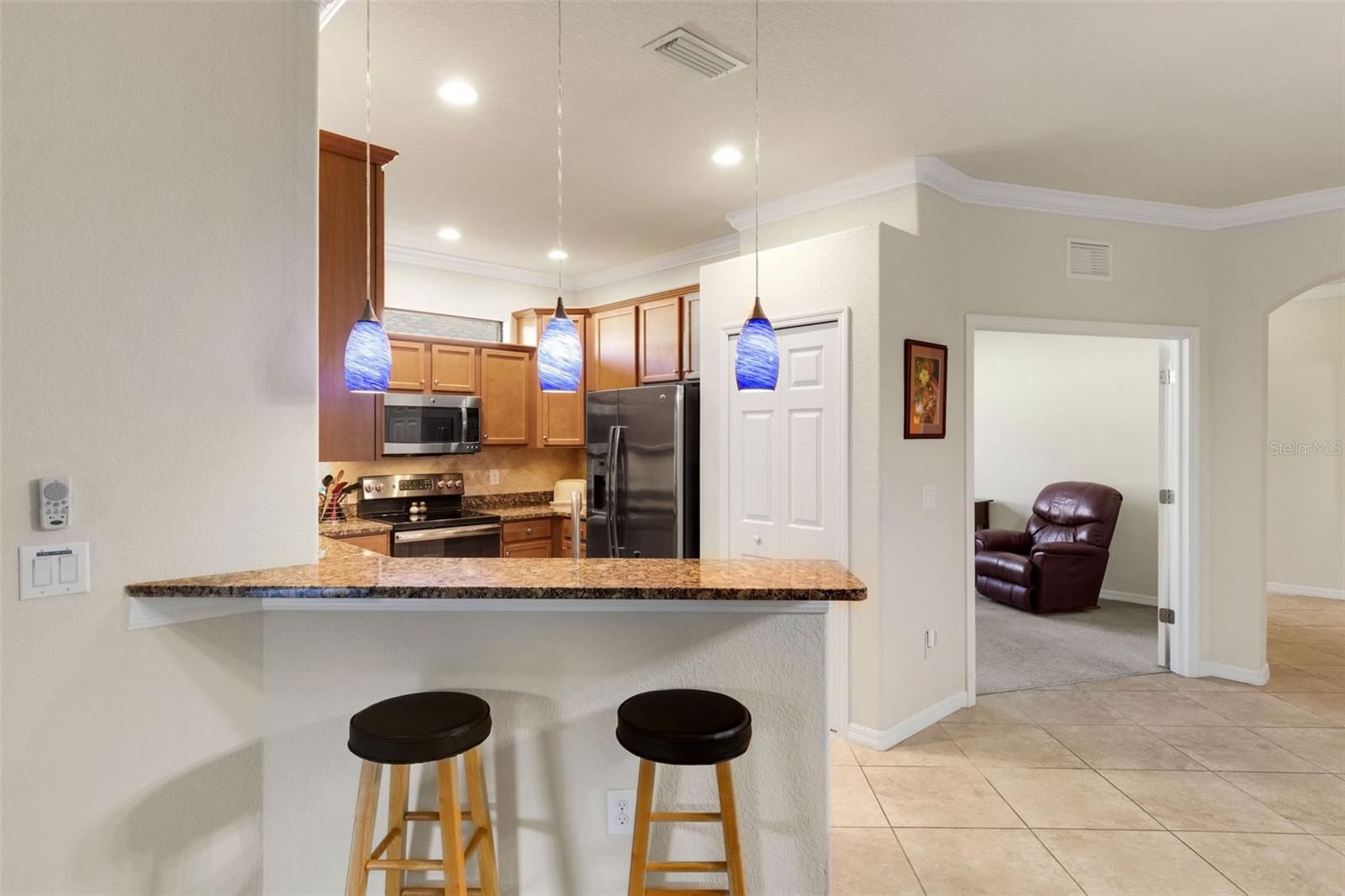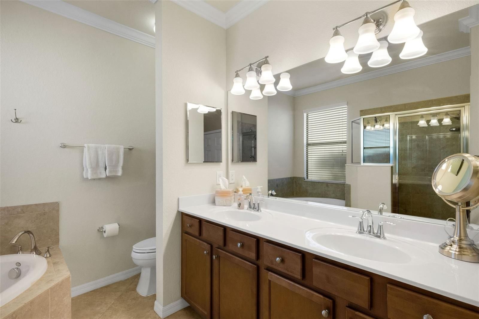 - Ceiling Fan(s), Crown Molding, High Ceilings, Living/Dining Room, Main Level Primary, Split Bedrooms, Window Treatments