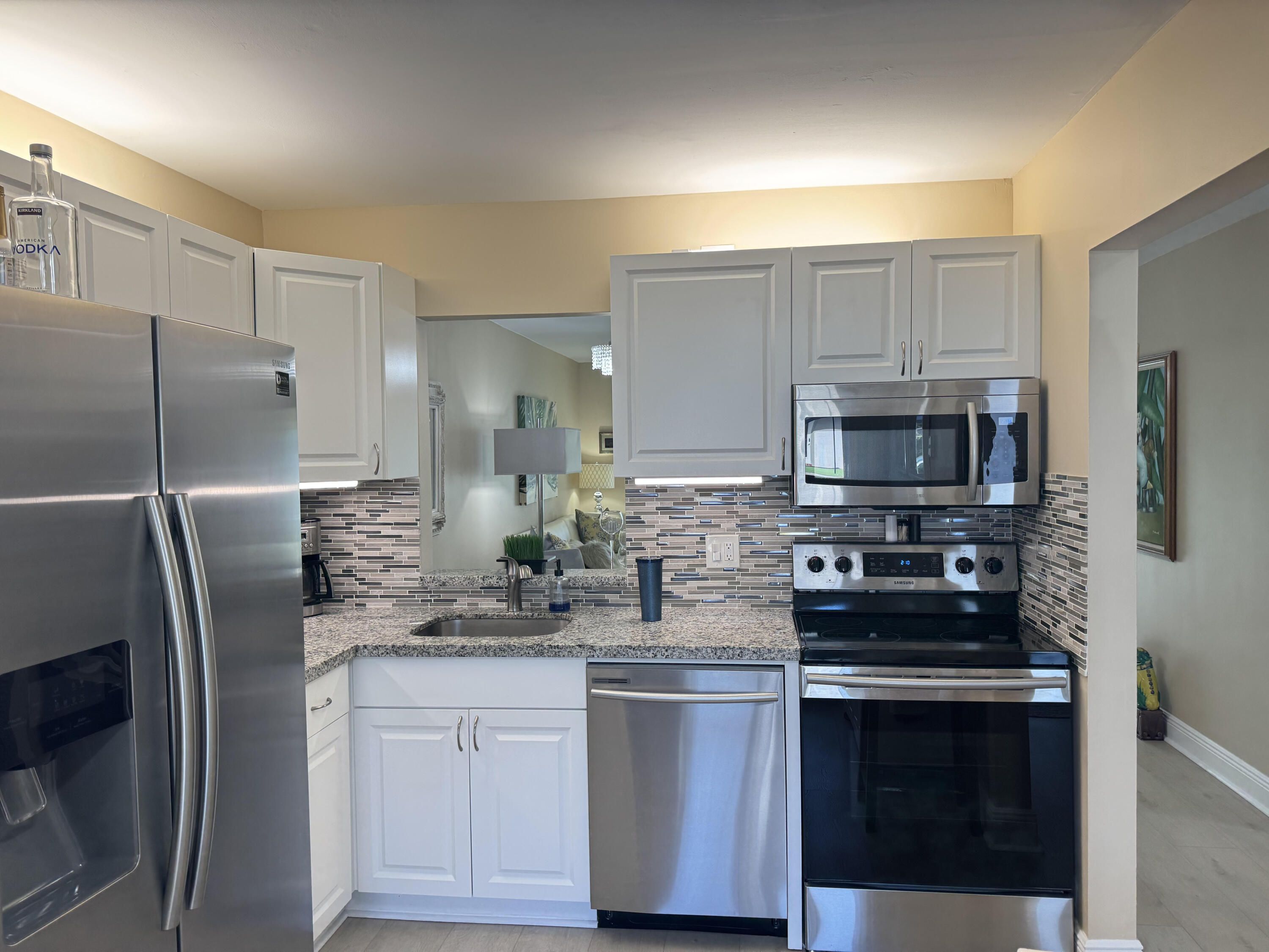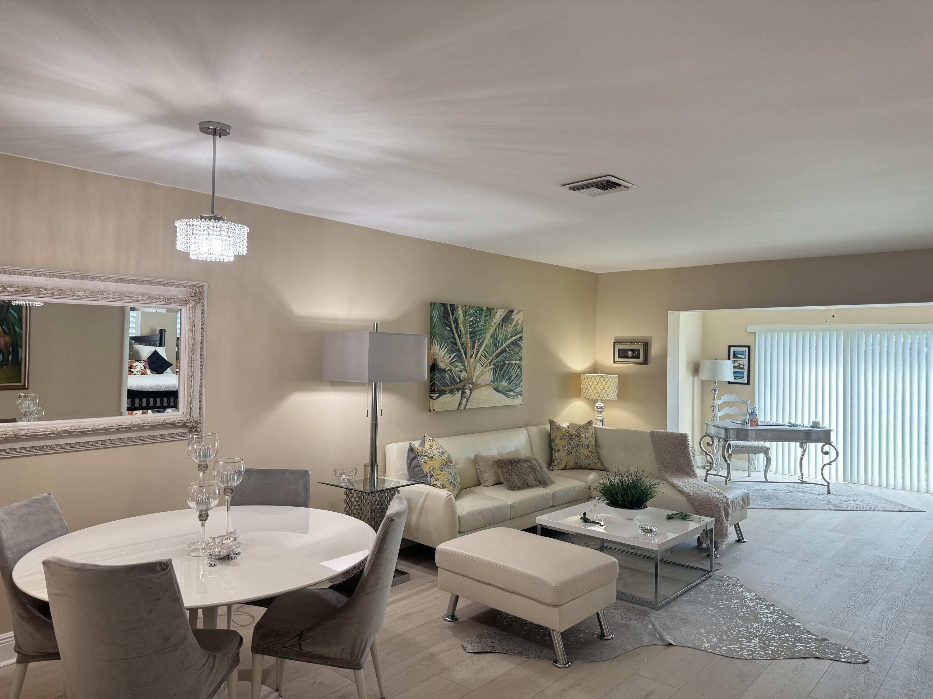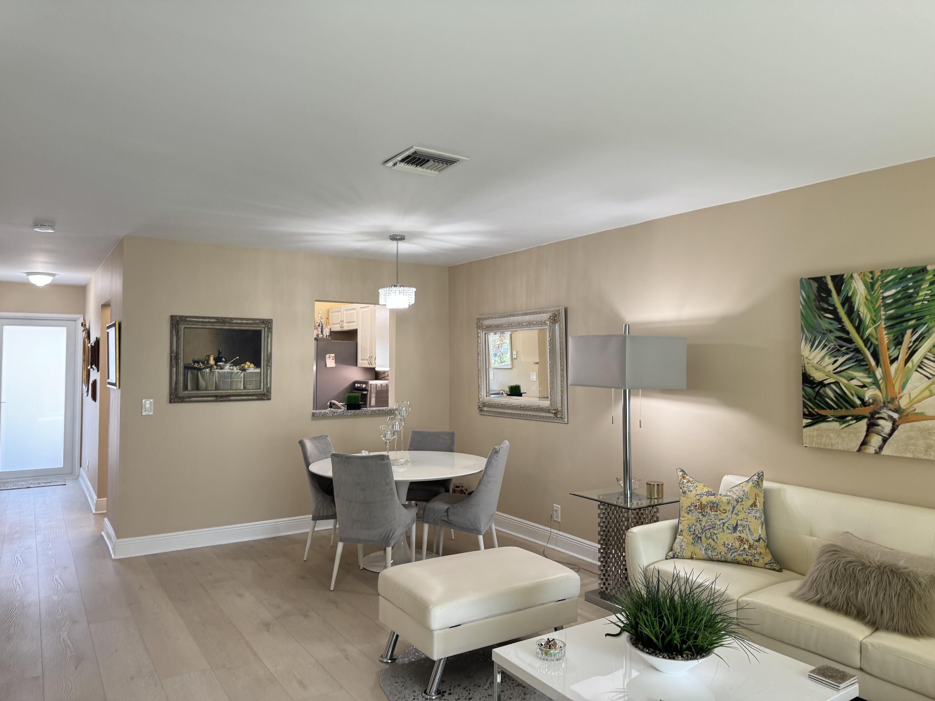 Renovated 2/2 + Den, Freshly paved 2 car driveway with carport for covered parking. Large outdoor storage rm.New Hurricane Impact windows & doors installed Throughout. Plantation shutters on windows. New up to code curcuit breaker box,New Vinyl waterproof flooring with new baseboards.Newer kitchen with stainless steel appliances. Patio table & umbrella incl. HURRY Purchase by Dec. 31st and be eligible for homestead tax exemption. Clubhouse,tennis, pickleball, fitness center, pool, jacuzzi, putting green,billiards, bingo, theater ect. $290/m includes cable/HBO, internet, lawn care, pest control. Walk to shopping, dining,house of worship, movies. Close to both major hwys Turnpike & 95, beach approx 6 miles.1 person to be at least 55 & Kids 15 yrs and older permitted.1 person must have a 650