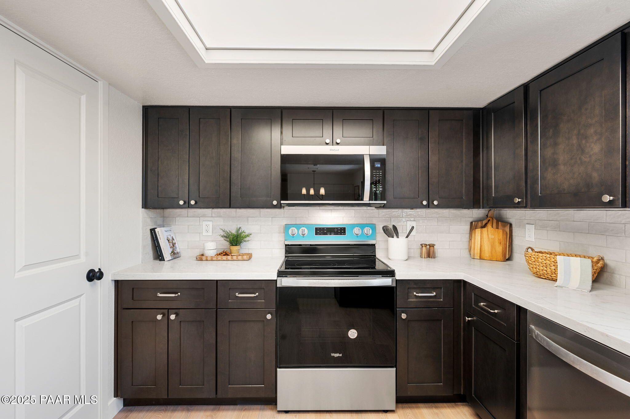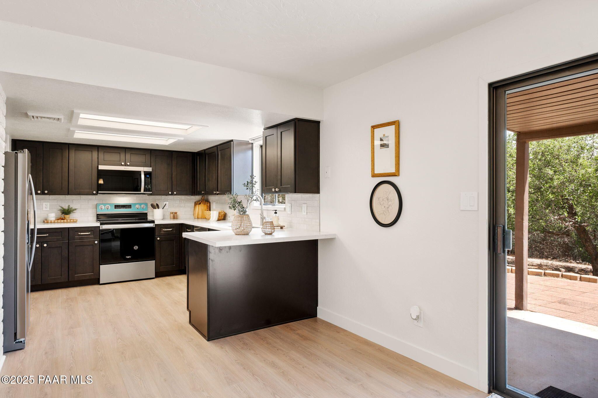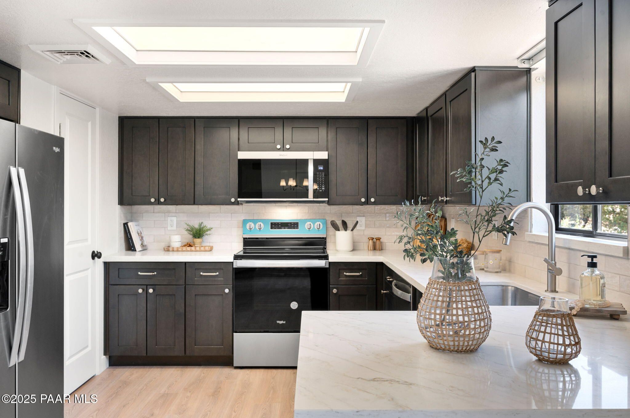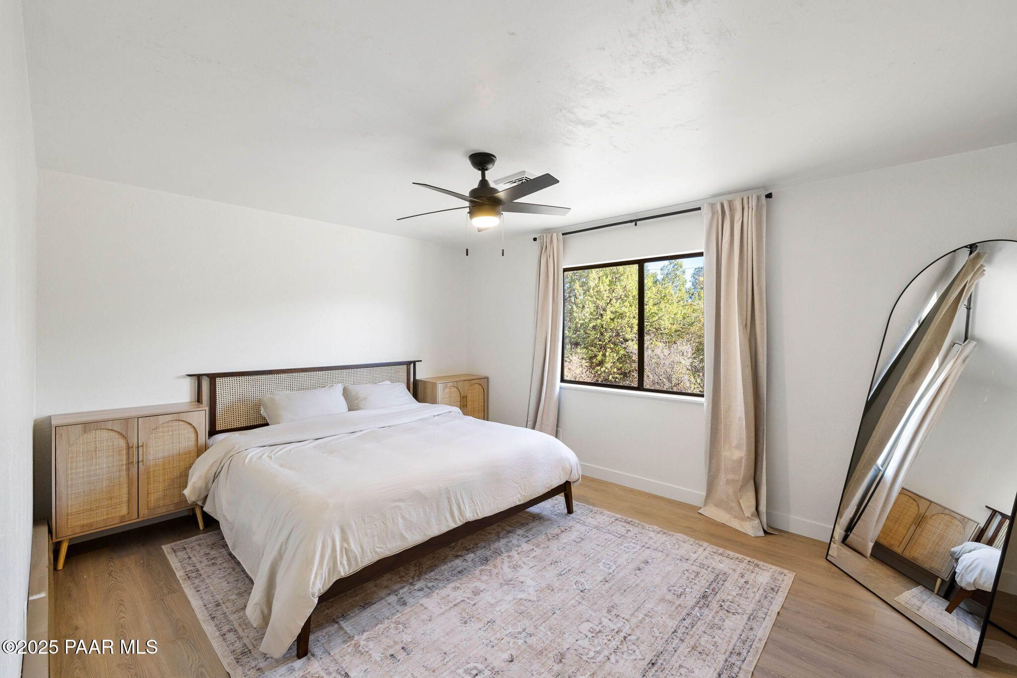 Welcome to your newly remodeled gem in Yavapai Hills, nestled at the end of a quiet cul-de-sac in one of Prescott's most peaceful pockets. This move-in-ready retreat offers not just a house--but a sense of calm and comfort from the moment you arrive.Step inside to find brand new wood-look vinyl flooring, elegant 5'' baseboards, fresh interior paint, and stylish updated fixtures throughout. The thoughtfully renovated kitchen features rich grey slate cabinets, quartz countertops, sleek stainless steel appliances, and modern hardware--blending function with timeless design.All new bedroom and closet doors, new outlets throughout, and a brand new water heater (under warranty) add confidence and ease. But what truly sets this home apart is the tranquilitythe soft rustle of trees, the distant mountain views, and the quiet rhythm of a neighborhood where time slows down. Whether you're enjoying coffee on the patio or unwinding after a long day, this is a place that just feels like home.The seller will replace the floor board heating and professionally repaint the interior to match with a full price offer! A rare blend of serenity, style, and locationdon't miss your chance to experience it for yourself.