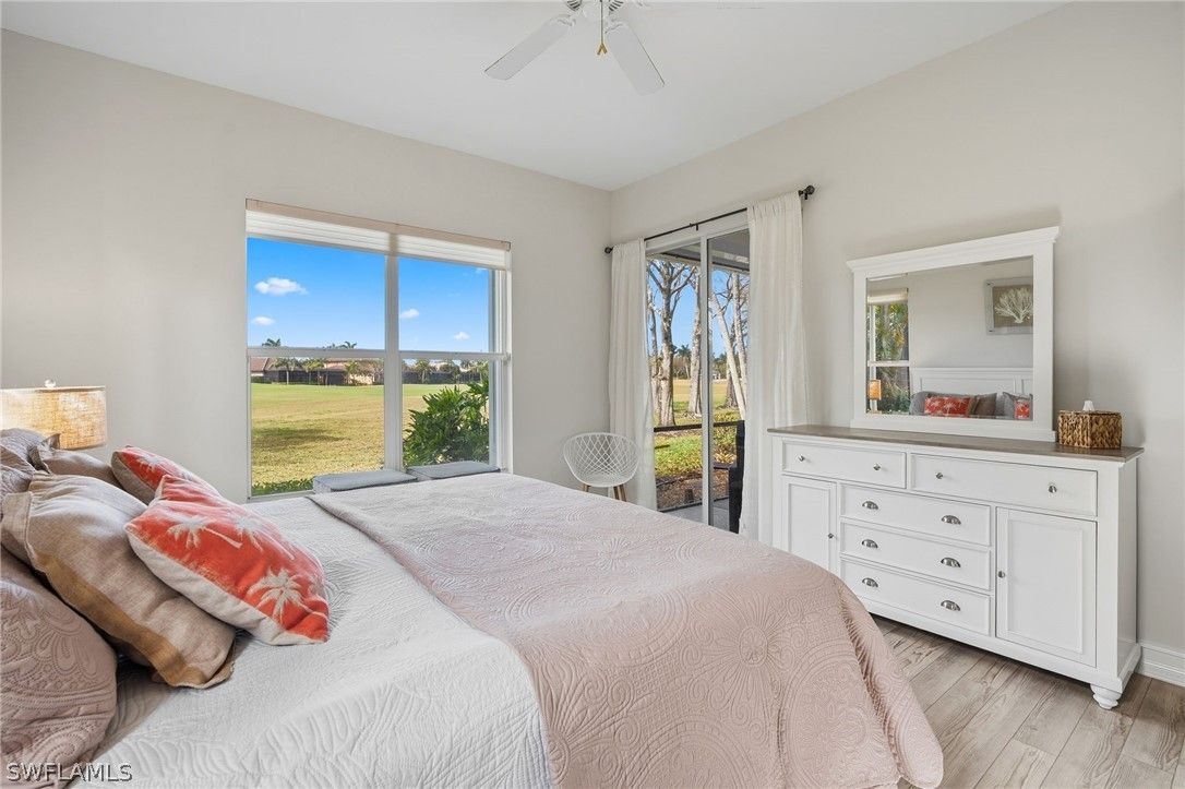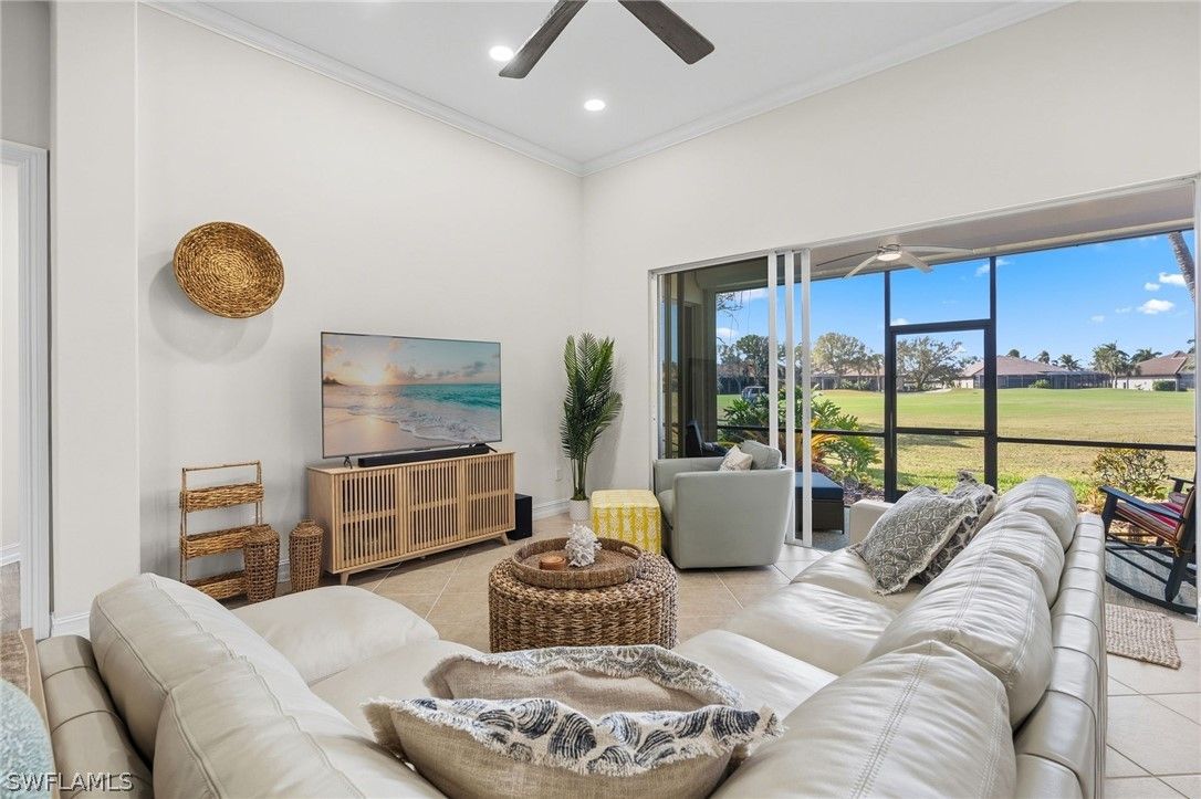 VIEWS, VIEWS, VIEWS!!!! Enjoy breathtaking, forever golf course views from this immaculate 3-bedroom, 3-bath residence in the highly desirable and pet friendly gated community of Masters Reserve at Lely Resort. Bright, and airy this open-concept floor plan showcases expansive fairway views and seamless indoor-outdoor living. The eat-in kitchen features Corian countertops, new appliances, walk-in pantry, breakfast bar, and a separate dining area ideal for both casual mornings and elegant entertaining. The spacious great room is highlighted by soaring 16-foot ceilings and opens to a private outdoor retreat complete with a sparkling saltwater pool, spa, and generous patio for western views of spectacular sunsets over the Mustang Golf Course designed by Lee Trevino.. The primary suite offers a peaceful sanctuary with dual walk-in closets and generous en-suite bath featuring a soaking tub, walk in shower and dual vanities. A separate private casita with French doors opening to the pool area includes a kitchenette and full bath, providing exceptional flexibility as a guest suite, home office, media room, or creative space. Additional upgrades in this Stock Development built home includes a new roof (2024), new A/C (2024), freshly repainted interior, newly painted pool cage, epoxy garage floor and new washer and dryer. Located in a no-flood zone for added peace of mind and hurricane shutters throughout. Enjoy immediate membership at award-winning Players Club & Spa that features resort-style pools, fine dining, a tiki bar and grill, state-of-the-art fitness facilities, a full-service spa, tennis and pickleball courts, bocce, and a vibrant calendar of social events designed for an active Southwest Florida lifestyle. Ideally located near Naples and Marco Island and just minutes from pristine Gulf beaches, world-class shopping, and renowned dining destinations. With low HOA fees, this property delivers the best of luxury living, functionality, and location in Southwest Florida. THIS IS A MUST SEE!!!