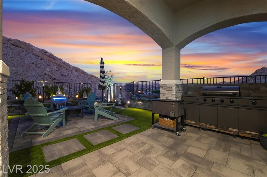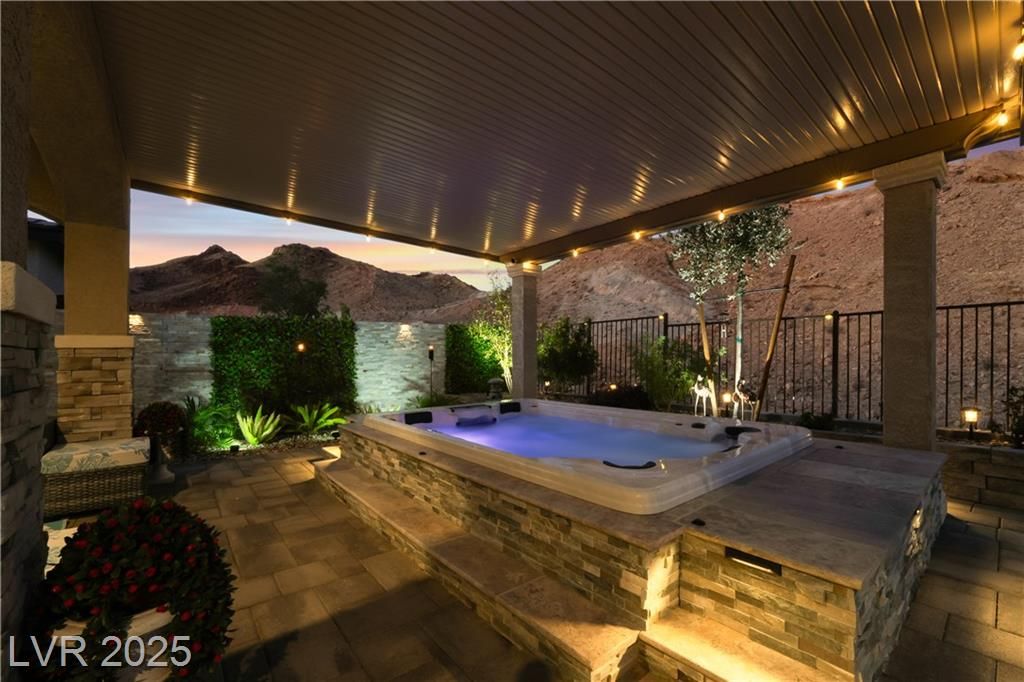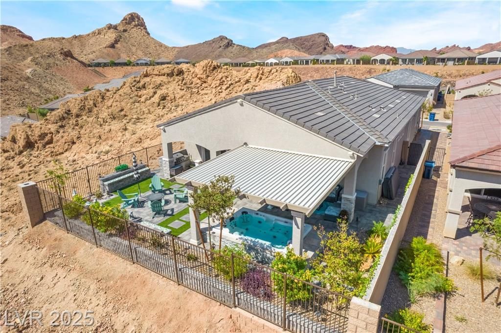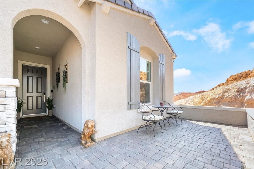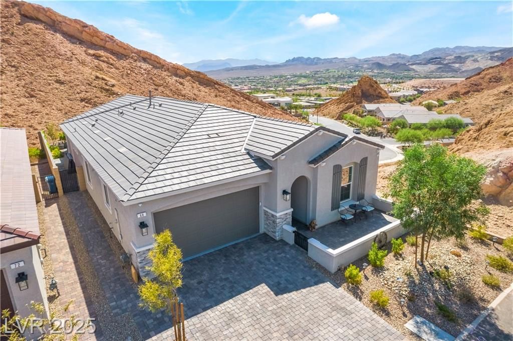 A HAVEN SURROUNDED BY DESERT MOUNTAINS! 1YR NEW, THIS 3BR/3BA HOME HAS SPARED NO EXPENSE IN UPGRADES. PERCHED ON TOP OF A MOUNTAIN, THIS SECLUDED & PREMIUM LOT SITS AT THE END OF THE STREET W/NO HOMES BEHIND OR TO THE RIGHT. LARGE FRONT COURTYARD. ENTER INTO COMPLETE LUXURY LIVING; 10FT CEILINGS W/WOOD PANELING IN ENTRY & PRIMARY. LIGHT TILE PLANK FLOORING THROUGHOUT, STONE VENEER ALONG GREAT ROOM WALL. 2ND & 3RD BEDROOMS SIT PRIVATELY IN FRONT W/FULL GUEST BATH BETWEEN. LARGE OFFICE SITS OFF THE POWDER ROOM & GARAGE. KITCHEN W/TOP OF THE LINE SOFT CLOSE CABINETRY, PULLOUTS & HARDWARE. GE CAFE APPLIANCES, QUARTZ COUNTERS & BRONZE ACCENTS WHICH CARRY THROUGHOUT HOME ON ALL FIXTURES. OVER 100K PUT INTO THE ZEN BACKYARD OASIS! IN GROUND SPA, RECIRCULATING FOUNTAIN, CUSTOM SEATING, PANORAMIC VIEWS & MORE! PURIGAIN WATER FILTRATION & TANKLESS H2O. TAKE ADVANTAGE OF LAKE LAS VEGAS' LIFESTYLE W/RESORTS, RESTAURANTS, SHOPPING, WATER SPORTS, GOLF, SPORTS CLUB MEMBERSHIP, & MORE!