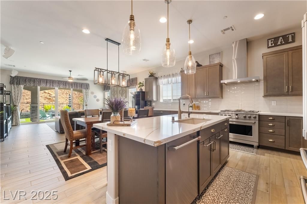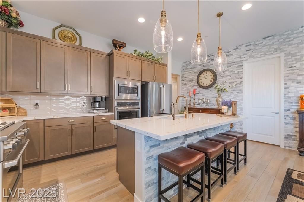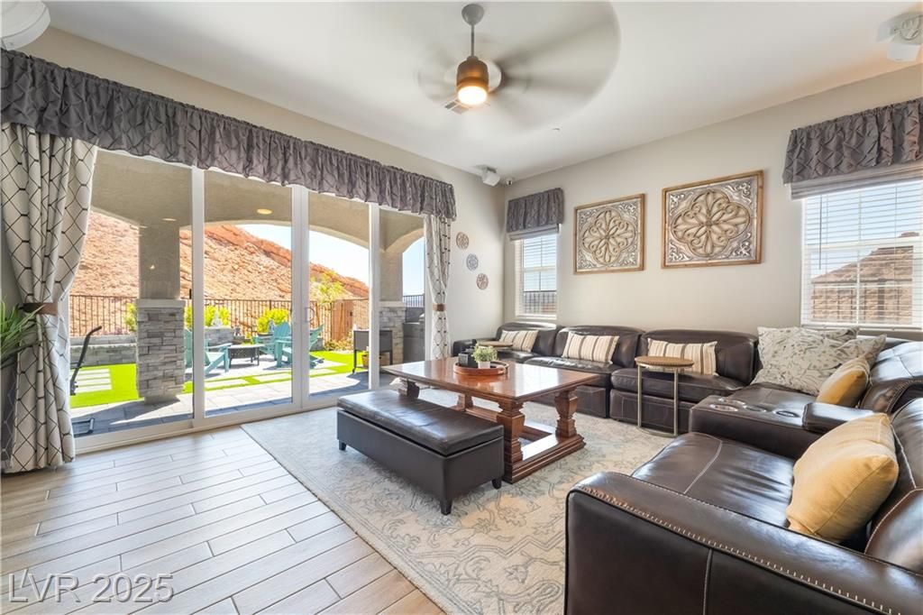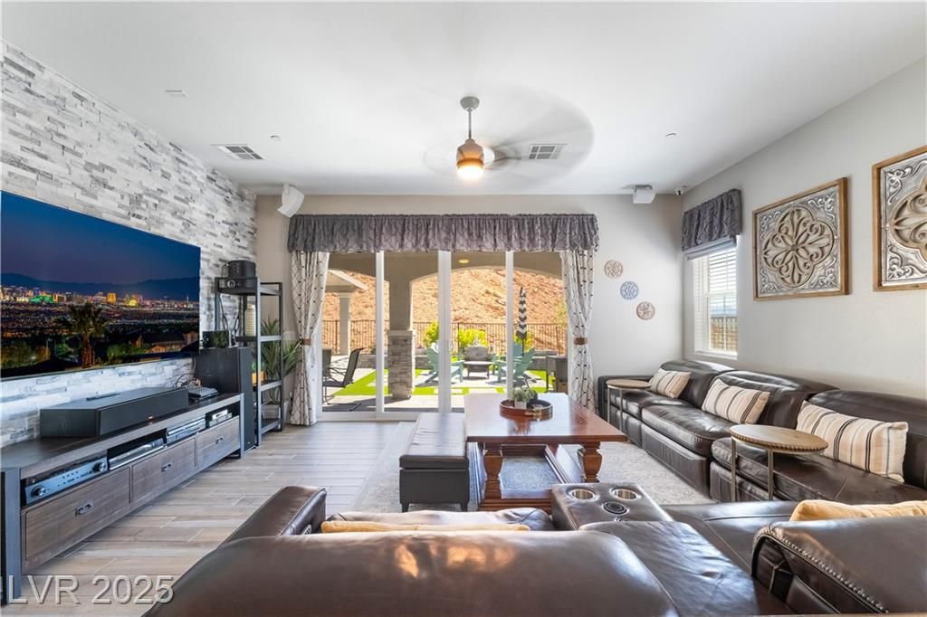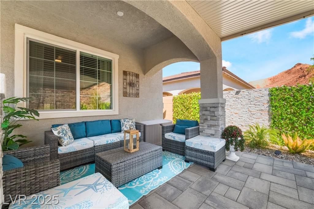 A HAVEN SURROUNDED BY DESERT MOUNTAINS! 1YR NEW, THIS 3BR/3BA HOME HAS SPARED NO EXPENSE IN UPGRADES. PERCHED ON TOP OF A MOUNTAIN, THIS SECLUDED & PREMIUM LOT SITS AT THE END OF THE STREET W/NO HOMES BEHIND OR TO THE RIGHT. LARGE FRONT COURTYARD. ENTER INTO COMPLETE LUXURY LIVING; 10FT CEILINGS W/WOOD PANELING IN ENTRY & PRIMARY. LIGHT TILE PLANK FLOORING THROUGHOUT, STONE VENEER ALONG GREAT ROOM WALL. 2ND & 3RD BEDROOMS SIT PRIVATELY IN FRONT W/FULL GUEST BATH BETWEEN. LARGE OFFICE SITS OFF THE POWDER ROOM & GARAGE. KITCHEN W/TOP OF THE LINE SOFT CLOSE CABINETRY, PULLOUTS & HARDWARE. GE CAFE APPLIANCES, QUARTZ COUNTERS & BRONZE ACCENTS WHICH CARRY THROUGHOUT HOME ON ALL FIXTURES. OVER 100K PUT INTO THE ZEN BACKYARD OASIS! IN GROUND SPA, RECIRCULATING FOUNTAIN, CUSTOM SEATING, PANORAMIC VIEWS & MORE! PURIGAIN WATER FILTRATION & TANKLESS H2O. TAKE ADVANTAGE OF LAKE LAS VEGAS' LIFESTYLE W/RESORTS, RESTAURANTS, SHOPPING, WATER SPORTS, GOLF, SPORTS CLUB MEMBERSHIP, & MORE!