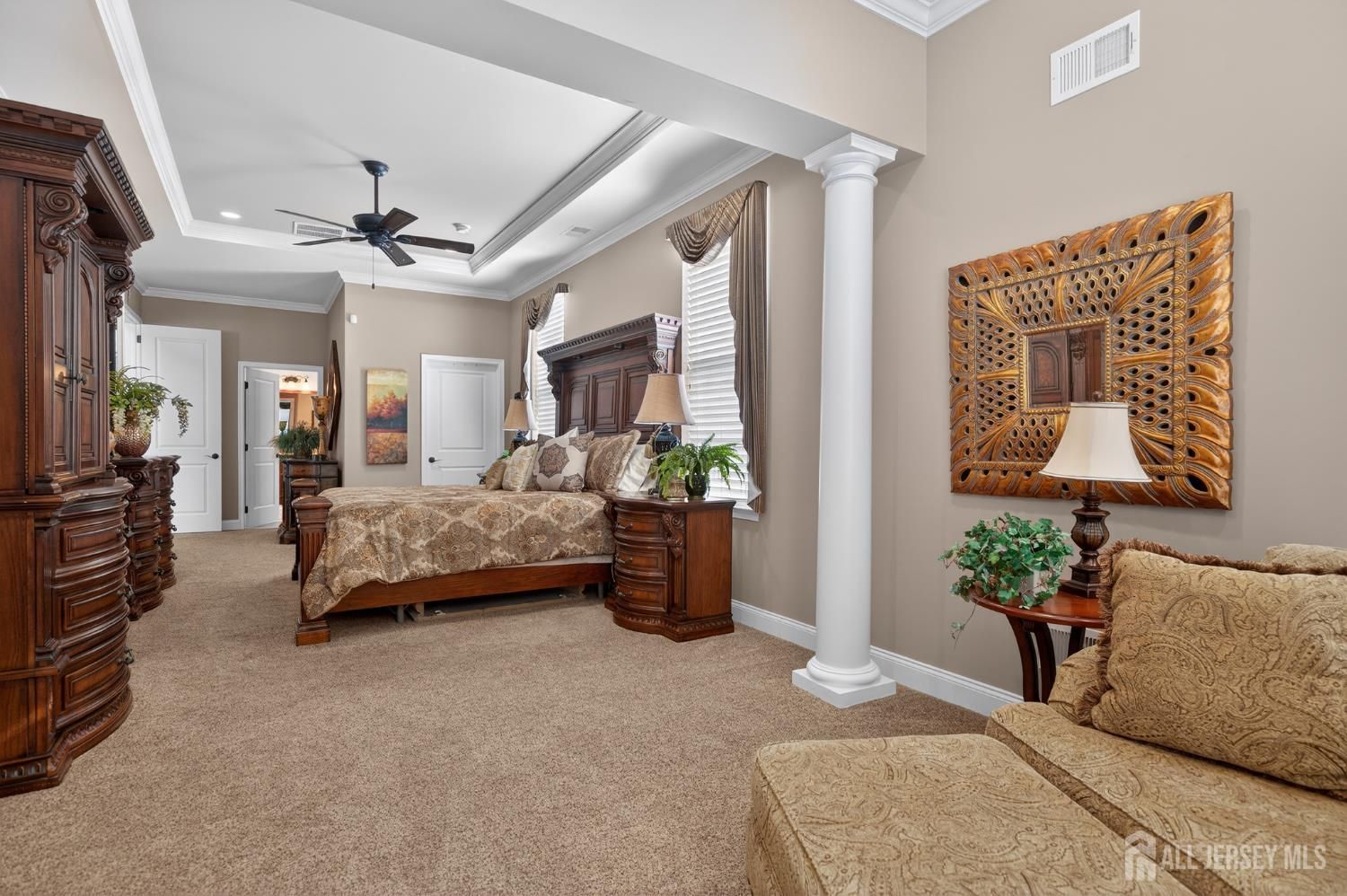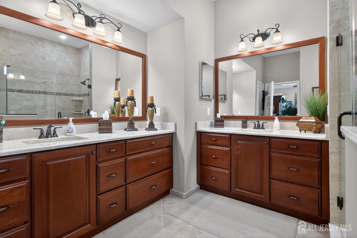 Simply STUNNING! The best of everything can be found in this remarkable expanded Walden Manor model, nestled in Princeton Manor and backing to tranquil woods. You enter into a beautiful foyer, with gorgeous engineered hardwood floors, an elegant lighted tray ceiling, and plenty of room to greet your guests! Those gorgeous floors extend throughout most of the home, with your first stop being the spacious dining room, a perfect place to gather for good times. The sun-drenched great room is a room like no other, with soaring open beam ceilings with recessed lighting, custom drapery, and expansive windows overlooking woods! The kitchen is absolutely breathtaking, where no expense has been spared! Gorgeous granite counters complement the ceiling height custom cabinets, and the classic backsplash brings everything together. The granite continues in the kitchen's two large islands. The first island offers a breakfast bar, an undermounted sink, elegant pendant lights, and plenty of room to prepare any meal. The second island features seating for eight people comfortably, and offers a large window overlooking the backyard. Stainless steel appliances include a KitchenAid six burner stove, built-in microwave oven, refrigerator, and double wall oven. This kitchen is amazing! As you continue the tour, double doors lead to the expanded main bedroom suite, with its elegant tray ceiling, sunny windows with custom blinds and window treatments, a lovely sitting area, and a large walk-in closet. The private bath is like a dream, with two large vanities with quartz counters and ample cabinet space, a luxurious oversized shower with seating, and ceramic tile flooring with radiant heating! There is another first floor bedroom with sunny windows and a large closet, with a wonderful full bath with shower nearby! As you ascend the oak stairs and iron balusters, you'll find the family room loft upstairs, with an enchanting reading nook nearby. There are two more large bedrooms upstairs, both with sunny windows and great closet space! One of the bedrooms even has a custom door leading to easy-to-access attic storage! The third full bath is across the hall, featuring a large vanity and a tub shower with ceramic tile surround. There is also a wonderful utility room found upstairs, with additional storage space, as well as scuttle access to the attic. Outside, you'll find an amazing backyard, with a large paver patio with sitting wall, a covered area with an outdoor television, a Sedona outdoor grill with stone surround, and the tranquility of backing to woods! There's a whole house generator for emergencies, and don't forget the climate controlled custom garage! Plus, you'll be able to enjoy all the wonderful amenities Princeton Manor has to offer, including the outdoor pool, exercise facilities, sauna, tennis, bocce ball, billiards, game and meeting rooms, & much more! All this & just minutes to downtown Princeton! Live the life you deserve! Showings start 2/7!