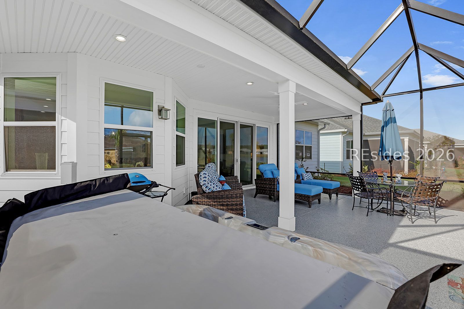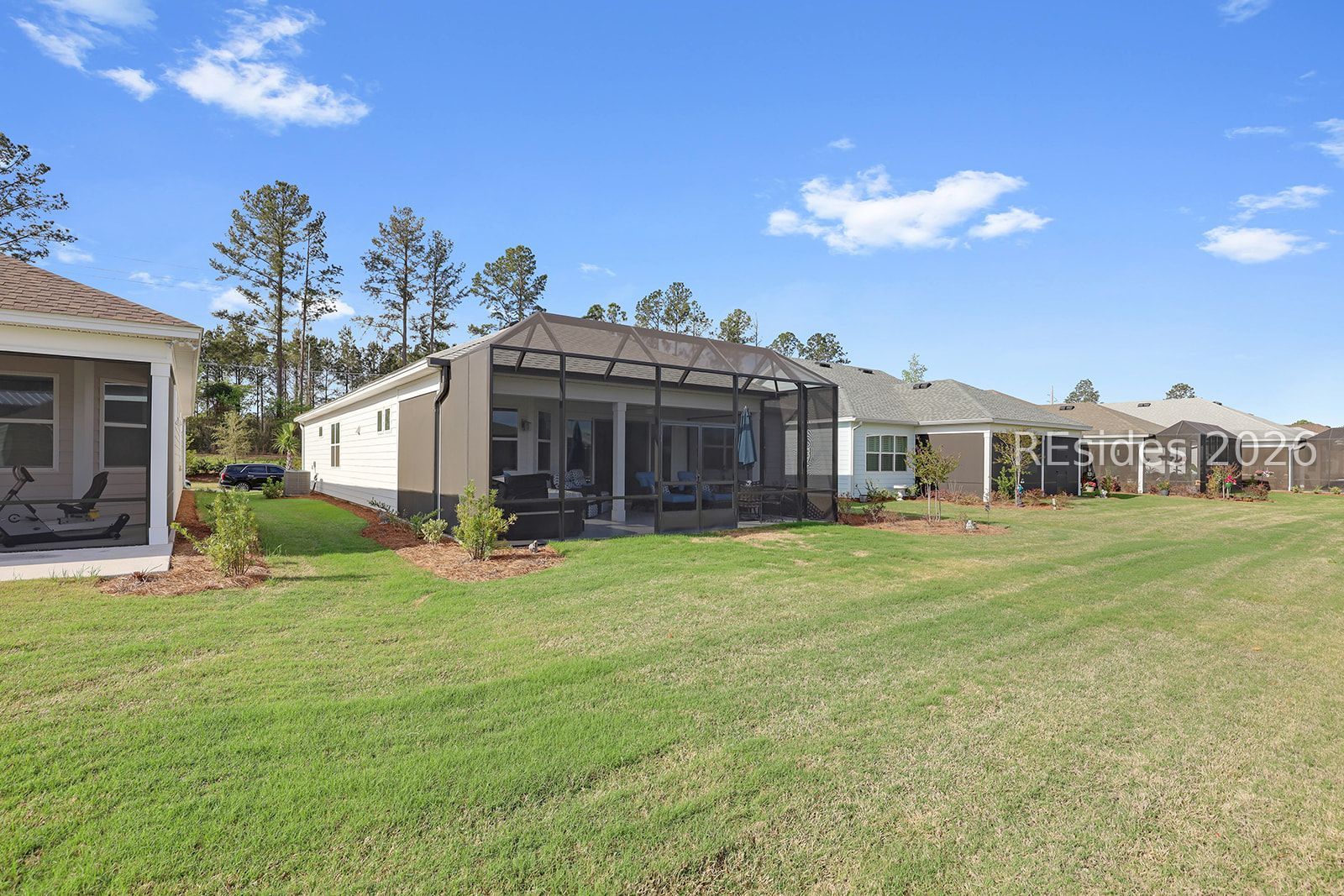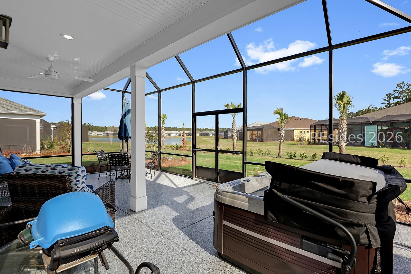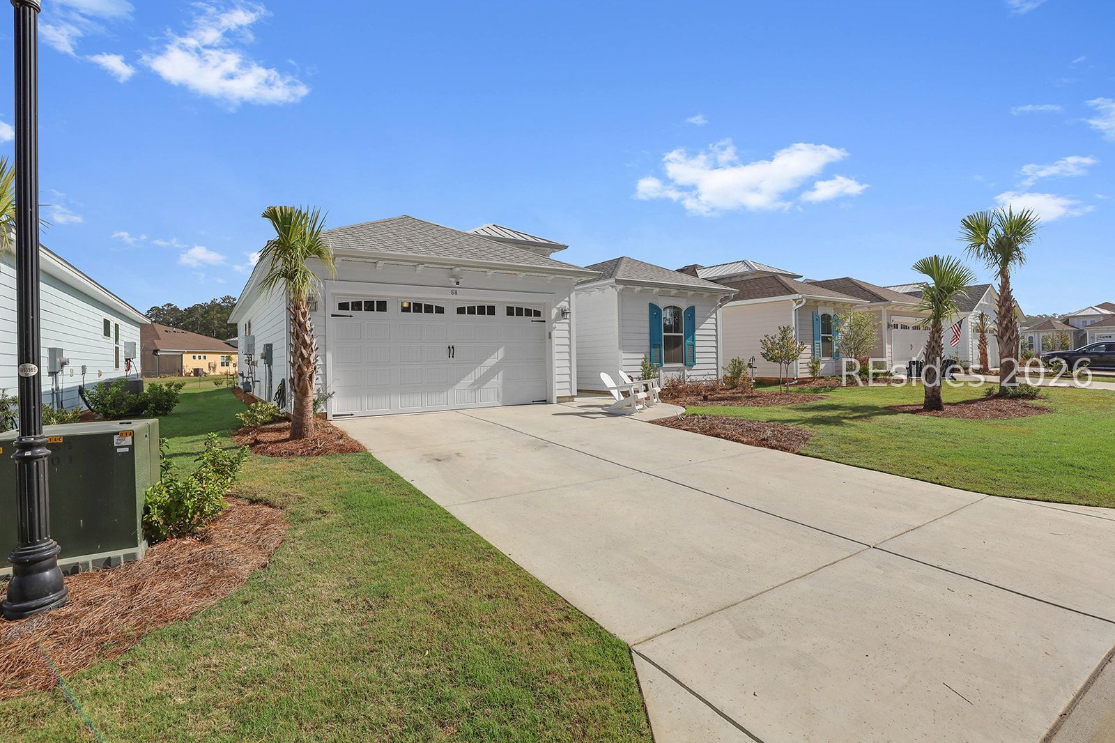 68 Sand Castle offers a rare level of privacy within Latitude Margaritaville Hilton Head. This "Coconut" floor plan is perfectly situated on a premium lot backing up to green space and a serene lagoon. With a privacy berm directly across the street and the brand-new amenity center being built just around the corner, the location provides the perfect balance of seclusion and convenience. Inside, the home features tile flooring throughout, a practical and stylish choice that helps keep the space feeling fresh and cool in the Lowcountry heat. The layout is designed for an easy flow, from the versatile den to the open kitchen and great room. With an oversized, screened-in lanai overlooking the water and a spacious two-car garage, this move-in-ready home stands out for its quiet setting and high-end finishes.
