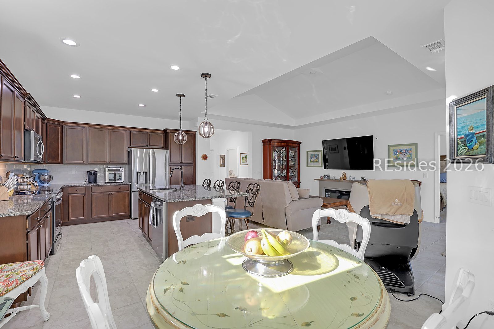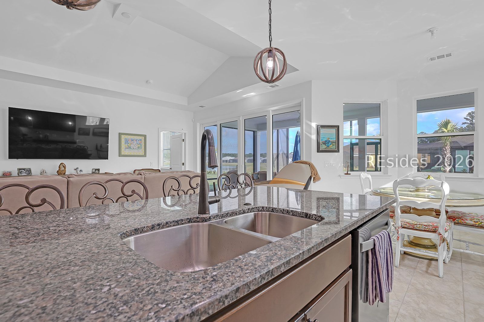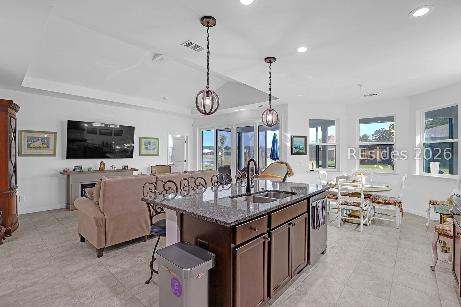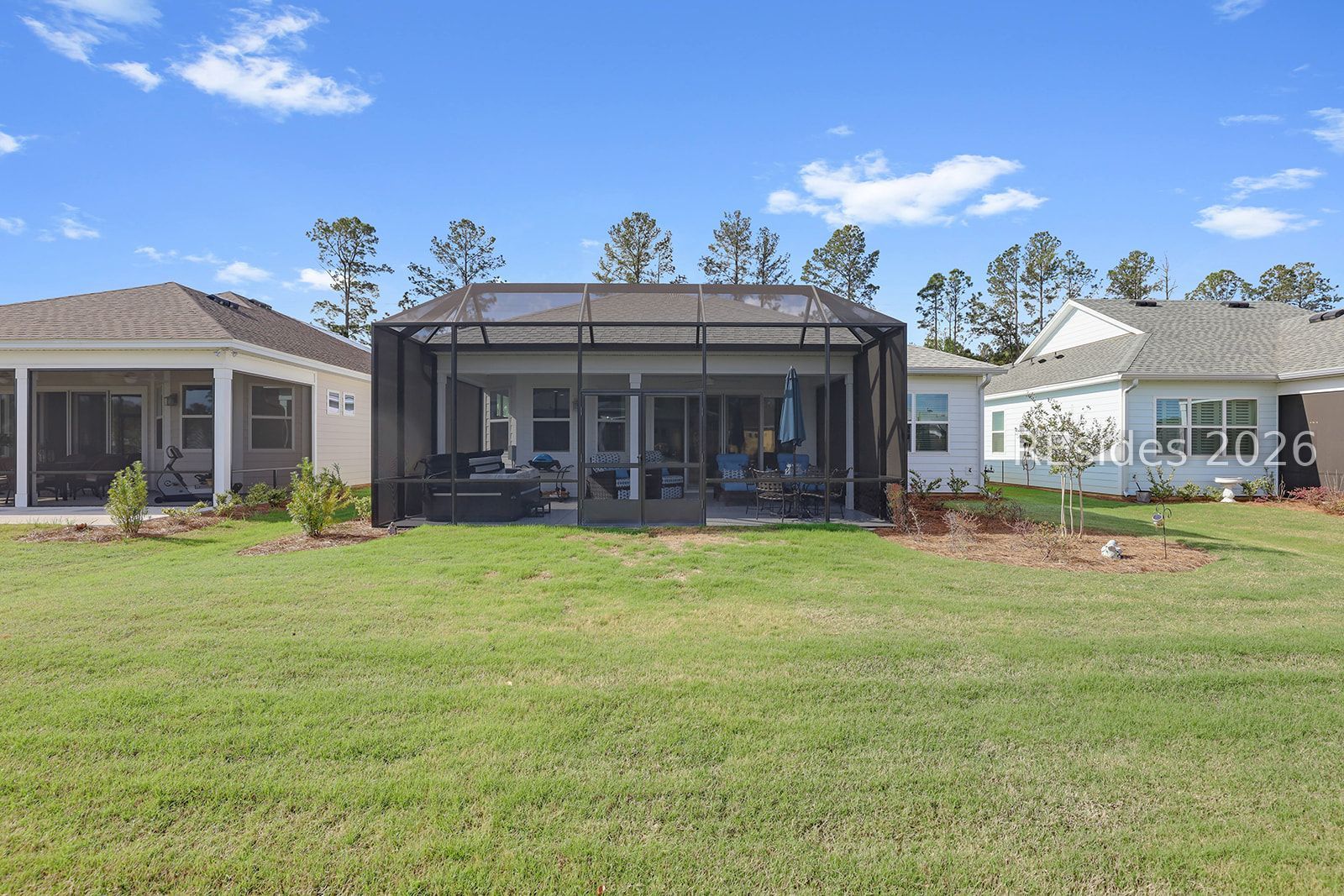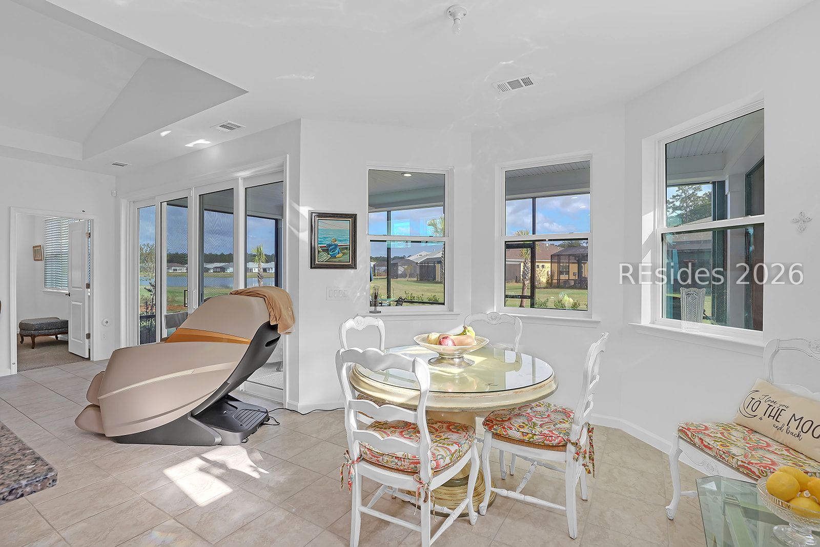 68 Sand Castle offers a rare level of privacy within Latitude Margaritaville Hilton Head. This "Coconut" floor plan is perfectly situated on a premium lot backing up to green space and a serene lagoon. With a privacy berm directly across the street and the brand-new amenity center being built just around the corner, the location provides the perfect balance of seclusion and convenience. Inside, the home features tile flooring throughout, a practical and stylish choice that helps keep the space feeling fresh and cool in the Lowcountry heat. The layout is designed for an easy flow, from the versatile den to the open kitchen and great room. With an oversized, screened-in lanai overlooking the water and a spacious two-car garage, this move-in-ready home stands out for its quiet setting and high-end finishes.