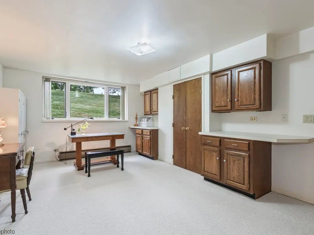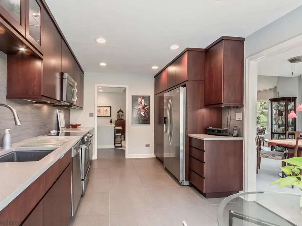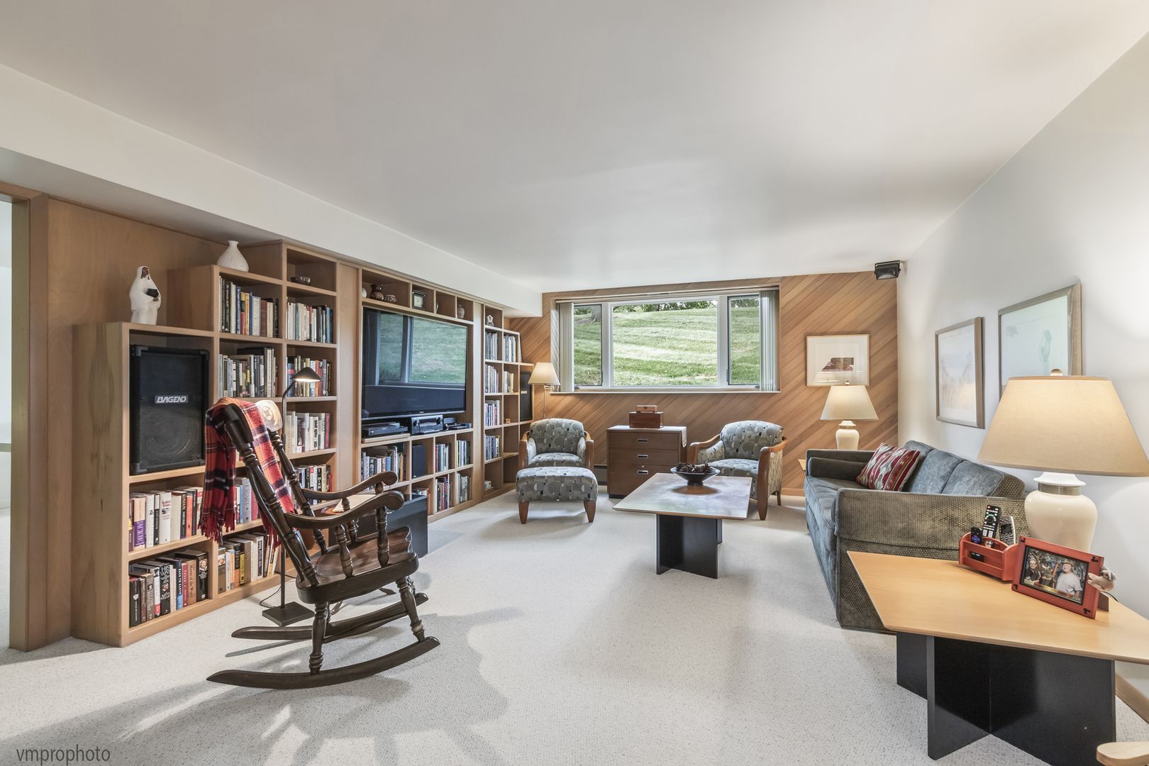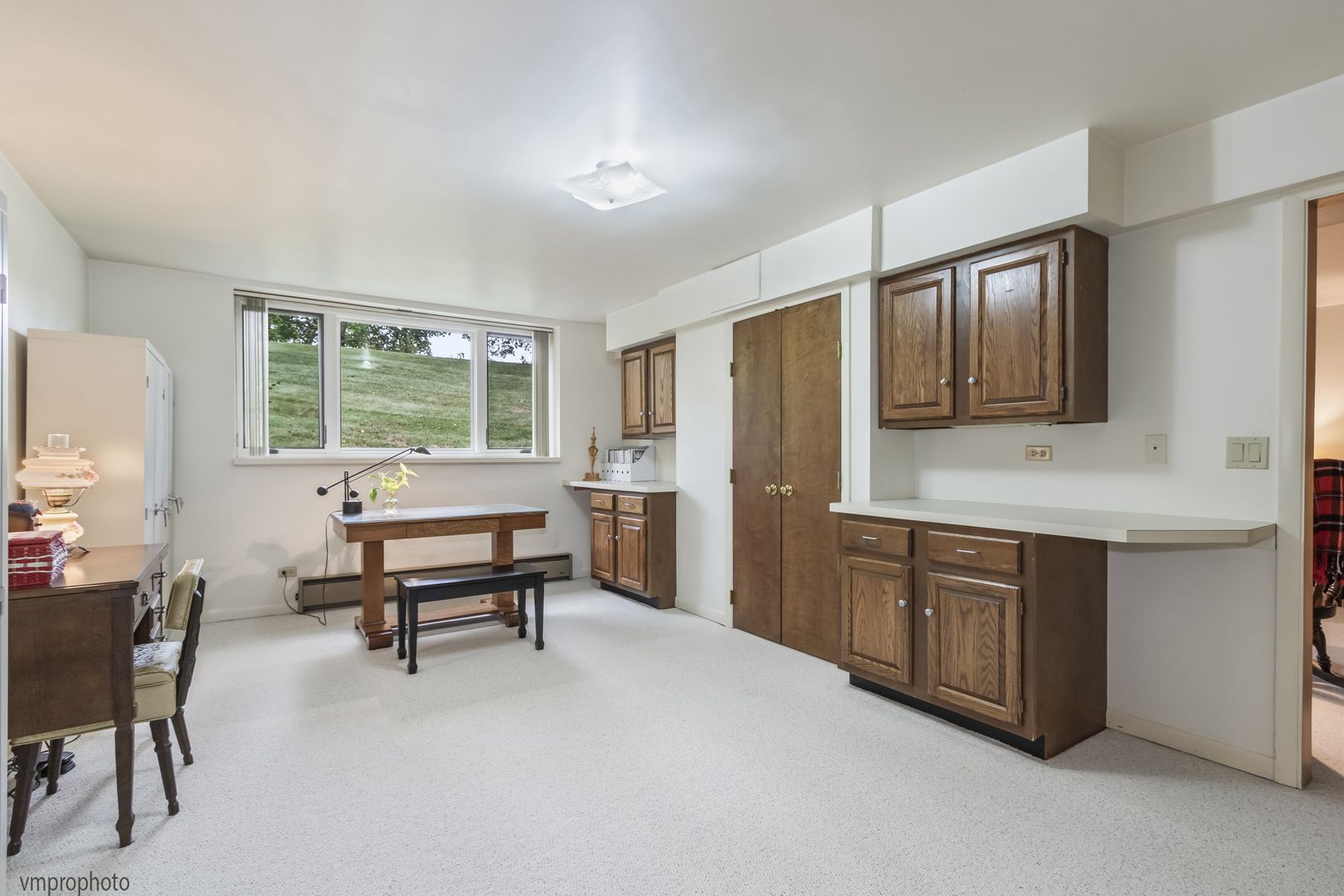 A gorgeous updated Kimball ranch w/ 2 car garage is now available. The owners have meticulously maintained this showcase home. The nature-scaped, flower filled private courtyard greets you to this delightful oasis to enjoy the private cul-de-sac location. The Kitchen has been enlarged & completely remodeled and boasts stunning sleek cabinetry featuring soft close customized drawers, quartz countertops, task lighting & all SS appliances, the sunny breakfast room is a delight & has sliders to a private patio. A jaw-dropping elegant Living Room is apparent from the moment you enter the formal Foyer & has volume ceilings, trac lighting and a focal point fireplace. The large windows welcome nature in & the Dining Room has custom window treatments and an adjustable pendant chandeleir. A quaint & sunny Den has stationary glass doors viewing the courtyard and was originally the 3rd Bedroom when they purchased it. It's a great spot to sit back with a book or quietly enjoy your favorite programs or music with the courtyard and nature as your inspiration. The Primary Suite has a volume ceiling & extensive walk-in closet with organizers and the luxurious bathroom has been beautifully and tastefully updated with an oversized shower and frameless glass door, extensive vanity with with dressing table allows room to spread out. The 2nd bedroom has a large walk in closet and just steps from the updated Hall Bathroom with tub/shower with grab bars, handheld sprayer and spa-like design. The huge English basement will not disappoint with large windows, allowing the private park like setting to filter in. The full entertainment system w/ surround sound will remain with the home! The bar area offers convenience for entertaining and the powder room is off the Family room. There is another large Game Room or use as needed, it also has built in counter and cabinet space and the quietly positioned office allows great space to get work done and has a walk in closet. The lower level also has a spacious workshop/storage room and an additional walk in closet -perfect for seasonal items. This home is truly turn key and has been updated throughout. All new Windows (2007), Fully remodeled Kitchen (2011), Disposal (2024), Primary Bathroom (2017), Hall Bath (2014), HVAC (2005), Humidifier (2025), Washer & Dryer (2014), Hot Water Heater (2023), Water Softener (2020), Exterior Stained (2025) Exterior HOA landscaped being refreshed (10/2025). Bar refrigerator and freezer will remain with home. Please exclude: MBR sconce lights on either side of bed, attached make up mirror in MBTH & full length mirror in MBR closet.